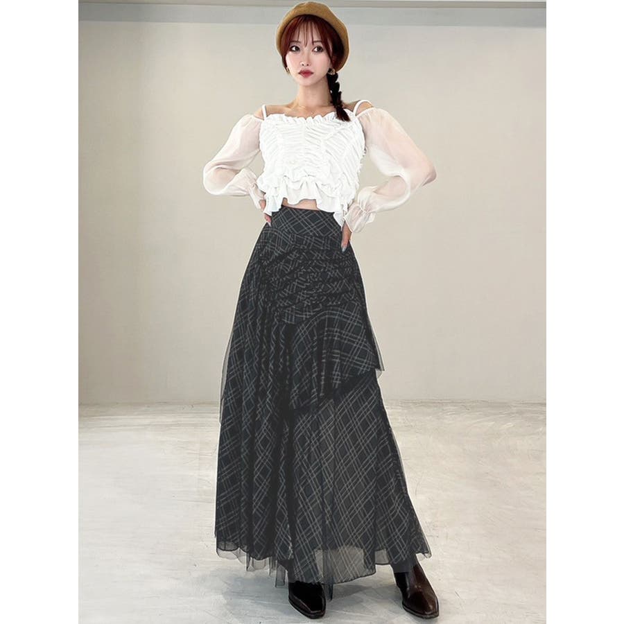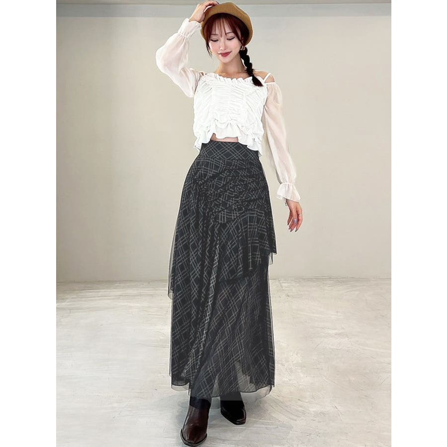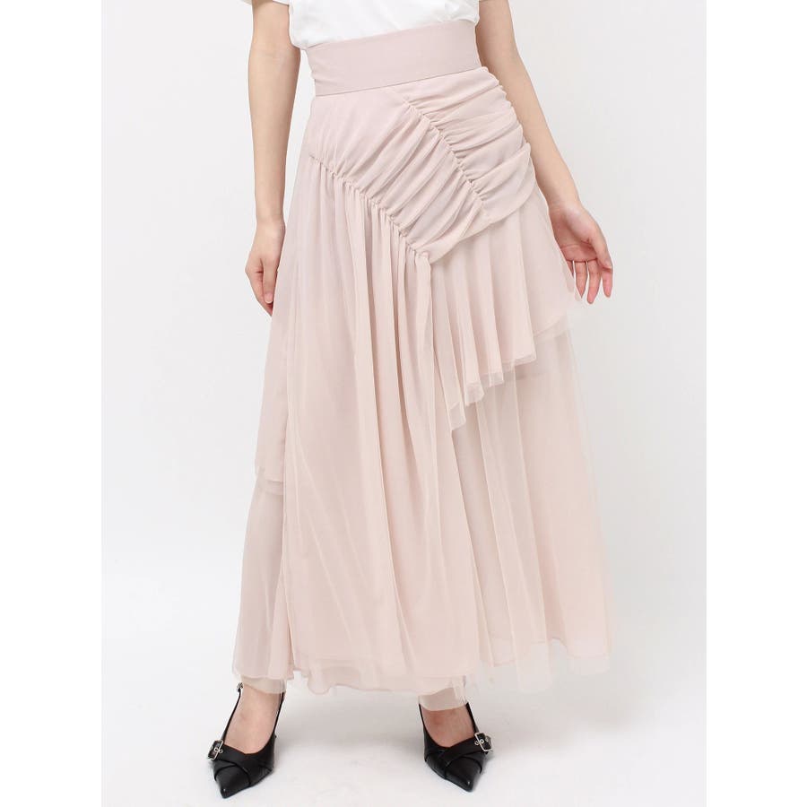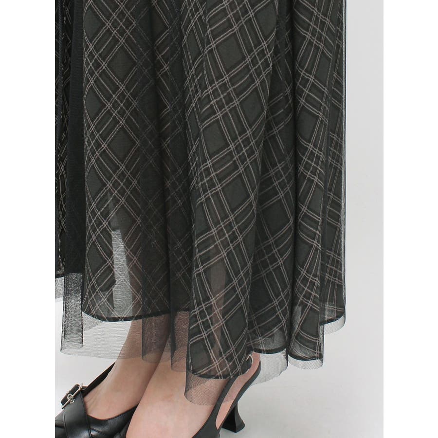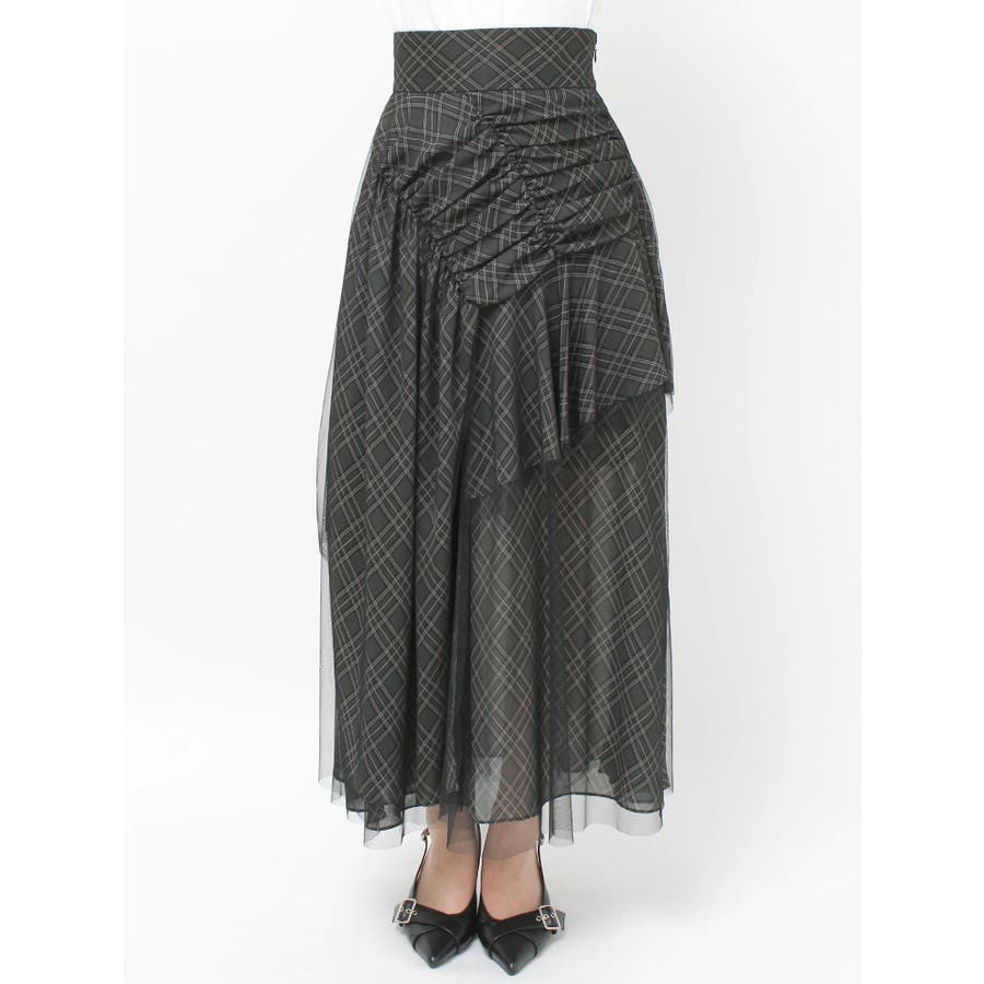 チュールをふんだんに使ったフレアスカート▽デザイン▽シフォン素材のチェック生地の上にチュールを重ねたレイヤードスカート。軽めの素材で仕上げたので晩夏にピッタリのアイテム。フロントにはギャザーをたっぷり寄せデザイン性のあるスカートに仕上げました。アシンメトリーなデザインでヒップ部分は生地が重なっているのでボディラインを拾わず後ろ姿もすっきり見え◎ハイウエストでバックウエストはシャーリングになっているのでタイトに見せてくれウエストから裾にかけてのフィットフレアシルエットが美しい1枚です。▽カラー▽ピンク・グリーン・ブラウンの3色展開。ピンクは無地で春先にも使いやすい明るいカラーに。グリーンとブラウンは深めの配色のチェック柄を使用しシーズンムードが高まります。▽スタイリング▽シーズンレスに活躍するフレアスカートです。Tシャツからニットまで、どんなトップスとも相性抜群◎※着用画像はフラッシュの加減で実際の製品と色味等が異なる場合がございますので、生地のズームアップ画像をご確認ください。※ご利用の端末画面の設定により実際の商品と色味が異なる場合がございます。【商品特徴】透け感:なし伸縮性:なし生地の厚さ:薄手サイズ感:普通裏地:ありポケット:なし