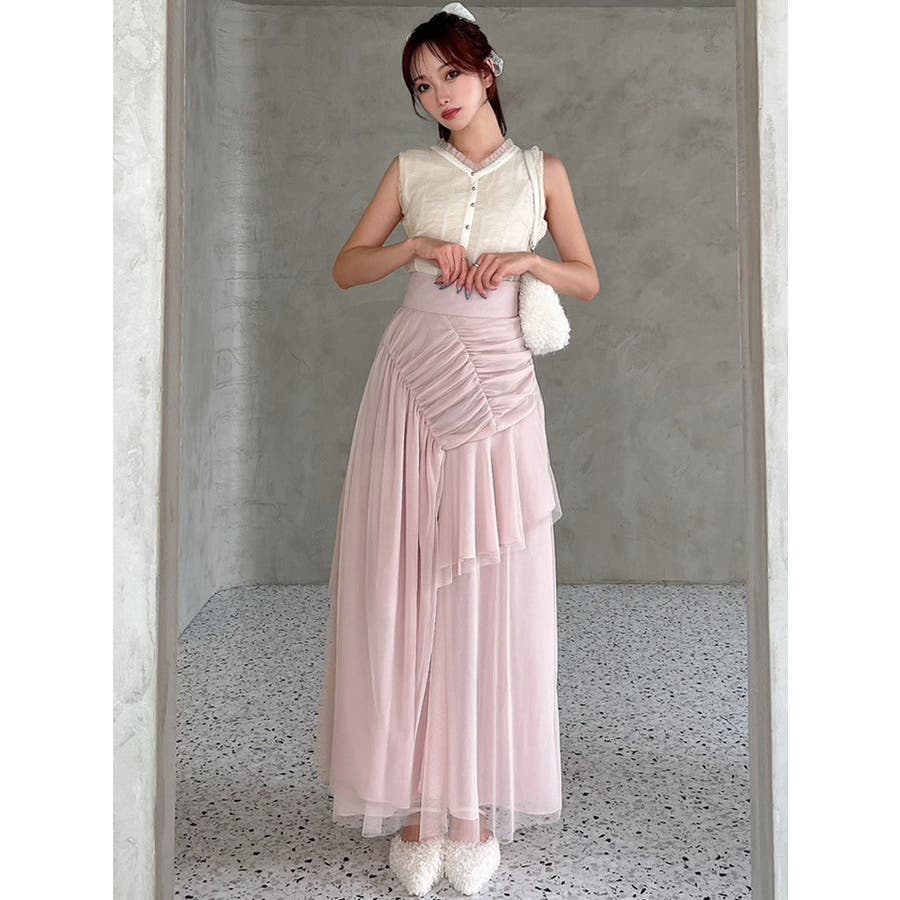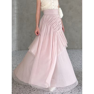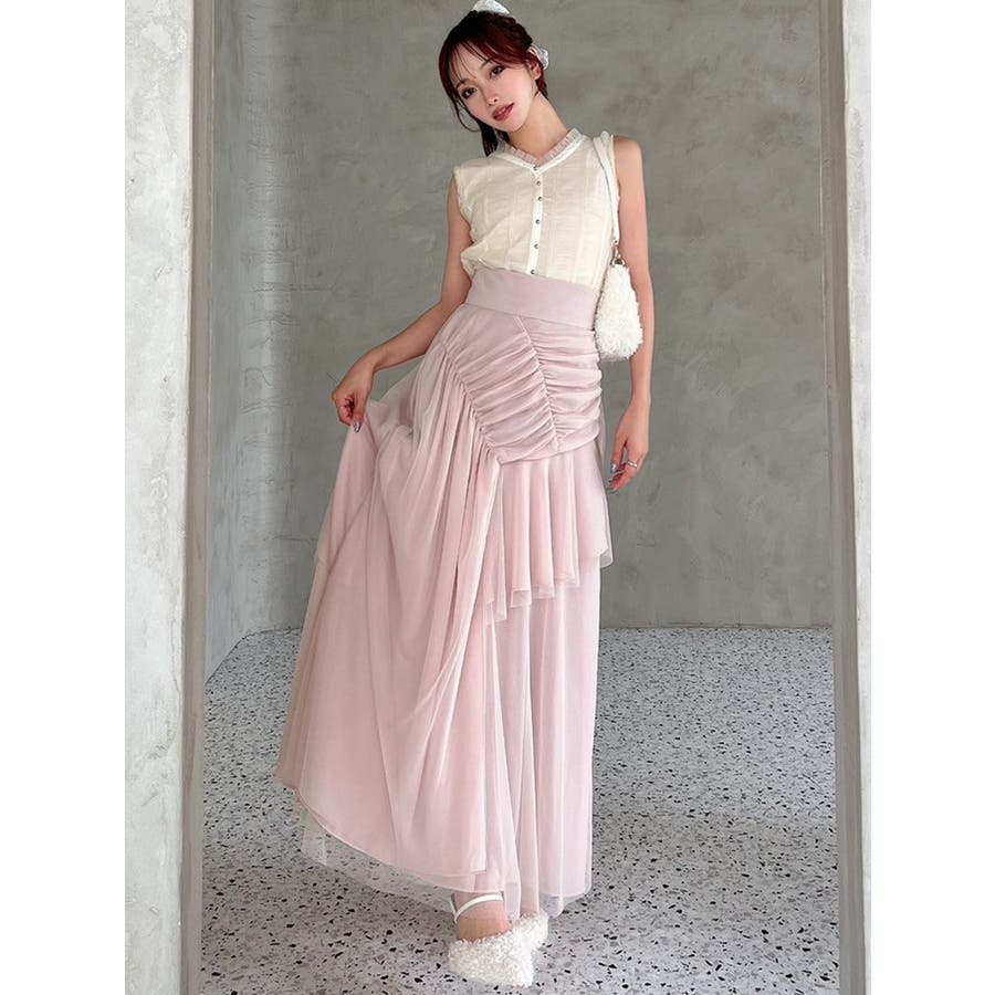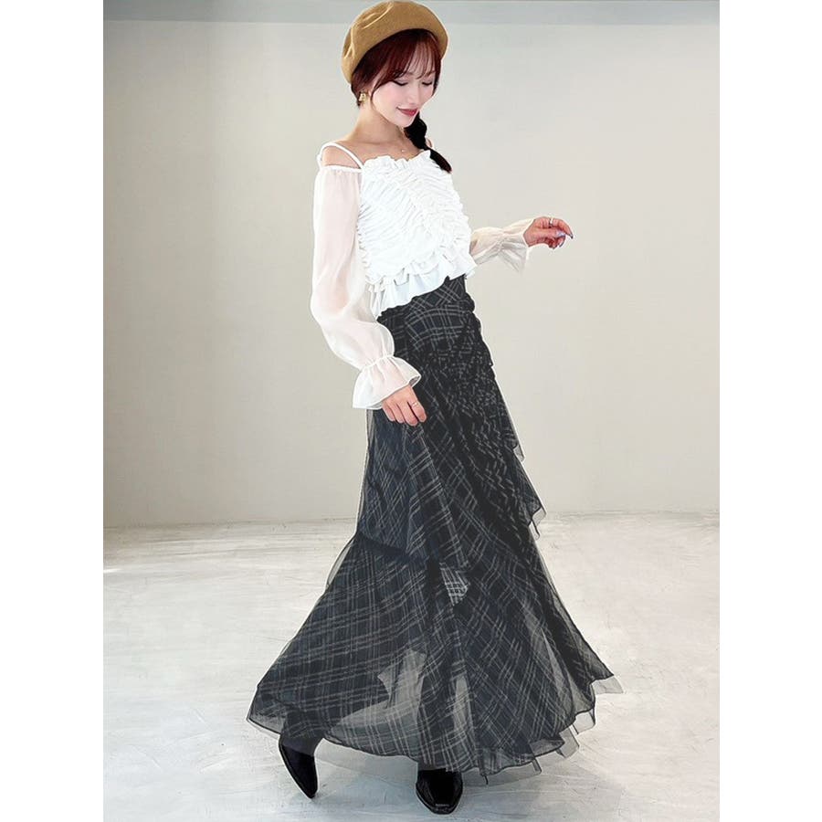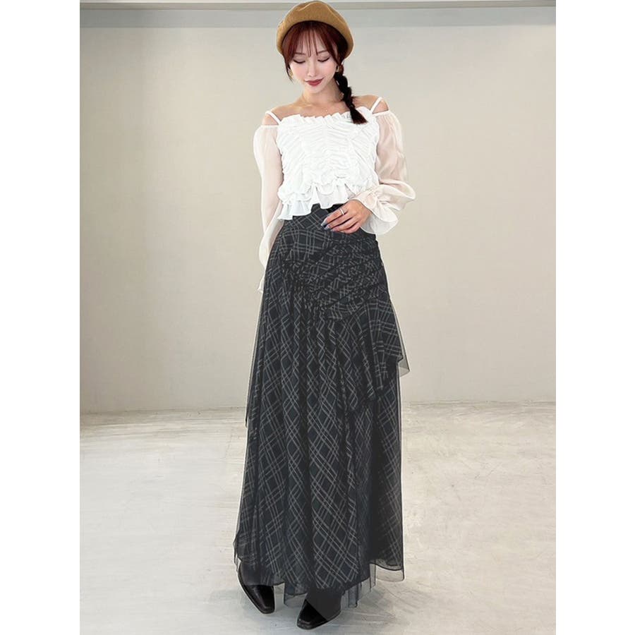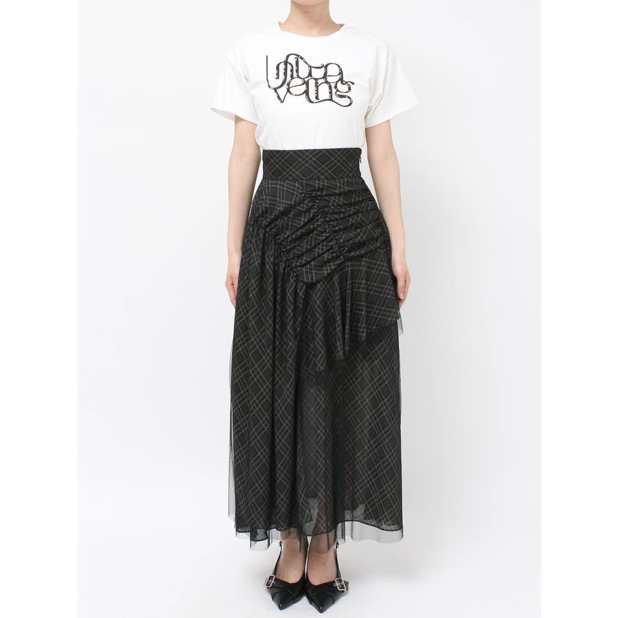 チュールをふんだんに使ったフレアスカート▽デザイン▽シフォン素材のチェック生地の上にチュールを重ねたレイヤードスカート。軽めの素材で仕上げたので晩夏にピッタリのアイテム。フロントにはギャザーをたっぷり寄せデザイン性のあるスカートに仕上げました。アシンメトリーなデザインでヒップ部分は生地が重なっているのでボディラインを拾わず後ろ姿もすっきり見え◎ハイウエストでバックウエストはシャーリングになっているのでタイトに見せてくれウエストから裾にかけてのフィットフレアシルエットが美しい1枚です。▽カラー▽ピンク・グリーン・ブラウンの3色展開。ピンクは無地で春先にも使いやすい明るいカラーに。グリーンとブラウンは深めの配色のチェック柄を使用しシーズンムードが高まります。▽スタイリング▽シーズンレスに活躍するフレアスカートです。Tシャツからニットまで、どんなトップスとも相性抜群◎※着用画像はフラッシュの加減で実際の製品と色味等が異なる場合がございますので、生地のズームアップ画像をご確認ください。※ご利用の端末画面の設定により実際の商品と色味が異なる場合がございます。【商品特徴】透け感:なし伸縮性:なし生地の厚さ:薄手サイズ感:普通裏地:ありポケット:なし