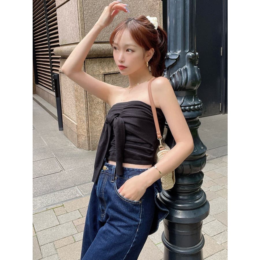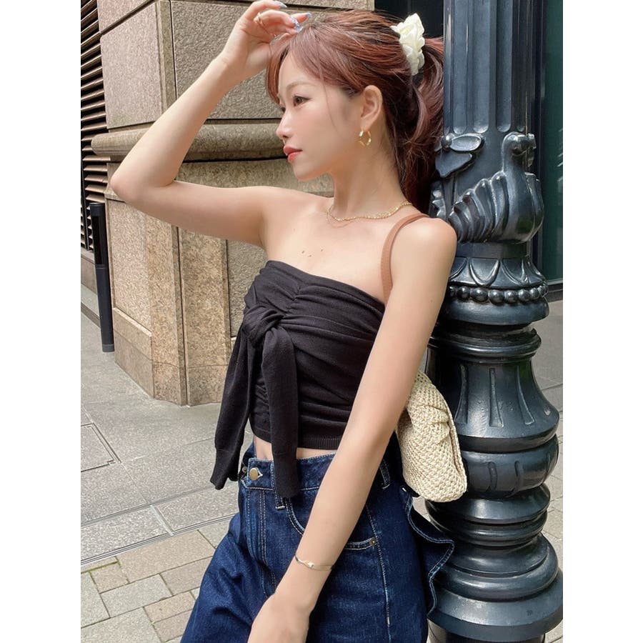 夏におすすめ!ヘルシーな肌見せが叶うベアトップス▽デザイン▽肩紐は取り外し可能な2WAY仕様◎デコルテや肩周りを華奢に見せる夏におすすめのニットです。バストにはギャザーを寄せ立体的なデザインに。バックをリブ仕様にしたことでずり落ちを気にせずに着用していただけます。袖をフロントで巻いているデザインでリボン風に見えるのもポイント!▽カラー▽白・黒・ピンクの3色展開。▽スタイリング▽コンパクトなサイズ感なので1枚でスタイルアップ!ハイウエストボトムと相性抜群です◎※着用画像はフラッシュの加減で実際の製品と色味等が異なる場合がございますので、生地のズームアップ画像をご確認ください。※ご利用の端末画面の設定により実際の商品と色味が異なる場合がございます。【商品特徴】透け感:なし伸縮性:あり生地の厚さ:普通サイズ感:細身裏地:なしポケット:なし