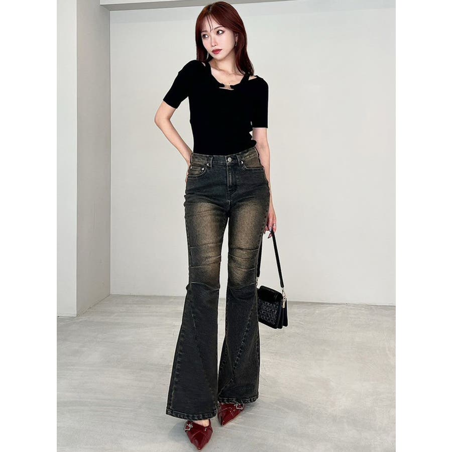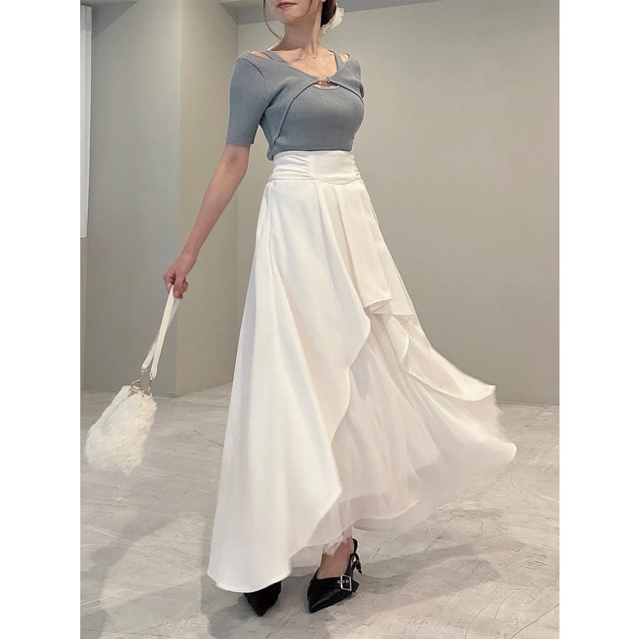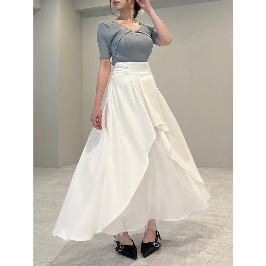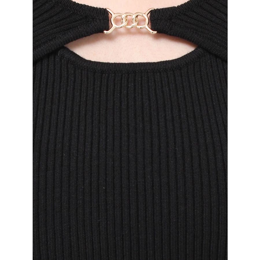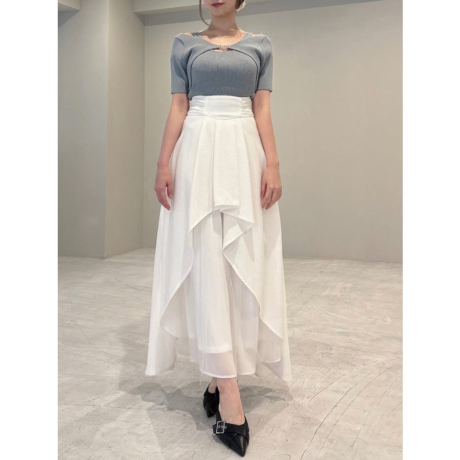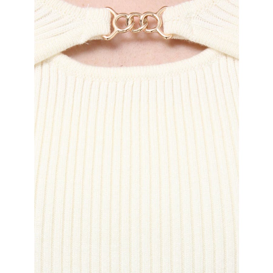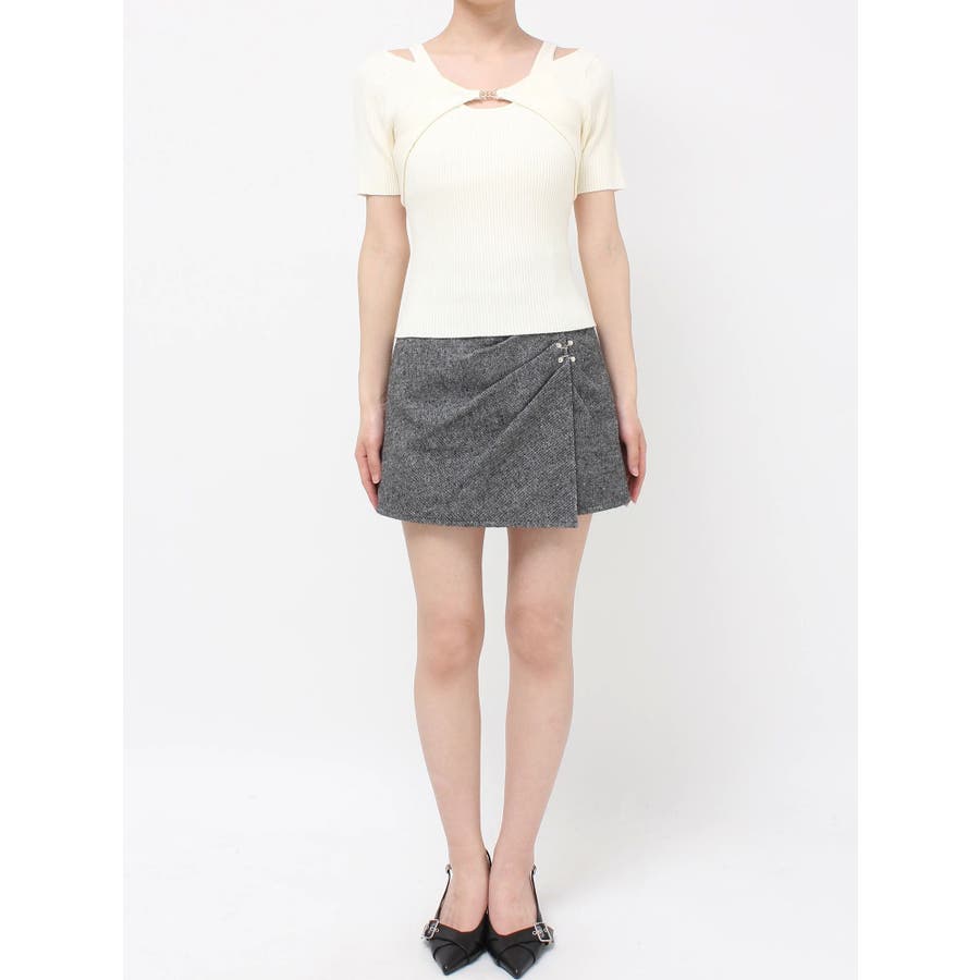 デコルテを美しく魅せるニットトップス▽デザイン▽さらっとした風合いでストレッチ性にすぐれ、体にフィットします。タイトな袖が二の腕周りもすっきり見せ。GOLDのチャームを施し、さりげないアクセントに。スタンダードな半袖ニットにフロントの肌見せデザインが目を惹く1枚です。▽カラー▽白・黒・青の3色展開。▽スタイリング▽ベーシックなトップスなのでデニムからスカートまで、カジュアルコーデにもキレイ目コーデにも使える万能アイテム。※着用画像はフラッシュの加減で実際の製品と色味等が異なる場合がございますので、生地のズームアップ画像をご確認ください。※ご利用の端末画面の設定により実際の商品と色味が異なる場合がございます。【商品特徴】透け感:なし伸縮性:ややあり 生地の厚さ:普通 サイズ感:普通裏地:なしポケット:なし