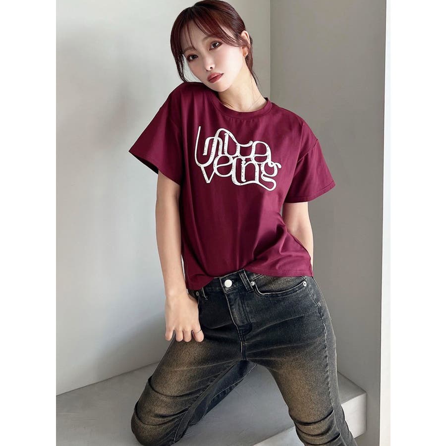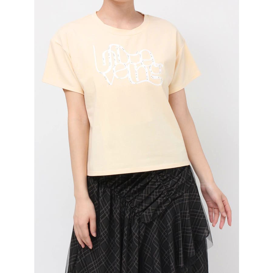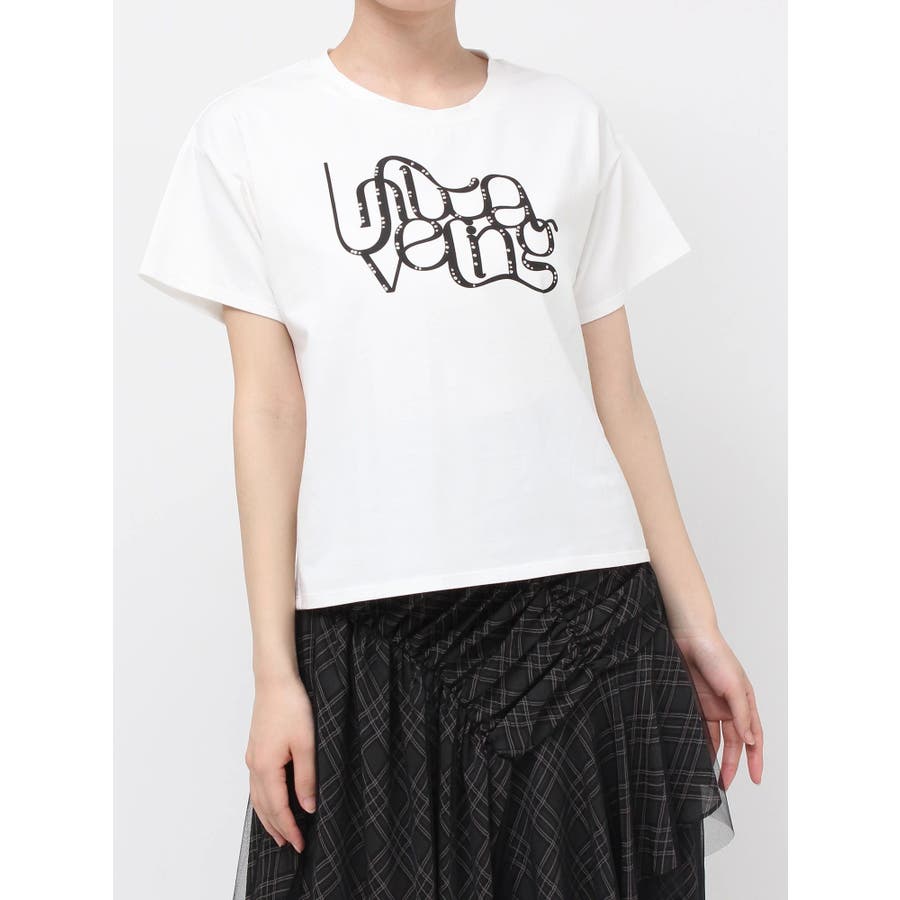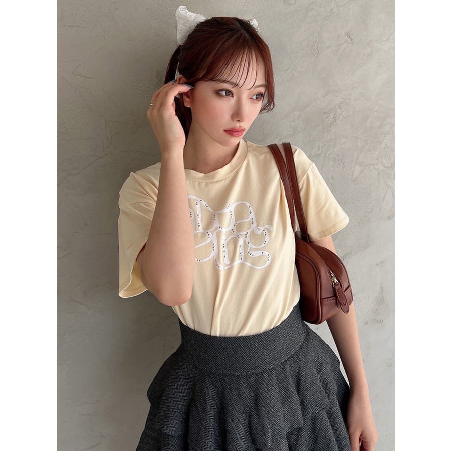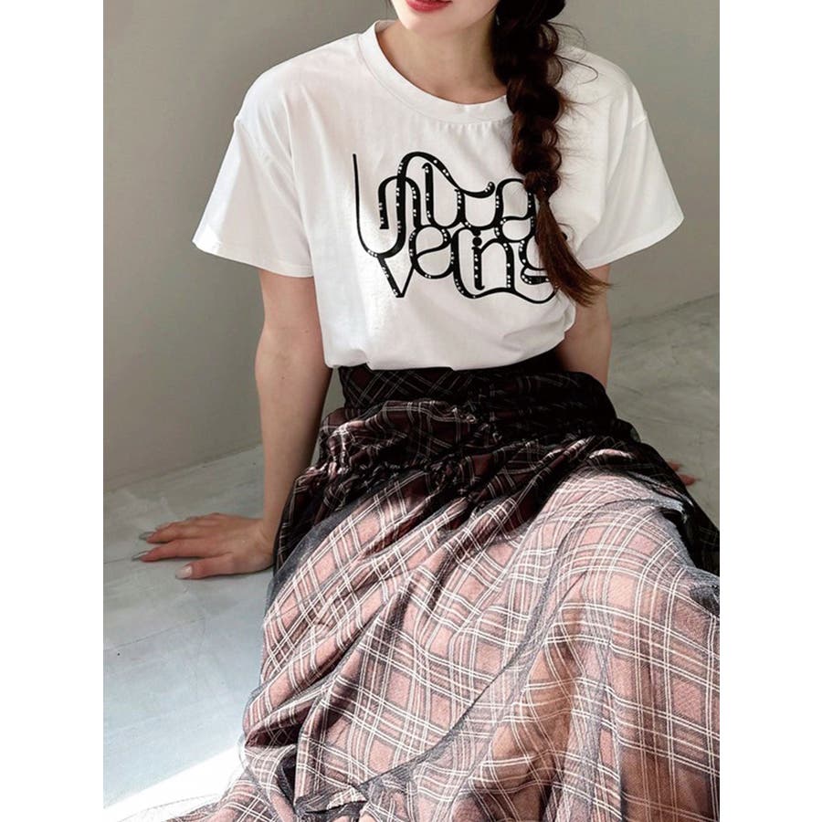 オリジナルロゴとスタッズデザインがポイントのTシャツ▽デザイン▽フロントには大きめのデザインロゴをプリント。ロゴの上には華奢なスタッズをポイントで付けていき、甘辛な印象でカジュアルにもキレイ目にも合わせやすいTシャツに仕上げました。シルエットは少しルーズなので着心地も良くゆるっと感がこなれた印象に。アウトスタイルもインスタイルも両方出来る万能トップスです♪▽カラー▽白・黒・赤・黄色の4色展開。▽スタイリング▽スカートからデニムまでどんなボトムにも万能にマッチ◎インしてゆるっとしたシルエットで着用するのがおすすめ!フロントにロゴがあるので秋にはジャケットのインナーとして着用してもコーデのアクセントになります!※着用画像はフラッシュの加減で実際の製品と色味等が異なる場合がございますので、生地のズームアップ画像をご確認ください。※ご利用の端末画面の設定により実際の商品と色味が異なる場合がございます。【商品特徴】透け感(ホワイトのみ):あり透け感(その他カラー):なし伸縮性:あり生地の厚さ:薄手サイズ感:普通裏地:なしポケット:なし