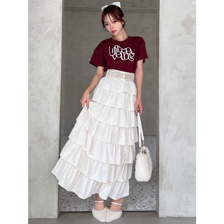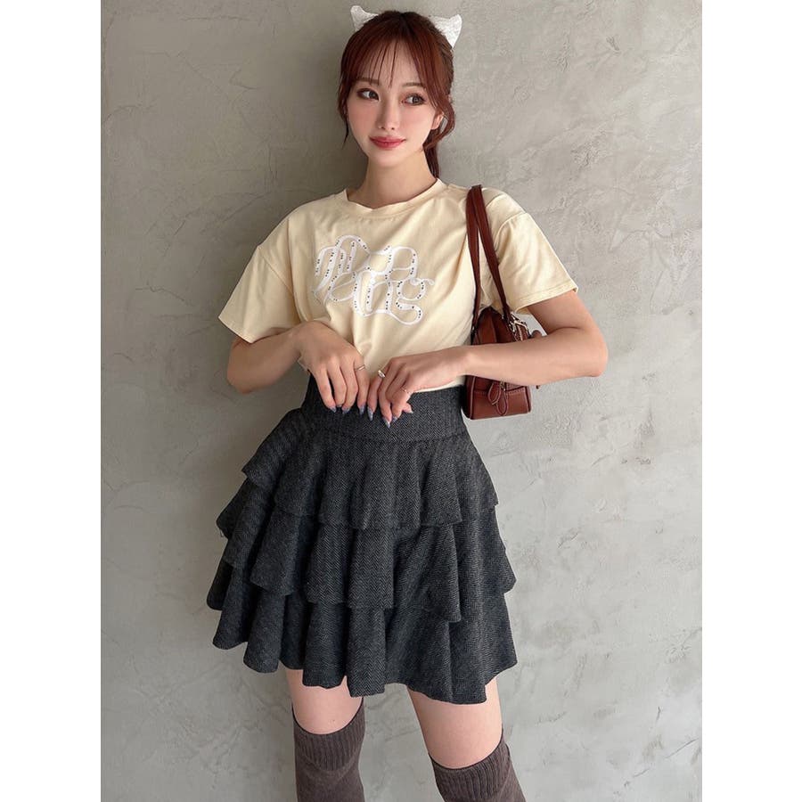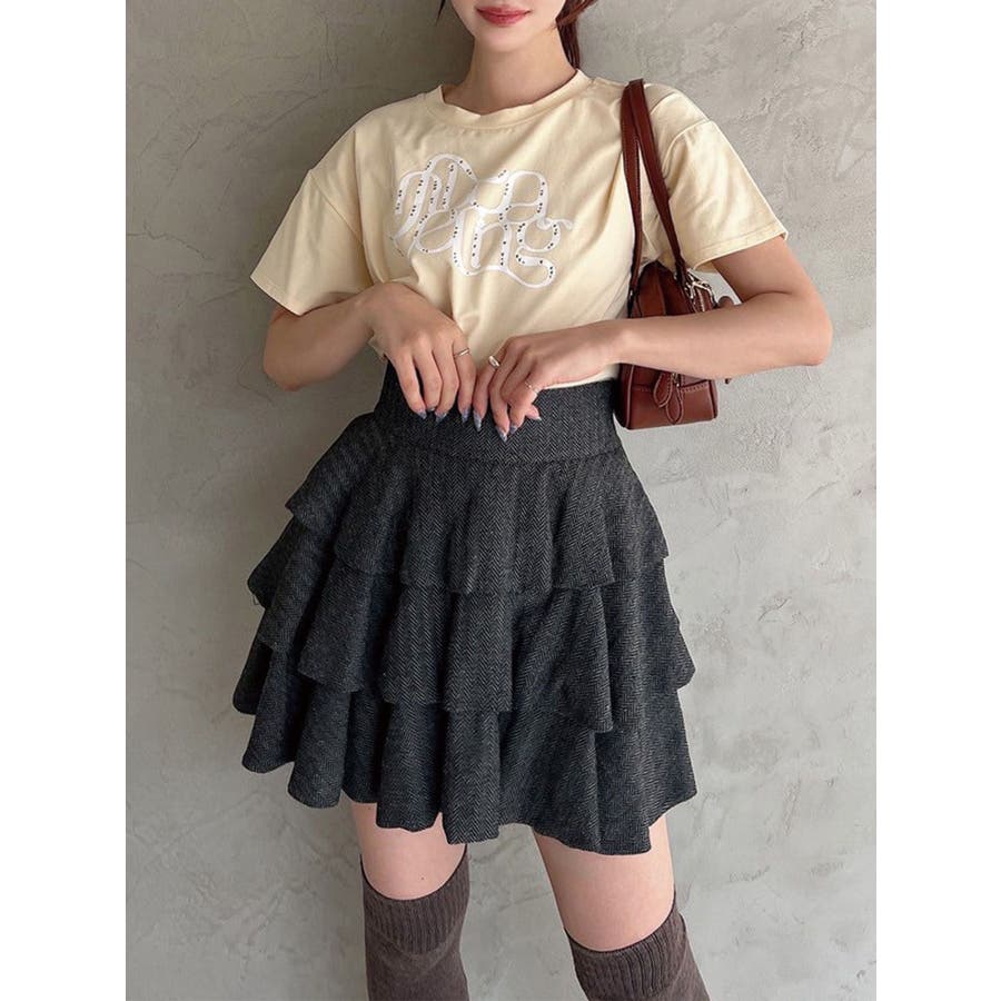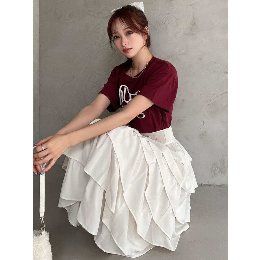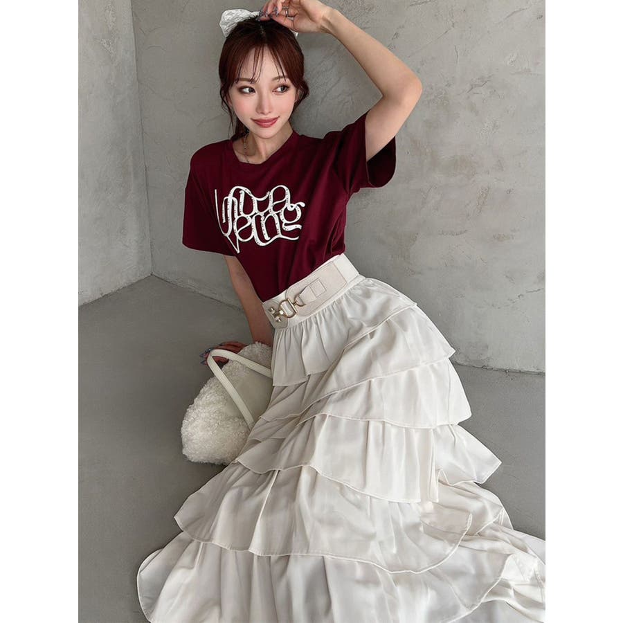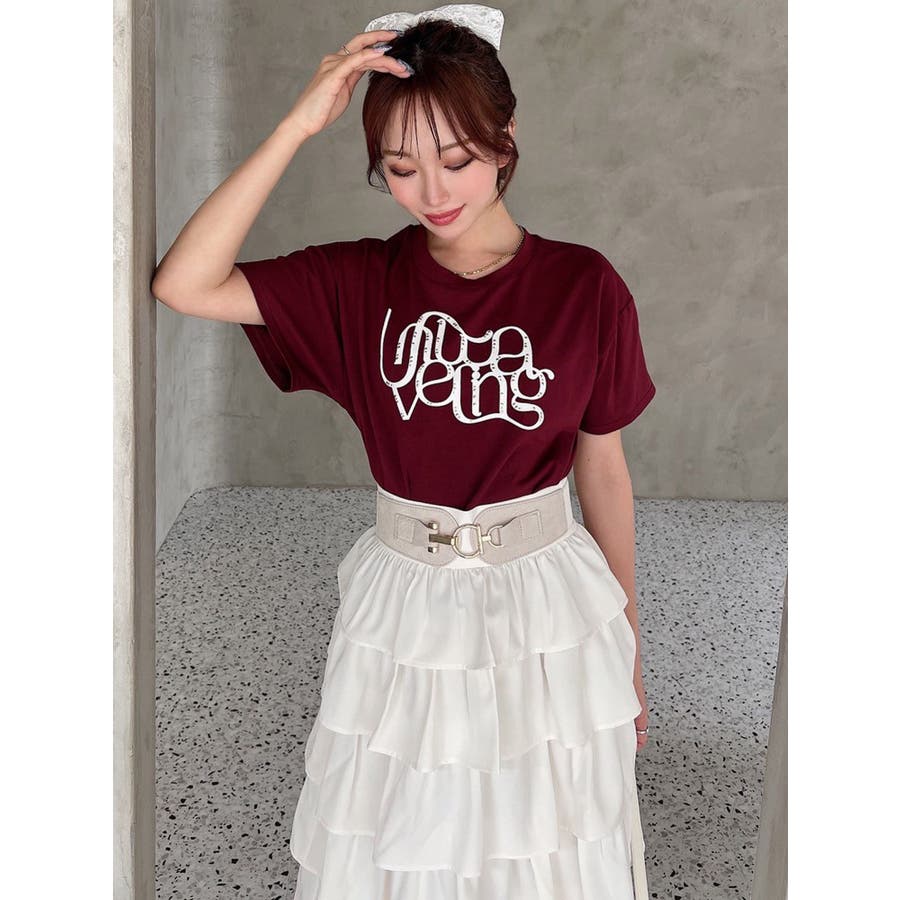 オリジナルロゴとスタッズデザインがポイントのTシャツ▽デザイン▽フロントには大きめのデザインロゴをプリント。ロゴの上には華奢なスタッズをポイントで付けていき、甘辛な印象でカジュアルにもキレイ目にも合わせやすいTシャツに仕上げました。シルエットは少しルーズなので着心地も良くゆるっと感がこなれた印象に。アウトスタイルもインスタイルも両方出来る万能トップスです♪▽カラー▽白・黒・赤・黄色の4色展開。▽スタイリング▽スカートからデニムまでどんなボトムにも万能にマッチ◎インしてゆるっとしたシルエットで着用するのがおすすめ!フロントにロゴがあるので秋にはジャケットのインナーとして着用してもコーデのアクセントになります!※着用画像はフラッシュの加減で実際の製品と色味等が異なる場合がございますので、生地のズームアップ画像をご確認ください。※ご利用の端末画面の設定により実際の商品と色味が異なる場合がございます。【商品特徴】透け感(ホワイトのみ):あり透け感(その他カラー):なし伸縮性:あり生地の厚さ:薄手サイズ感:普通裏地:なしポケット:なし