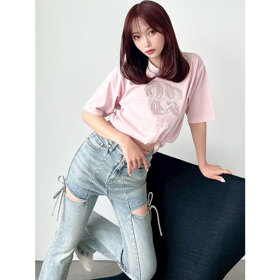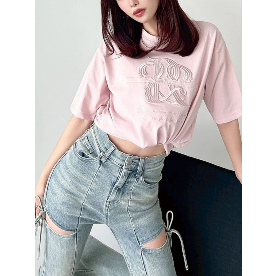 クラフト感のある立体的な刺繍が目を惹くオーバーシルエットのTシャツ▽デザイン▽着回しの幅が広がるオーバーサイズTシャツが登場。ぷっくり立体的なオリジナル刺繍がワンポイントに!同色刺繍なので使いやすさ抜群◎ヒップまで隠れる丈感で、ボディラインを拾わずにトレンド感のあるスタイリングに。1枚持っていると重宝します。▽カラー▽白・黒・チャコールグレー・ピンクの4色展開。▽スタイリング▽サラッと着用できて着回しの幅が広がる万能Tシャツ。インスタイリングでゆるっとしたシルエットでの着用も、アウトスタイリングでワンピース風の着用もおすすめ!
