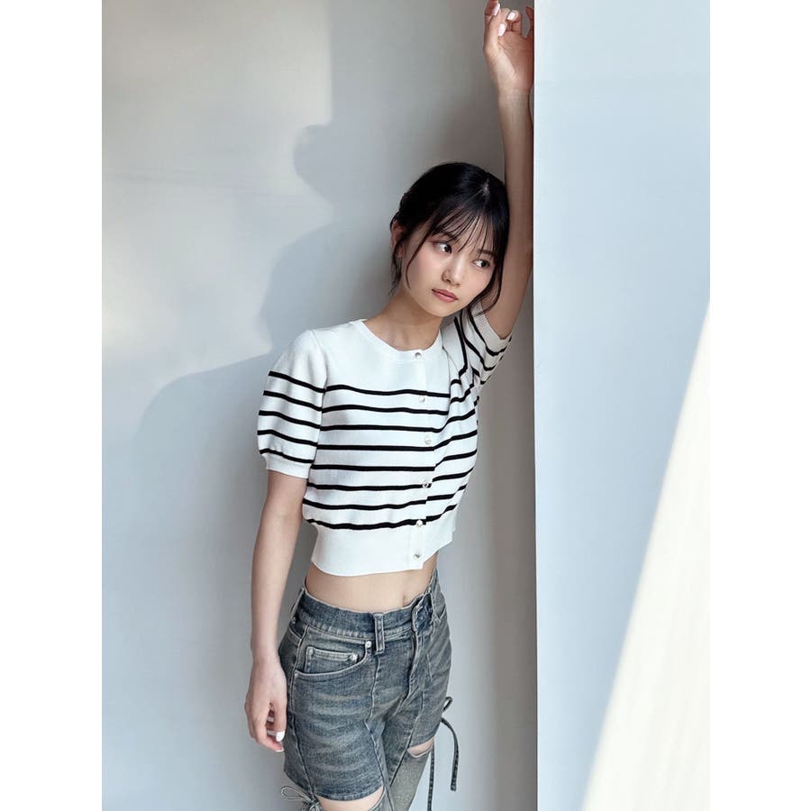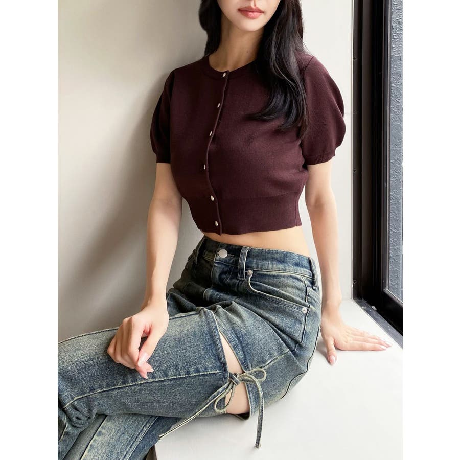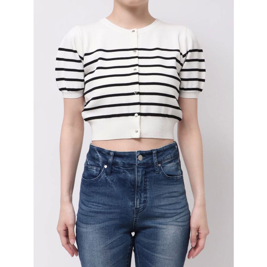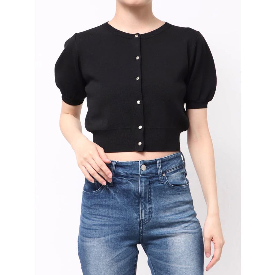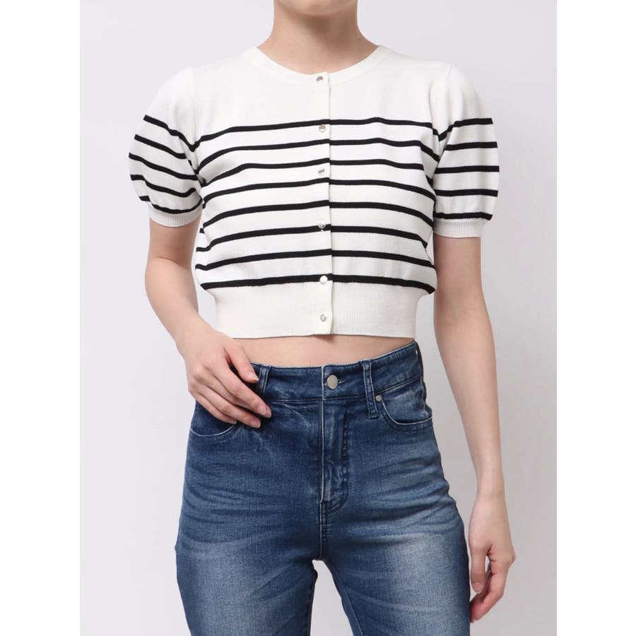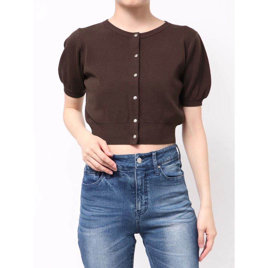 デニムにもピッタリ◎ショート丈のカーディガン▽デザイン▽パフスリーブが可愛らしいポイント。フロントのボタンは小さめのゴールドボタンを付け上品さを出しました。裾はリブ切り替えにしたことでウエストラインはすっきりと、コンパクトなサイジングで肌見せコーデでトレンド感もUP!サラッと羽織ってカーディガンとしても、トップスとしても使える2WAY仕様♪▽カラー▽無地の黒・ピンク・ブラウンと夏らしいボーダー柄の4色展開。▽スタイリング▽ショート丈なのでハイウエストのボトムスと好相性!トップスとしても羽織りとしても活躍するので様々なシーンで活躍します。※着用画像はフラッシュの加減で実際の製品と色味等が異なる場合がございますので、生地のズームアップ画像をご確認ください。※ご利用の端末画面の設定により実際の商品と色味が異なる場合がございます。【商品特徴】透け感:なし伸縮性:あり生地の厚さ:普通サイズ感:普通裏地:なしポケット:なし