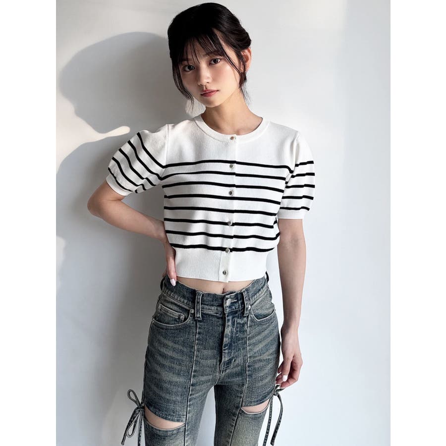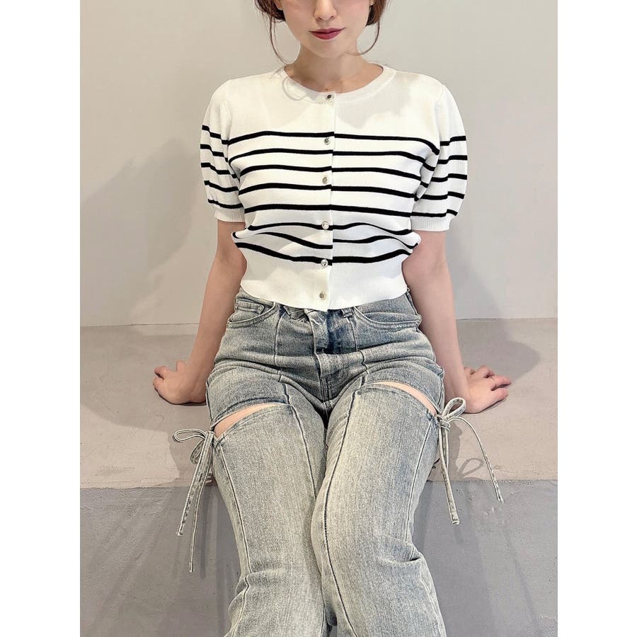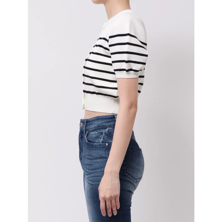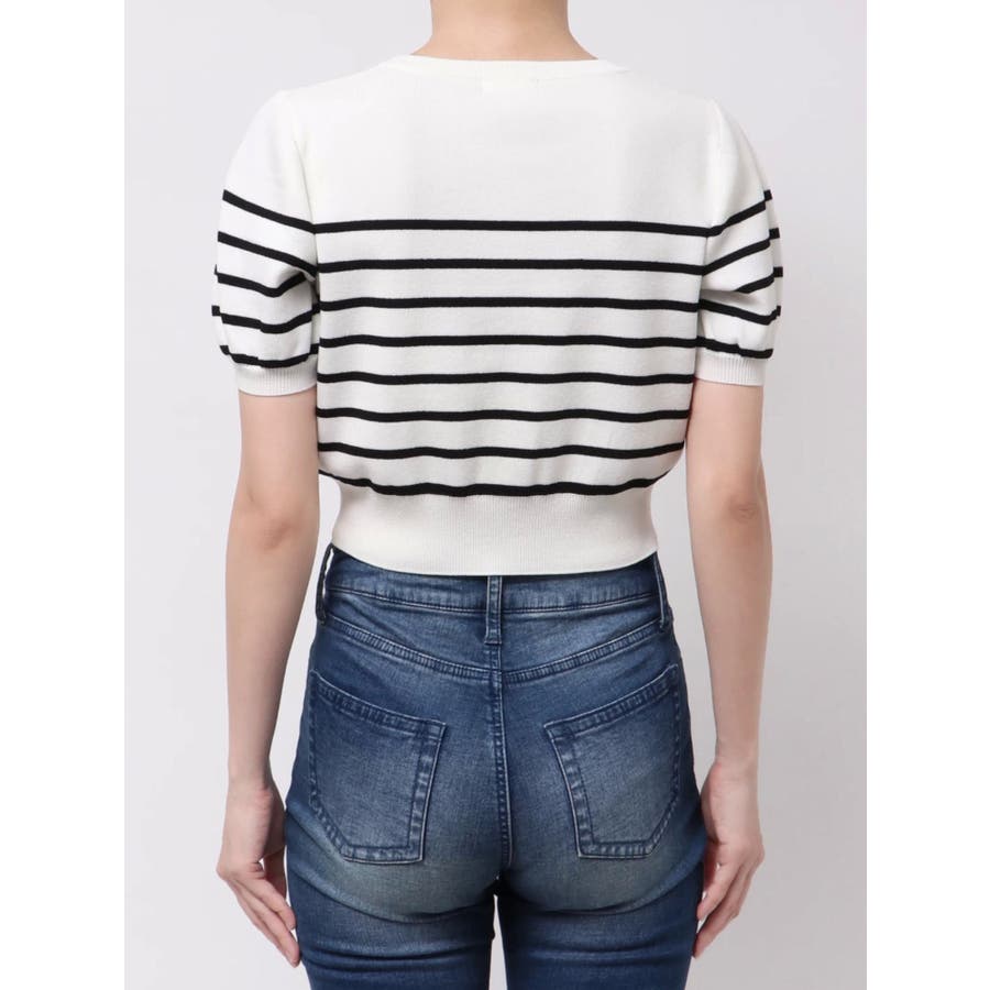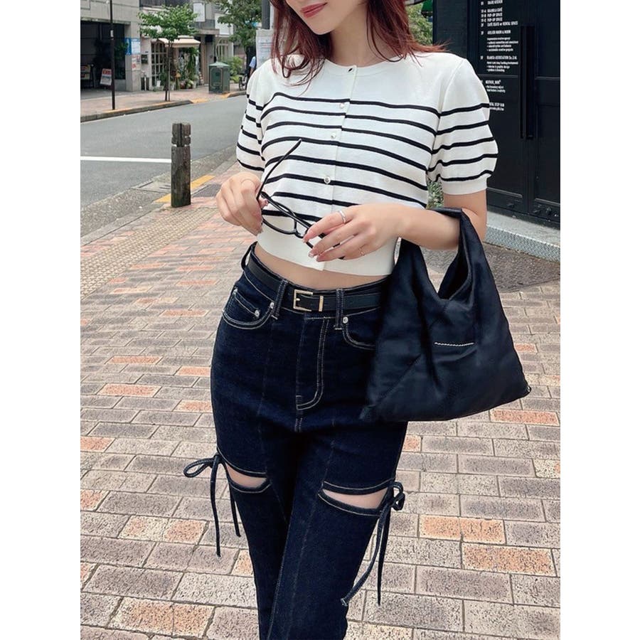 デニムにもピッタリ◎ショート丈のカーディガン▽デザイン▽パフスリーブが可愛らしいポイント。フロントのボタンは小さめのゴールドボタンを付け上品さを出しました。裾はリブ切り替えにしたことでウエストラインはすっきりと、コンパクトなサイジングで肌見せコーデでトレンド感もUP!サラッと羽織ってカーディガンとしても、トップスとしても使える2WAY仕様♪▽カラー▽無地の黒・ピンク・ブラウンと夏らしいボーダー柄の4色展開。▽スタイリング▽ショート丈なのでハイウエストのボトムスと好相性!トップスとしても羽織りとしても活躍するので様々なシーンで活躍します。※着用画像はフラッシュの加減で実際の製品と色味等が異なる場合がございますので、生地のズームアップ画像をご確認ください。※ご利用の端末画面の設定により実際の商品と色味が異なる場合がございます。【商品特徴】透け感:なし伸縮性:あり生地の厚さ:普通サイズ感:普通裏地:なしポケット:なし