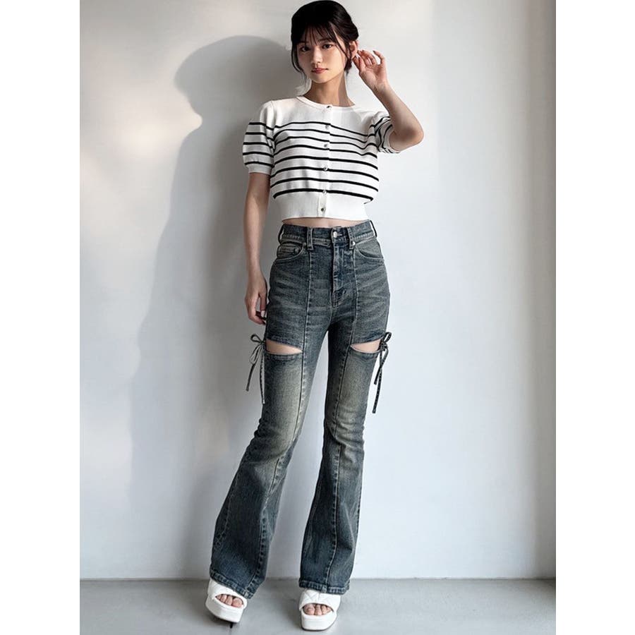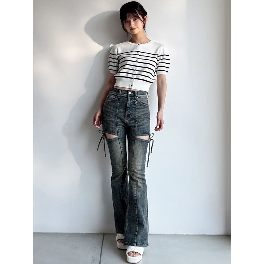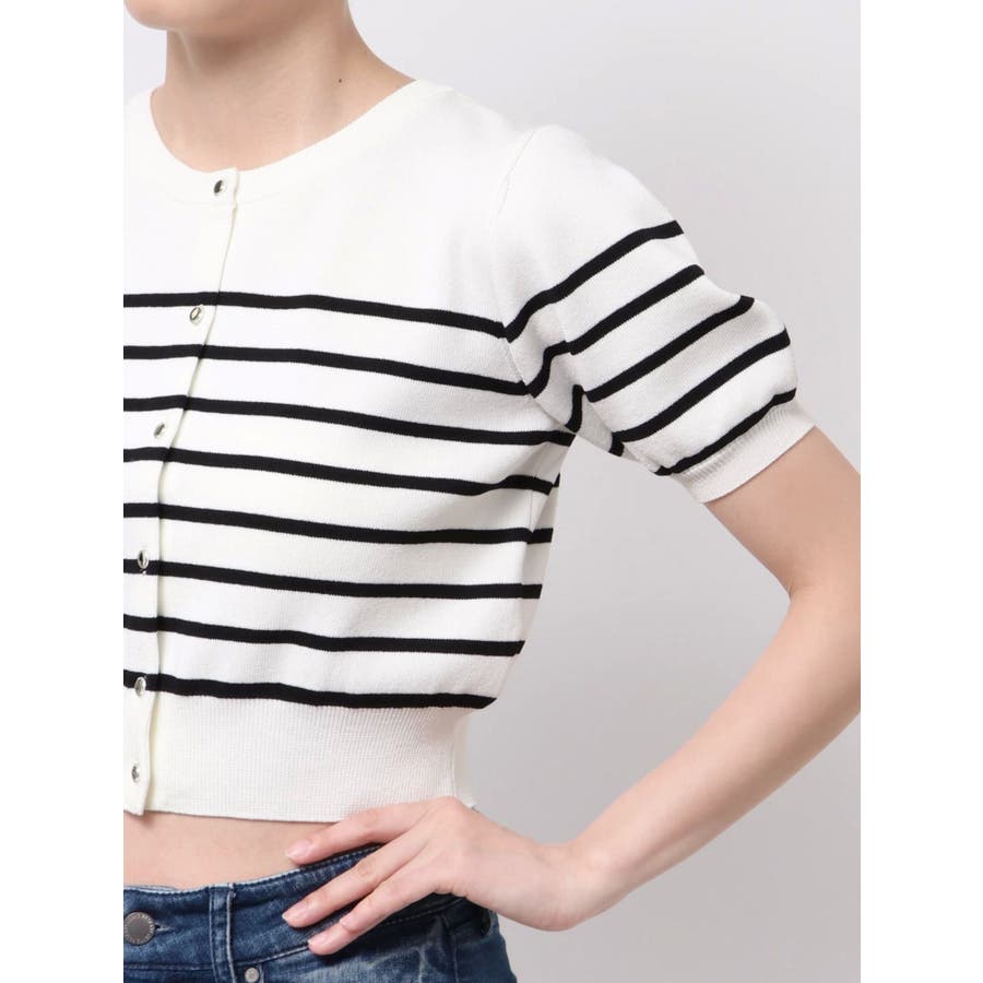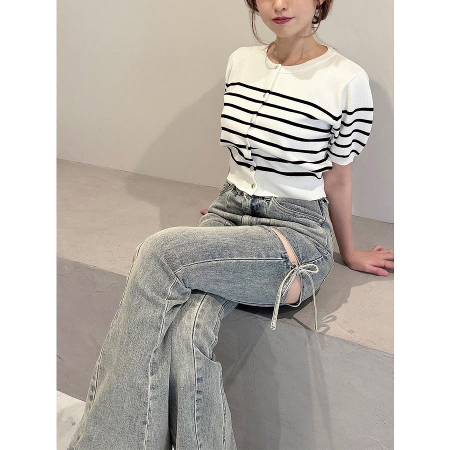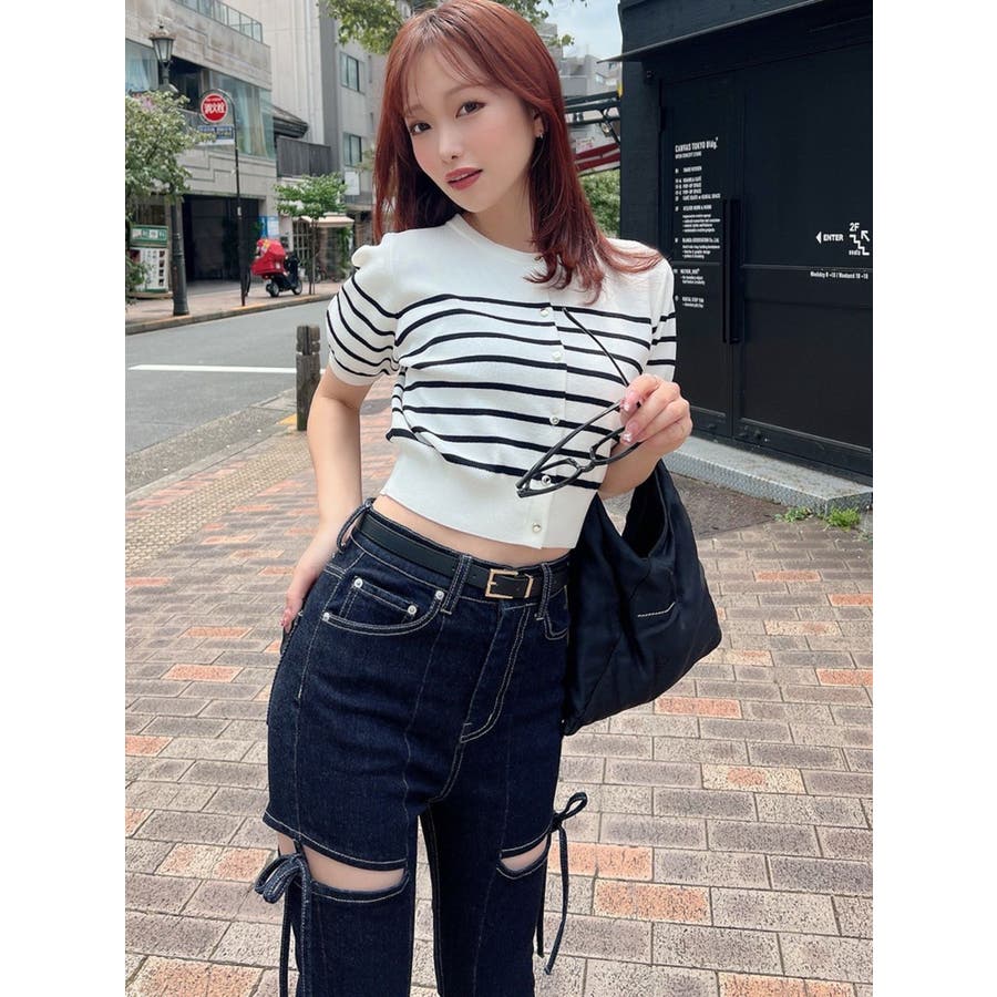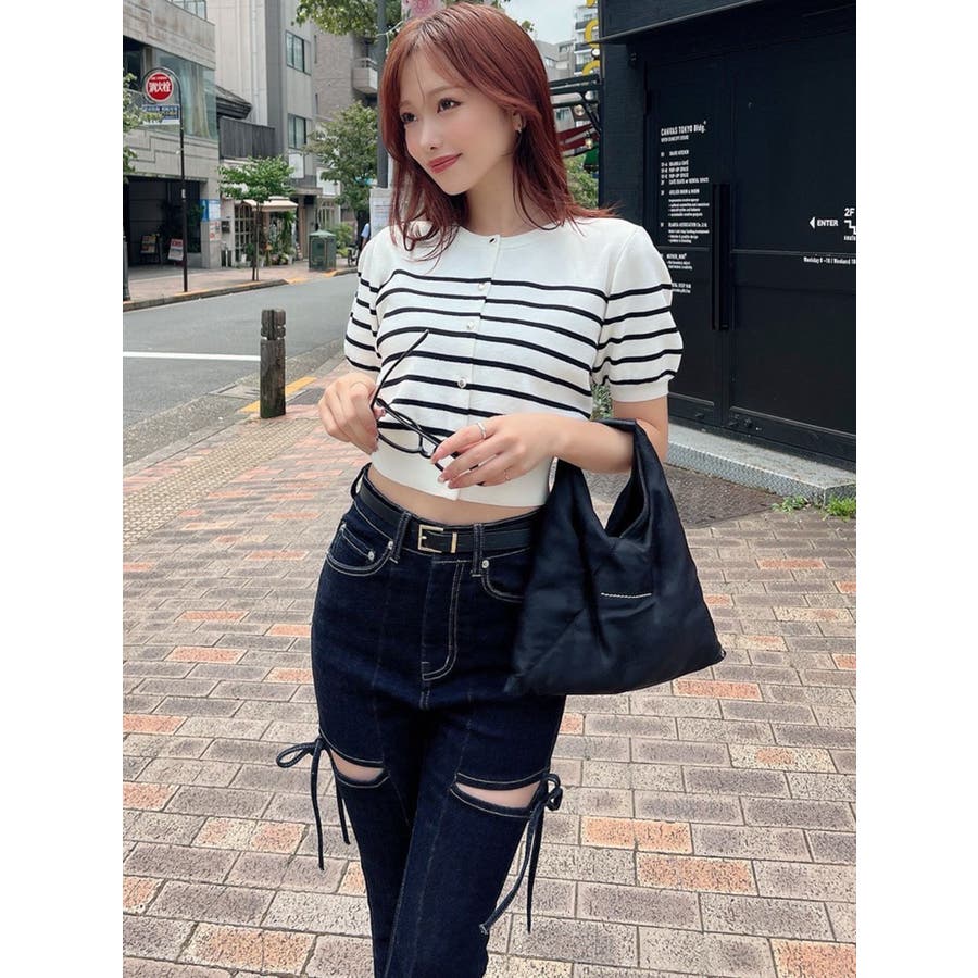 デニムにもピッタリ◎ショート丈のカーディガン▽デザイン▽パフスリーブが可愛らしいポイント。フロントのボタンは小さめのゴールドボタンを付け上品さを出しました。裾はリブ切り替えにしたことでウエストラインはすっきりと、コンパクトなサイジングで肌見せコーデでトレンド感もUP!サラッと羽織ってカーディガンとしても、トップスとしても使える2WAY仕様♪▽カラー▽無地の黒・ピンク・ブラウンと夏らしいボーダー柄の4色展開。▽スタイリング▽ショート丈なのでハイウエストのボトムスと好相性!トップスとしても羽織りとしても活躍するので様々なシーンで活躍します。※着用画像はフラッシュの加減で実際の製品と色味等が異なる場合がございますので、生地のズームアップ画像をご確認ください。※ご利用の端末画面の設定により実際の商品と色味が異なる場合がございます。【商品特徴】透け感:なし伸縮性:あり生地の厚さ:普通サイズ感:普通裏地:なしポケット:なし