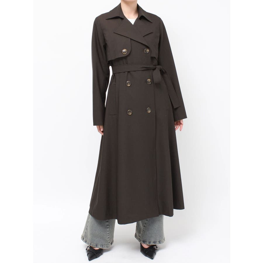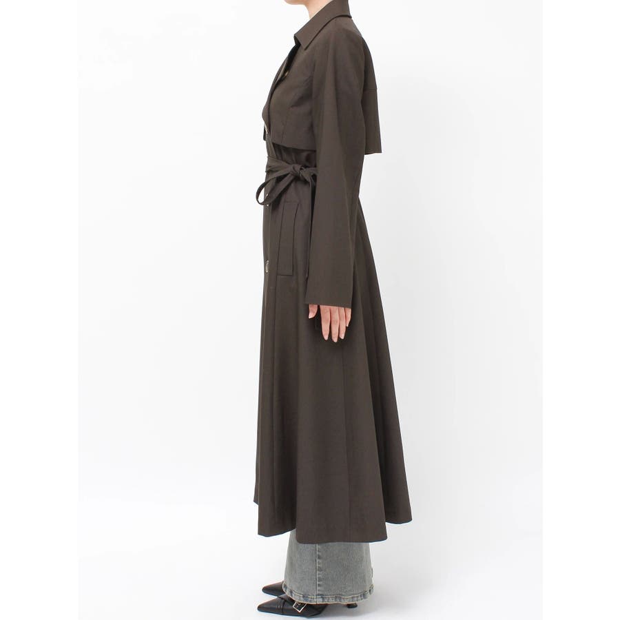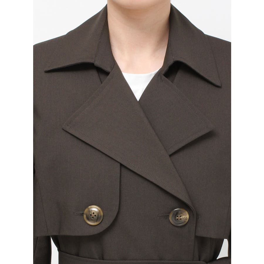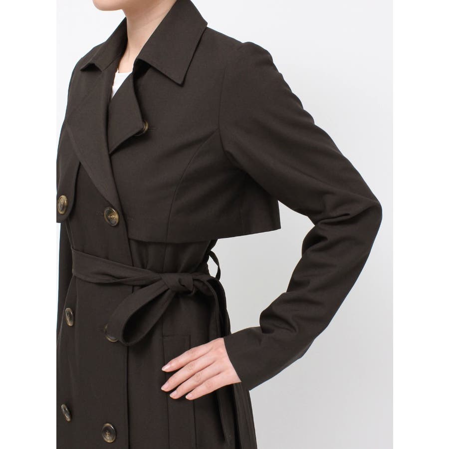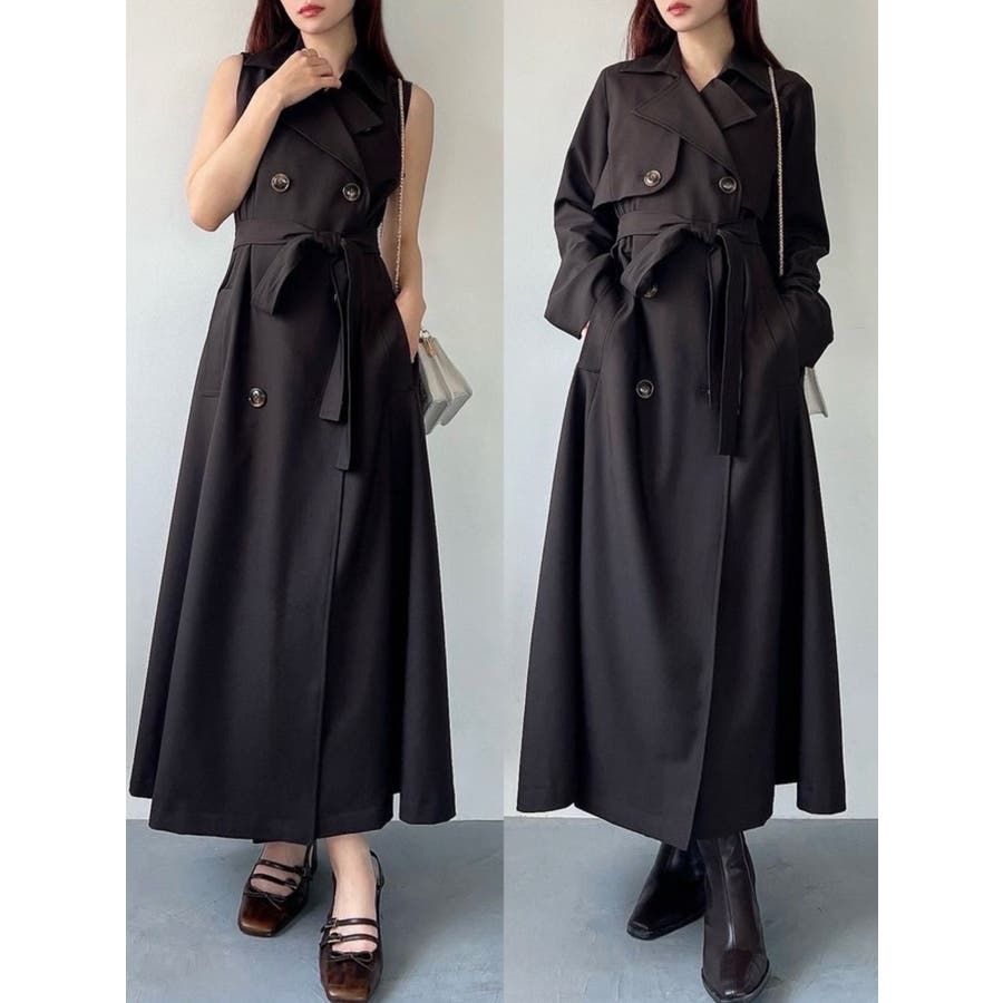 さらっとした柔らかい素材を使った上品なトレンチコート▽デザイン▽トレンチコートとしての着用、袖を取り外してジレやノースリーブワンピースとしても着用できる2WAY仕様!ヨークと袖はボレロのようにセパレートになっているので簡単に取り外し可能◎エッジの効いたレイヤードデザインでワンランク上の大人の女性の雰囲気を表現しました。シンプルなデザインながら着回しもできるので1枚持っているとロングシーズン活躍する優れもの!▽カラー▽ネイビー・ブラウン・ベージュの3色展開。▽スタイリング▽前を開けてサラッと羽織ったり、共布ベルトでウエストを締めてメリハリのあるシルエットを楽しんだりと、シーズン長く活躍します。※着用画像はフラッシュの加減で実際の製品と色味等が異なる場合がございますので、生地のズームアップ画像をご確認ください。※ご利用の端末画面の設定により実際の商品と色味が異なる場合がございます。【商品特徴】透け感:なし伸縮性:なし生地の厚さ:普通サイズ感:普通裏地:ありポケット:あり(前)