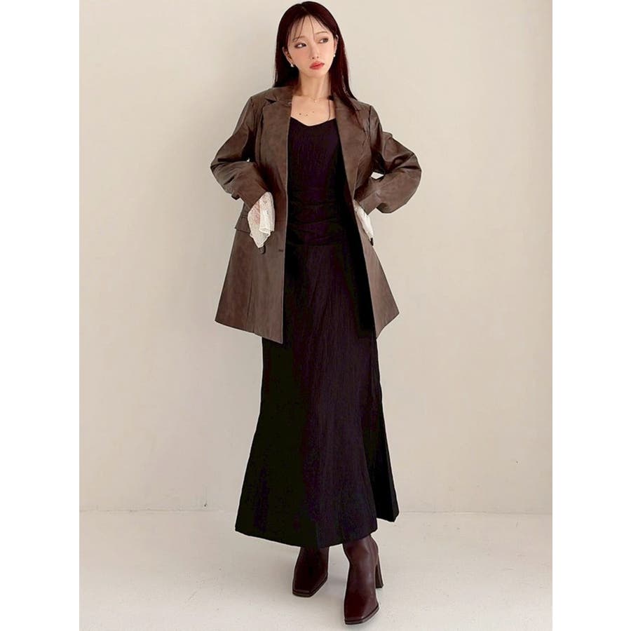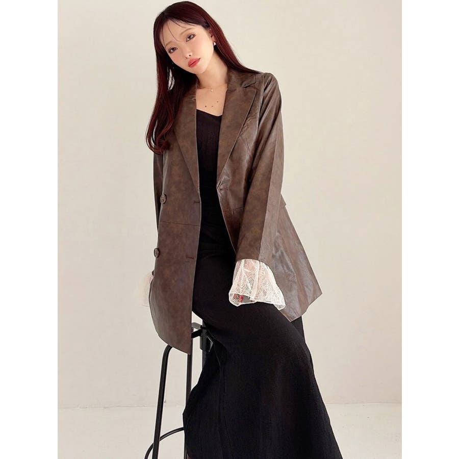 【展示会人気NO.1】秋にマストのジャケットが登場▽デザイン▽ヴィンテージ加工をほどこしたフェイクレザージャケット。オーバーサイズなのでヒップまで隠れる丈感で、抜け感をプラス。袖口にはレースをワンポイントで付け、ヴィンテージ感と甘め要素のバランスが可愛い1着袖口のレースは取り外し可能なので普通のジャケットとしても着用出来ます。軽めの生地を使用したので暖冬の今にピッタリのジャケットです。▽カラー▽黒・ブラウン・ベージュの3色展開。▽スタイリング▽ヴィンテージ加工とオーバーサイズが、羽織るだけで一気にトレンドルックに。サイズ感にゆとりがあるのでトップス×ボトムコーデからワンピースまでどんなアイテムにも羽織れるので重宝します◎※着用画像はフラッシュの加減で実際の製品と色味等が異なる場合がございますので、生地のズームアップ画像をご確認ください。※ご利用の端末画面の設定により実際の商品と色味が異なる場合がございます。【商品特徴】透け感:なし伸縮性:なし生地の厚さ:普通サイズ感:ゆったり裏地:ありポケット:あり(前)