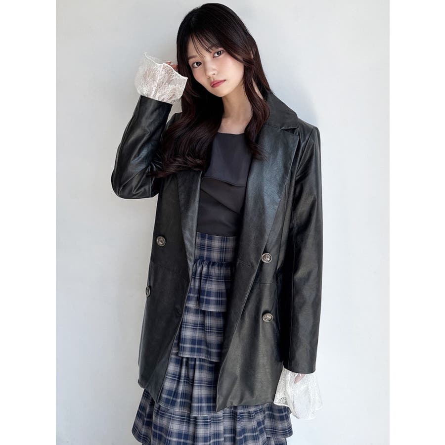 カフスレースフェイクレザージャケット