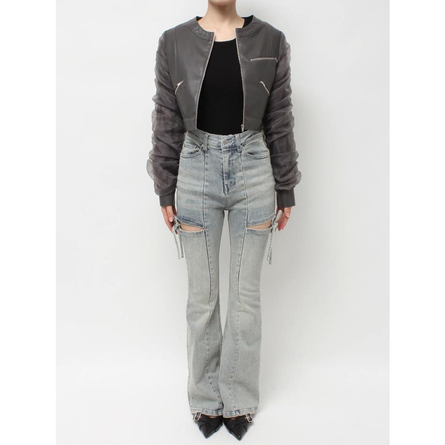 シアースリーブとギャザーがポイントのブルゾン▽デザイン▽合皮を使用したクールな印象漂うブルゾンですが、ノーカラーや袖のシアー素材、たっぷりと寄せたギャザースリーブで女性らしさをプラスさせたバランスの良い1枚。ジップデザインがクールな印象をプラス。サラッと羽織るだけで上半身をコンパクトに見せスタイルアップが叶います。▽カラー▽白・黒・チャコールグレーの3色展開。▽スタイリング▽クロップド丈なのでワンピースやハイウエストボトムとの相性抜群!秋や春の季節の変わり目にピッタリのアウターです◎※着用画像はフラッシュの加減で実際の製品と色味等が異なる場合がございますので、生地のズームアップ画像をご確認ください。※ご利用の端末画面の設定により実際の商品と色味が異なる場合がございます。【商品特徴】透け感:なし伸縮性:なし生地の厚さ:普通サイズ感:普通裏地:ありポケット:あり(前)