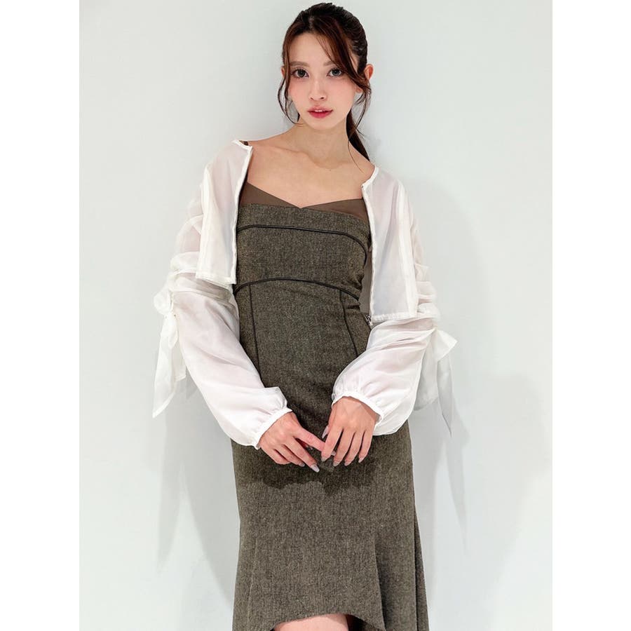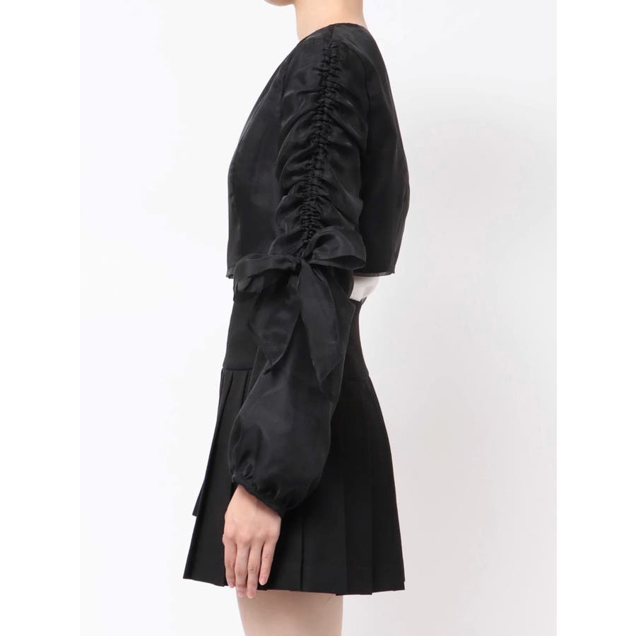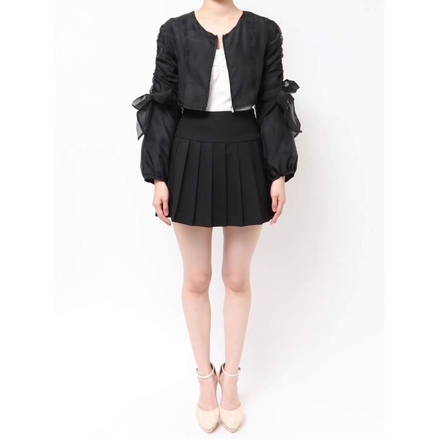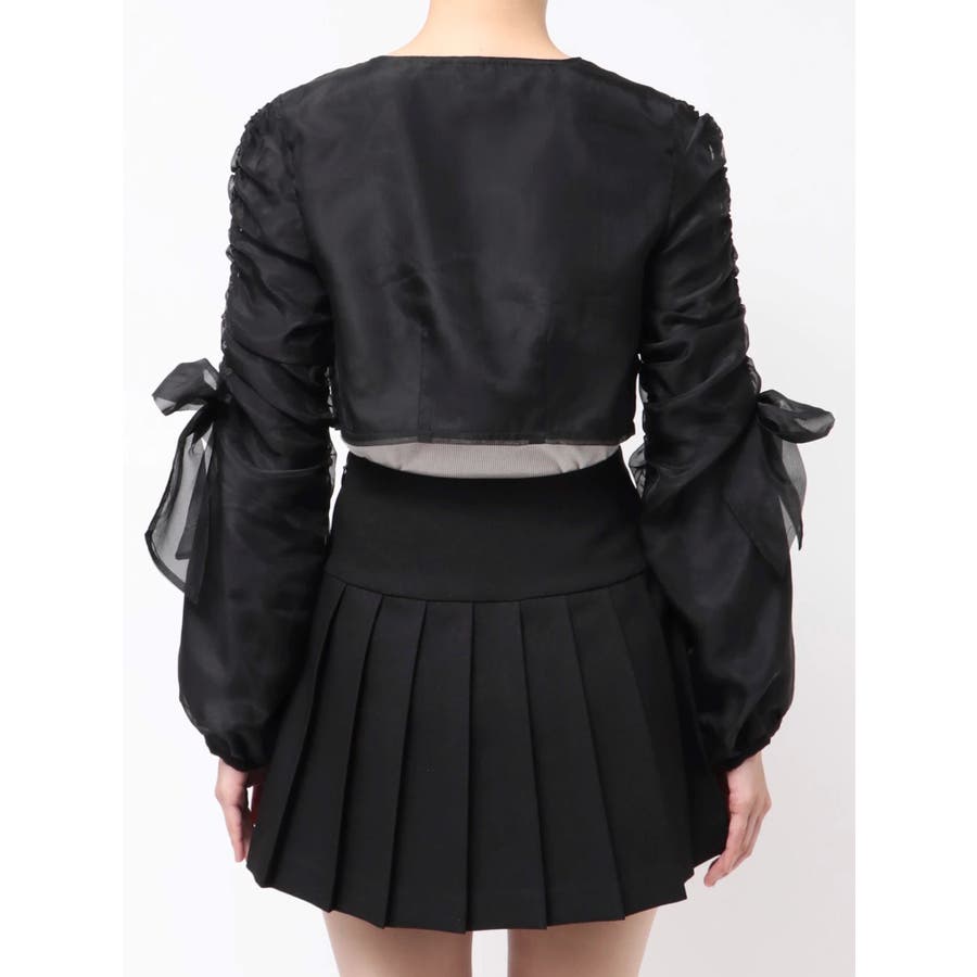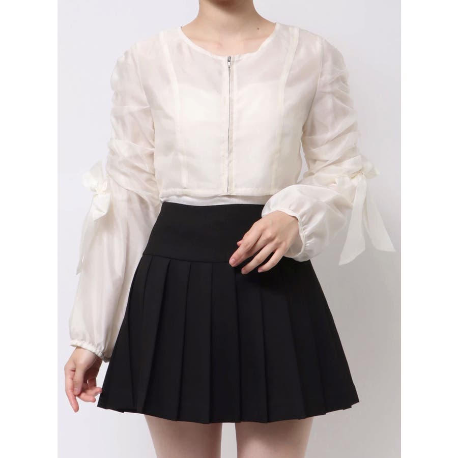 シアー素材×リボンディテールが目を惹くフェミニンブルゾン▽デザイン▽ほんのり光沢感のあるシアー素材が、上品さと抜け感を演出するショートブルゾン。袖にはたっぷりとギャザーを寄せてボリューム感を出しつつ、リボンディテールでフェミニンさをプラス。フロントはジップ仕様で、甘さの中にモード感もあるバランス良いアイテムに。トレンドのシアー感を取り入れつつ、周りと差がつくディテールが魅力の1枚です。▽カラー▽白・黒・ピンクの3色展開。▽スタイリング▽ョート丈なので、ハイウエストボトムと相性抜群◎スカートやパンツスタイルはもちろん、ワンピースの羽織りとしてもおすすめ。シアー素材なので重たくなく、秋口にかけてサラッと羽織れるアイテムです。※着用画像はフラッシュの加減で実際の製品と色味等が異なる場合がございますので、生地のズームアップ画像をご確認ください。※ご利用の端末画面の設定により実際の商品と色味が異なる場合がございます。【商品特徴】透け感:あり伸縮性:なし生地の厚さ:薄手サイズ感:普通裏地:ありポケット:なし