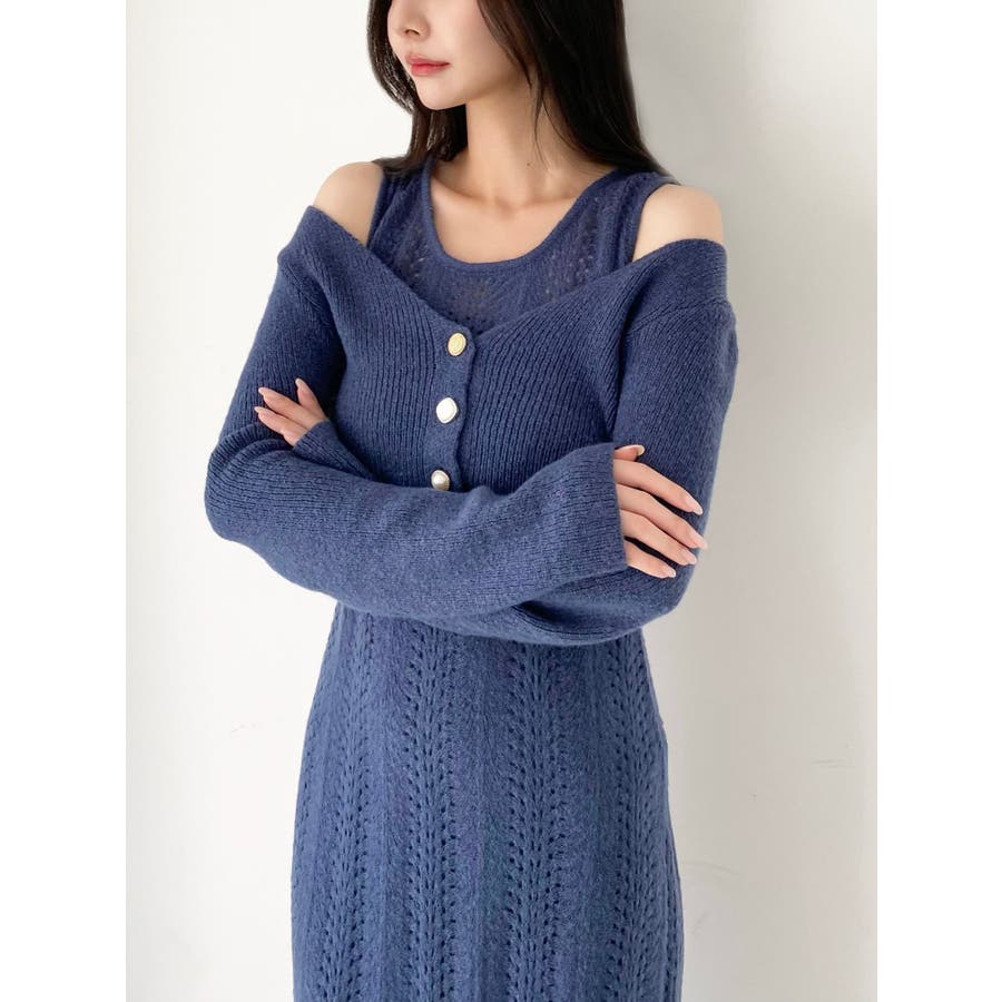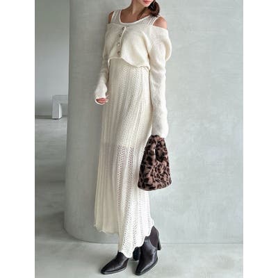 F: バスト[トップス]80~[ワンピース]77~[インナー]68cm/袖丈[トップス]56.5cm/肩幅[トップス]32.5~cm/総丈[トップス]37[ワンピース]125.5[インナー]68cm/ヒップ[ワンピース]80~cm/計量約480g