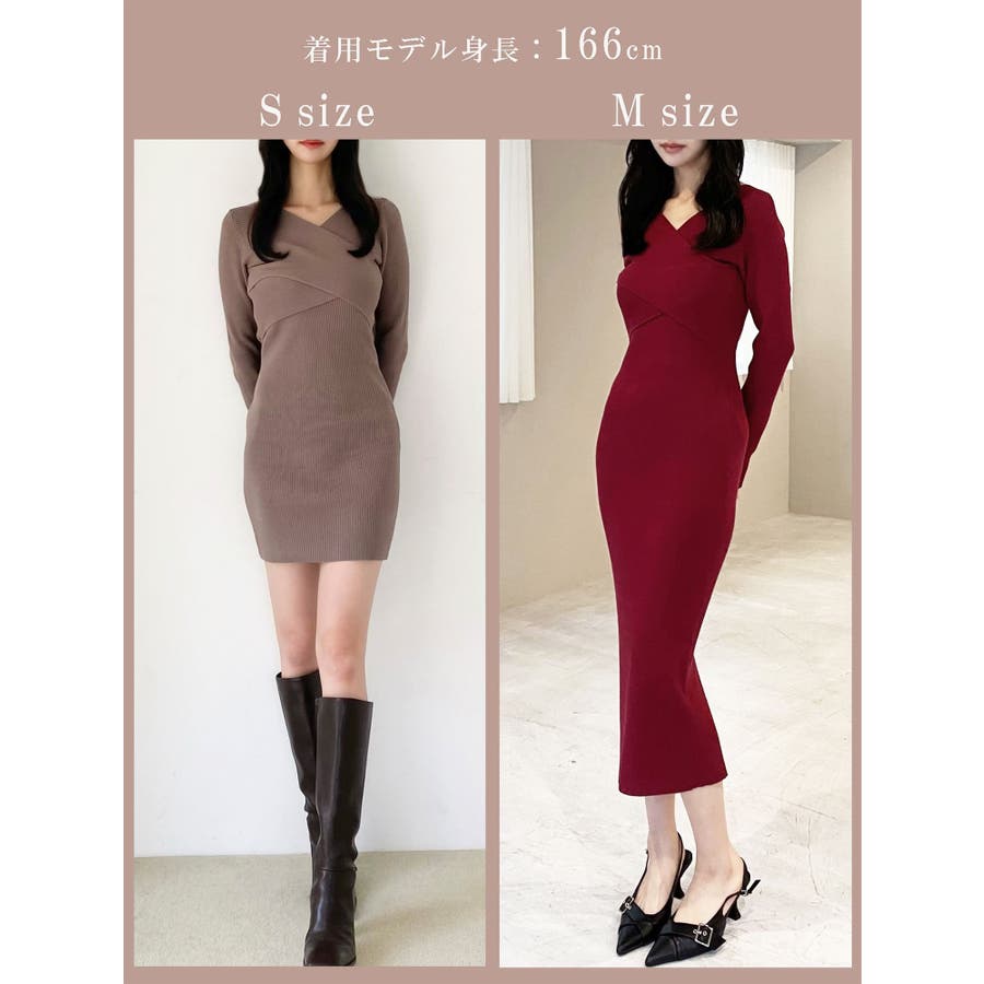 RESEXXY(リゼクシー)定番人気のタイトワンピース▽デザイン▽リブニット素材で軽く、着心地抜群のニットワンピース。身体のラインに沿い、着るだけで美シルエットを演出。フロントクロスデザインでデコルテ周りをすっきり見せてくれます。デザイン自体はシンプルなタイトワンピースなのでロングシーズンお使いいただけます◎今回もミニ丈・ミディ丈の2サイズ展開!▽カラー▽黒・赤・ベージュの3色展開。カラー違いやサイズ違いでのGETもおすすめ。▽スタイリング▽1枚でサラッと着用できてキレイ目コーデが完成。タイトシルエットなので羽織りも合わせやすく、1枚持っていると重宝するアイテムです。※Sサイズは膝上のミニ丈、Mサイズは膝下のミディ丈となります。ご購入の際はお間違い無いようご注意ください。※着用画像はフラッシュの加減で実際の製品と色味等が異なる場合がございますので、生地のズームアップ画像をご確認ください。※ご利用の端末画面の設定により実際の商品と色味が異なる場合がございます。【商品特徴】透け感:なし伸縮性:あり生地の厚さ:普通サイズ感:細身裏地:なしポケット:なしファスナー:なし