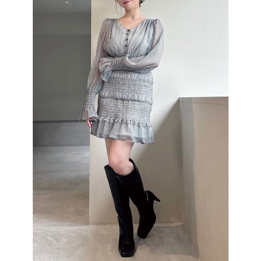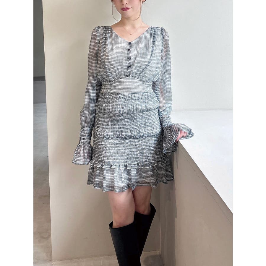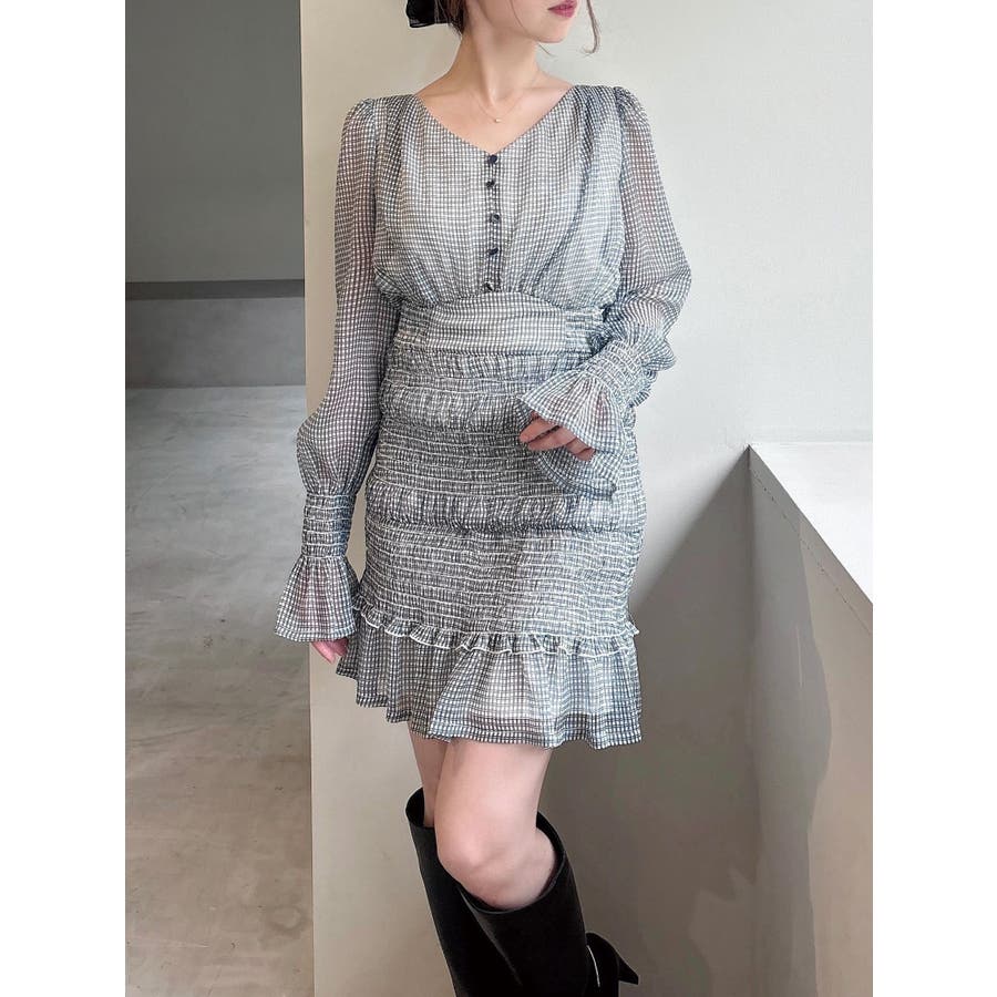 シャーリングデザインがポイントのミニワンピース▽デザイン▽スカート部分はシャーリングデザインにしたことで伸縮性があり着心地抜群◎立体感のあるデザインになり、ヒップラインをカバーしてくれます。上見頃は飾りボタンがアクセントになり上品さをプラス。シアー生地で袖は肌の透け感で女性らしさUP♪コルセットデザインのウエスト切り替えでスタイルアップできる1枚です。▽カラー▽無地の白と、チェック柄のミックス・ライトミックスの3色展開。▽スタイリング▽1枚でサラッと着れて女性らしいコーデに!肌の透け感があるので春先や秋口など季節の変わり目にピッタリ◎ジャケットなどの秋羽織りとも好相性でロングシーズン着用できます。
