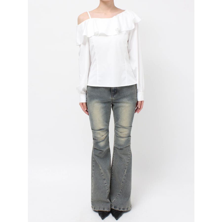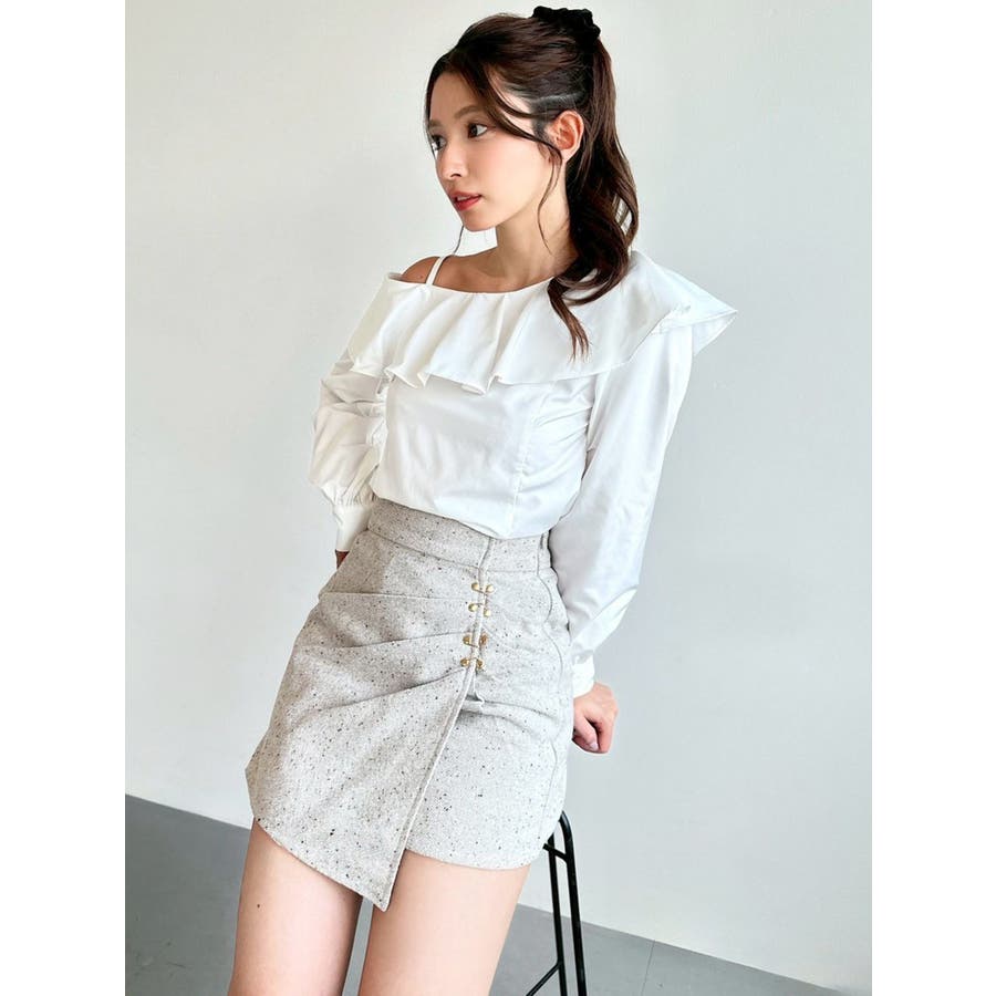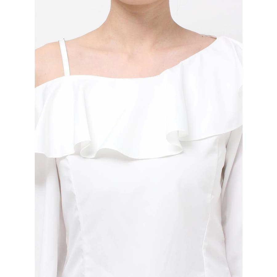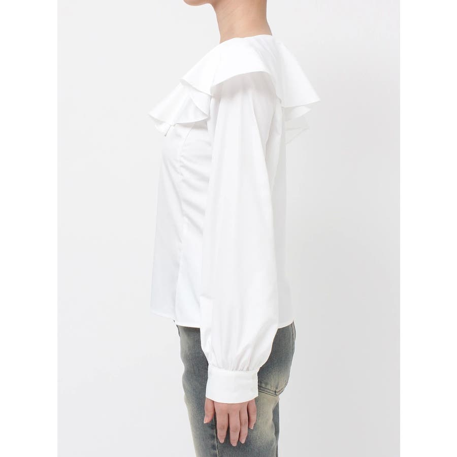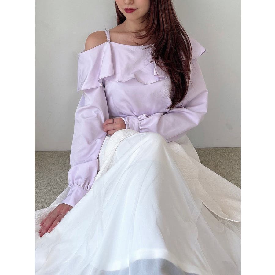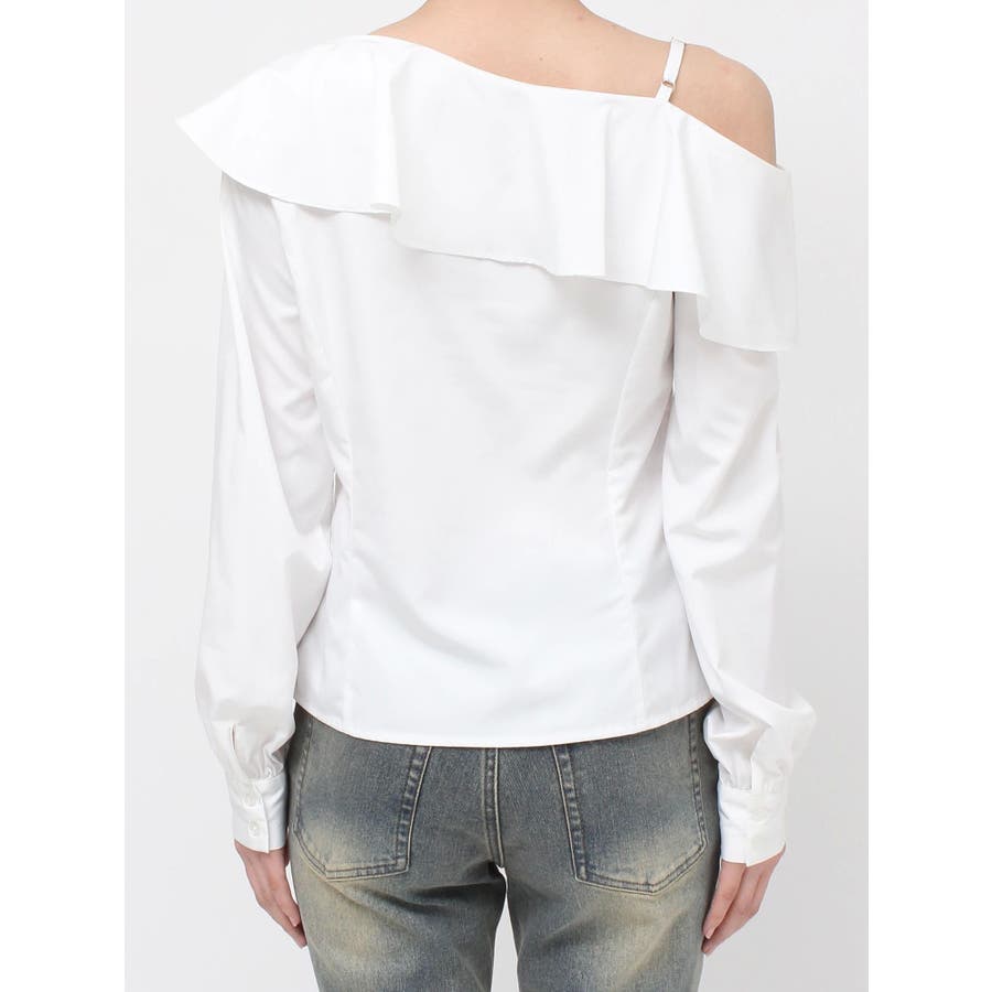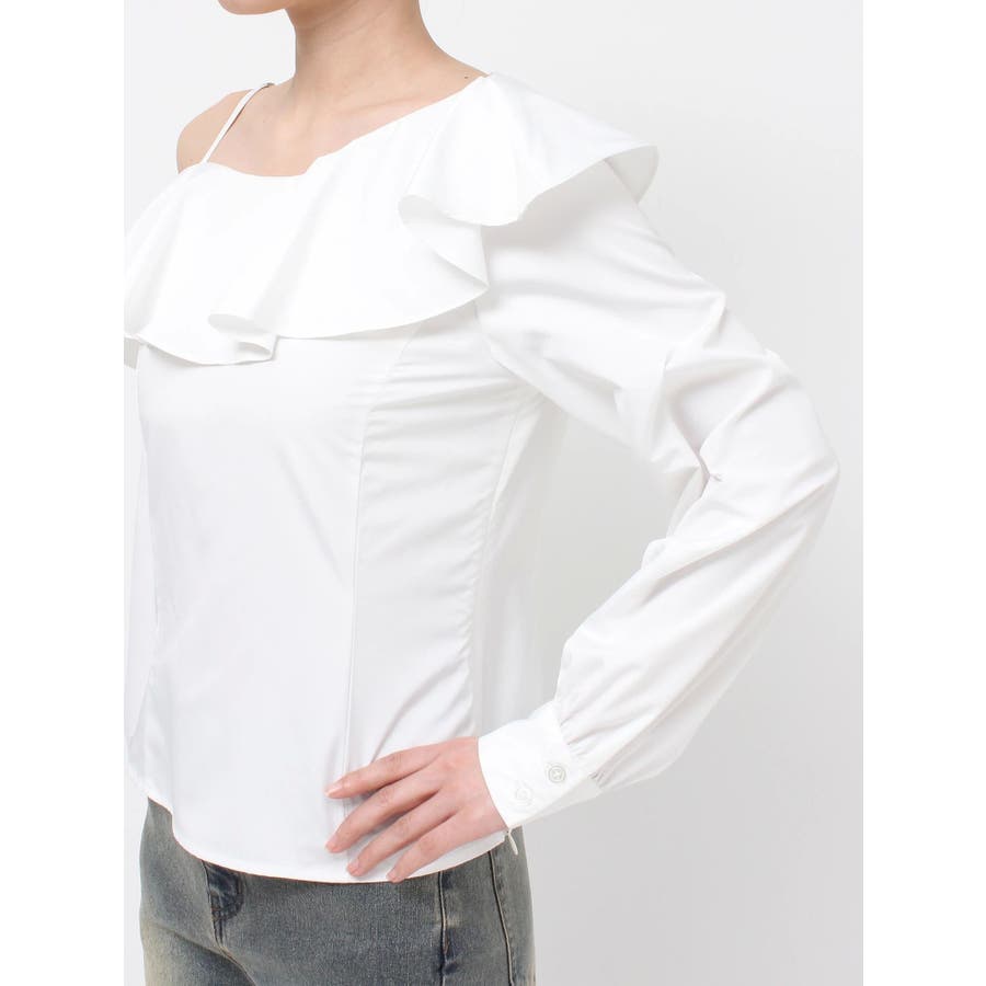 秋のはじまりにぴったりなラッフルブラウス▽デザイン▽軽さのあるタイプライターを使用し、ハリのある上品なシャツに仕上げました。ゆったり着られるサイズ感でバランスが取りやすい程よい抜け感のあるアイテムです。ワンショルデザインなので肌見せが女性らしさを高めます。▽カラー▽白・黒・ラベンダーの3色展開。▽スタイリング▽パンツからスカートまで様々なボトムスと好相性。インスタイルがフワッとしたシルエットになりおすすめ!上品な生地感とデザインなので様々なシーンで活躍します。※着用画像はフラッシュの加減で実際の製品と色味等が異なる場合がございますので、生地のズームアップ画像をご確認ください。※ご利用の端末画面の設定により実際の商品と色味が異なる場合がございます。【商品特徴】透け感:(ホワイト)あり透け感:(その他カラー)なし伸縮性:なし生地の厚さ:薄手サイズ感:普通裏地:なしポケット:なし