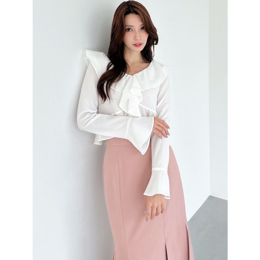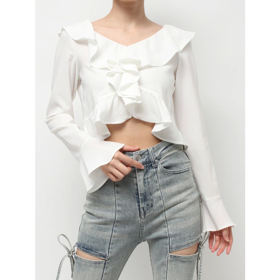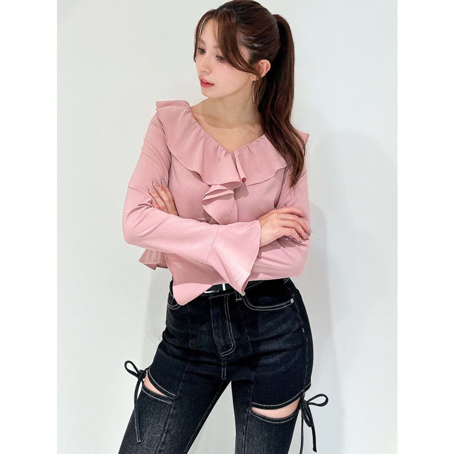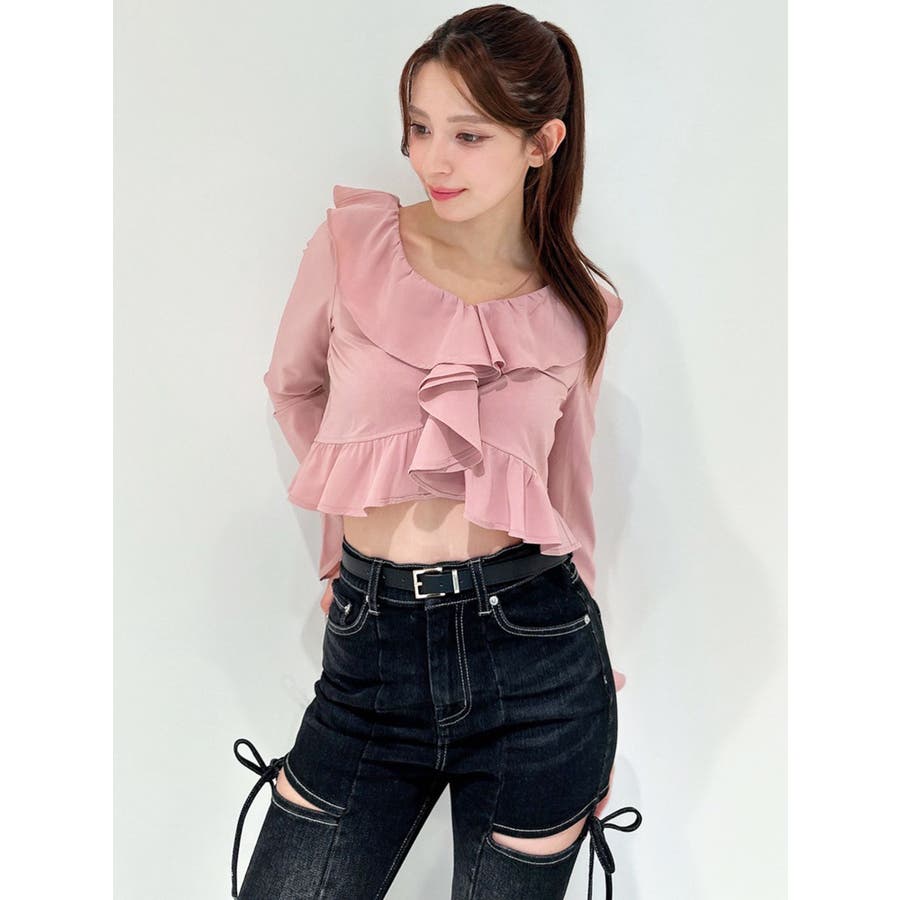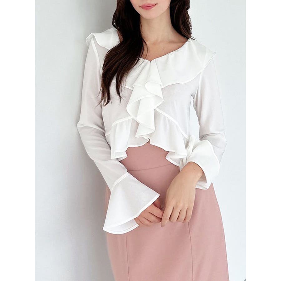 コーデを華やかに仕上げるラッフルブラウス▽デザイン▽サラッとした生地感で秋口にも着やすいブラウス。ラッフルデザインが華やかさをプラスします。肌見せができるので重たくなく、トレンドコーデに!▽カラー▽白・黒・ピンクの3色展開。▽スタイリング▽デニムで韓国風のトレンドコーデはもちろん、スカート合わせでキレイ目コーデも◎コンパクトな丈感なのでスタイルアップ効果もあるブラウスです。※着用画像はフラッシュの加減で実際の製品と色味等が異なる場合がございますので、生地のズームアップ画像をご確認ください。※ご利用の端末画面の設定により実際の商品と色味が異なる場合がございます。【商品特徴】透け感:なし伸縮性:なし生地の厚さ:普通サイズ感:普通裏地:なしポケット:なし