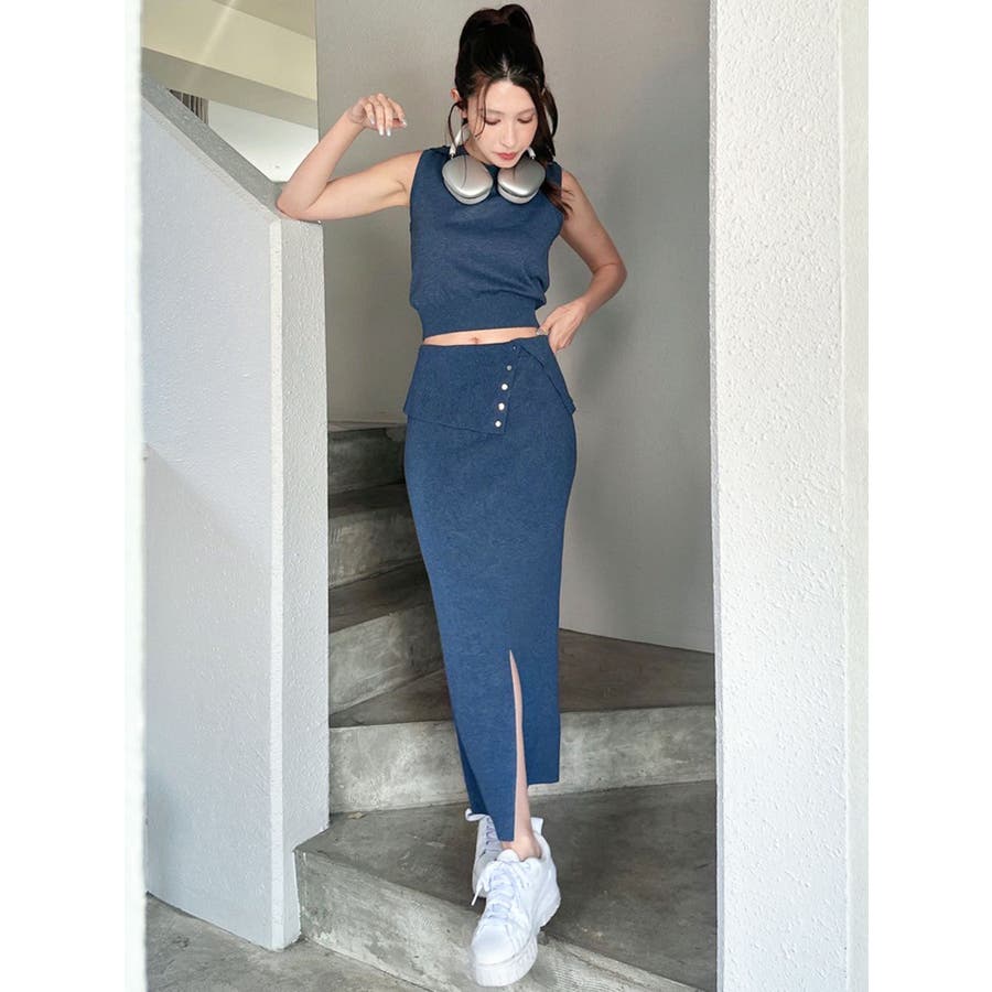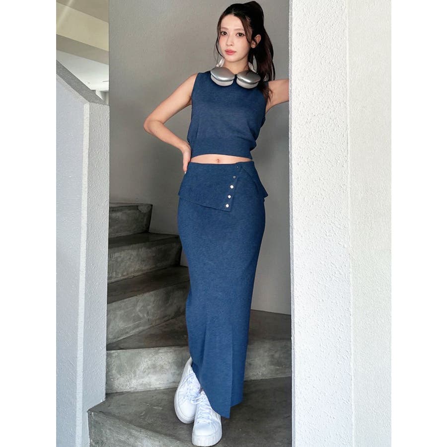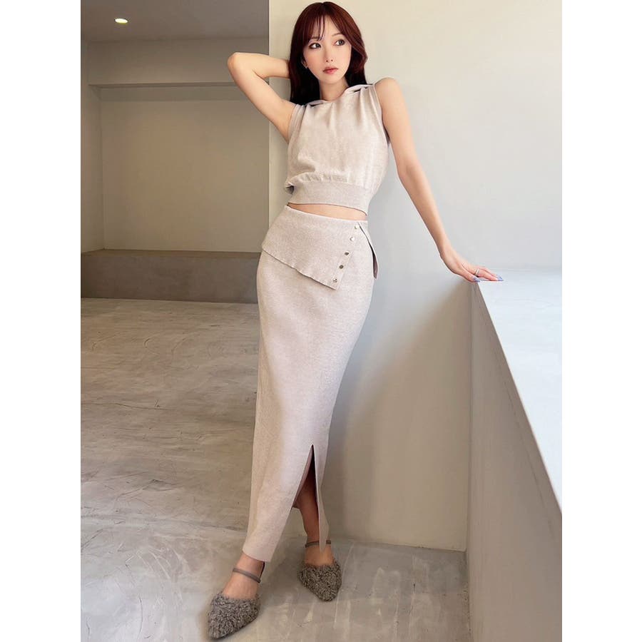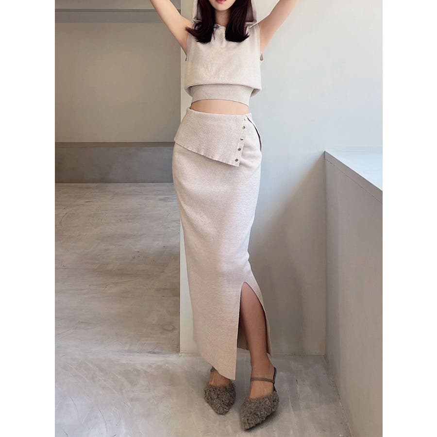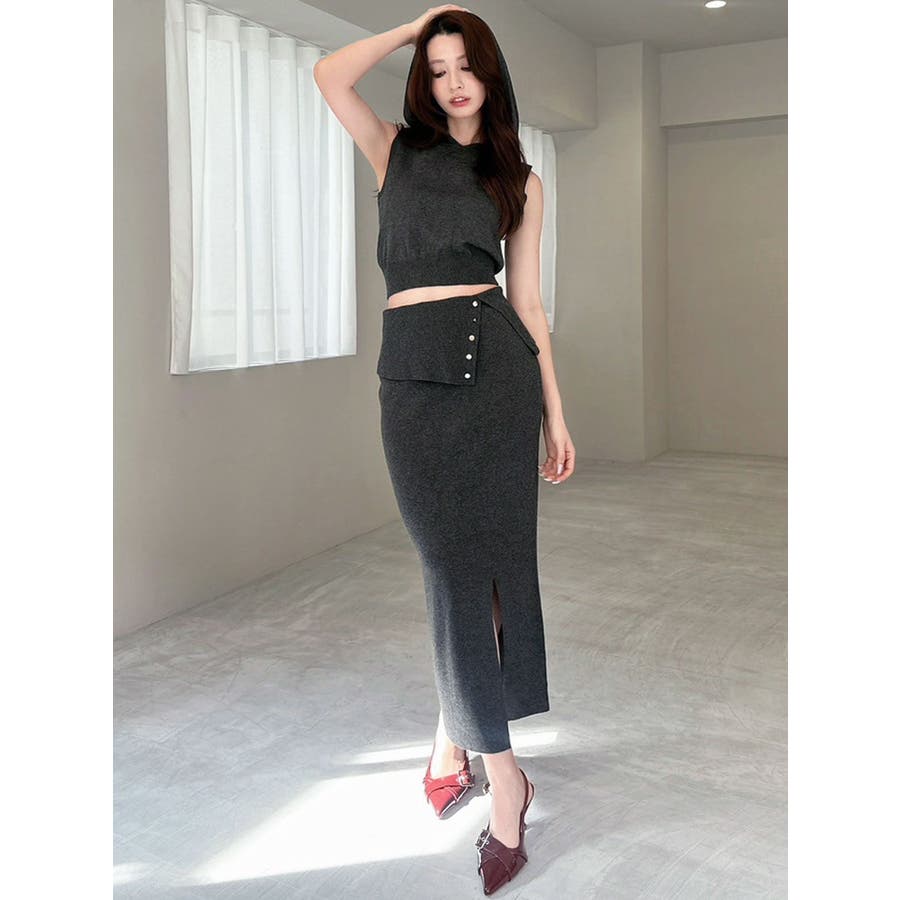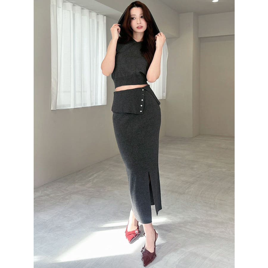 ウエストデザインタイトニットスカート【セットアップ着用可能】