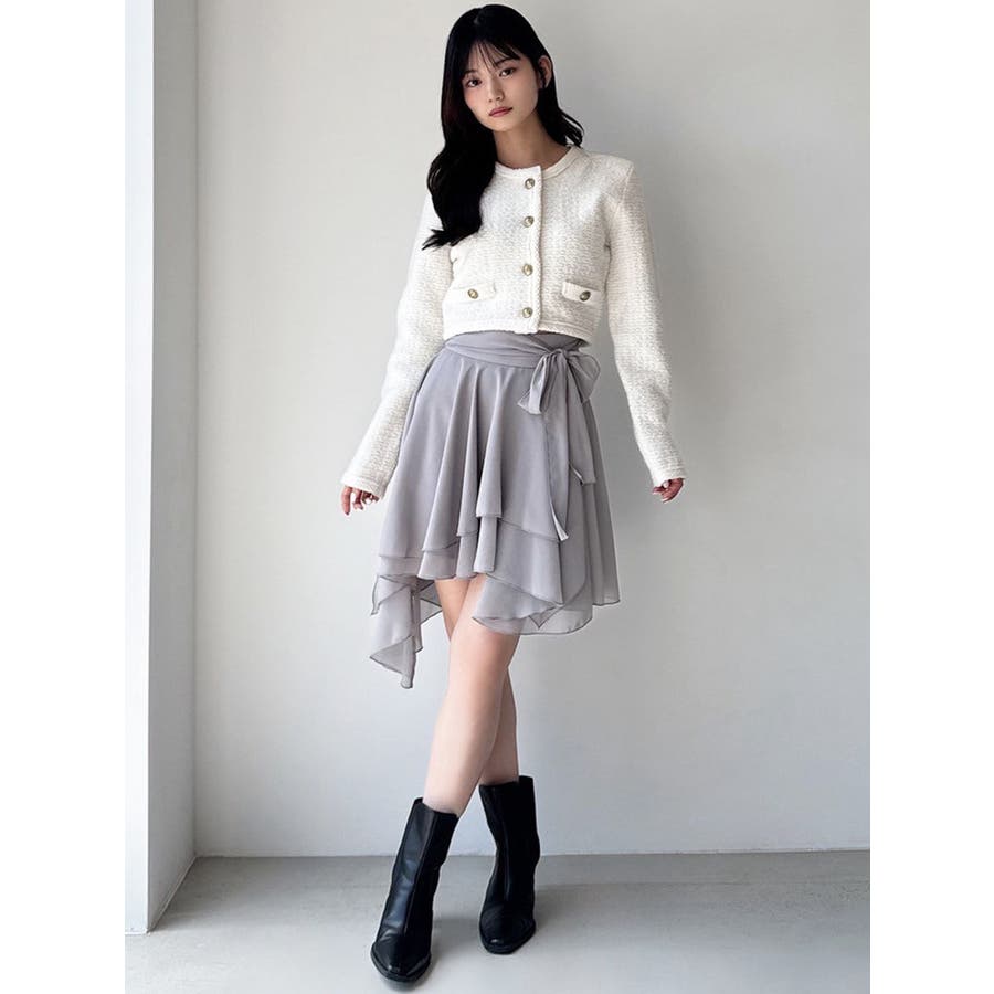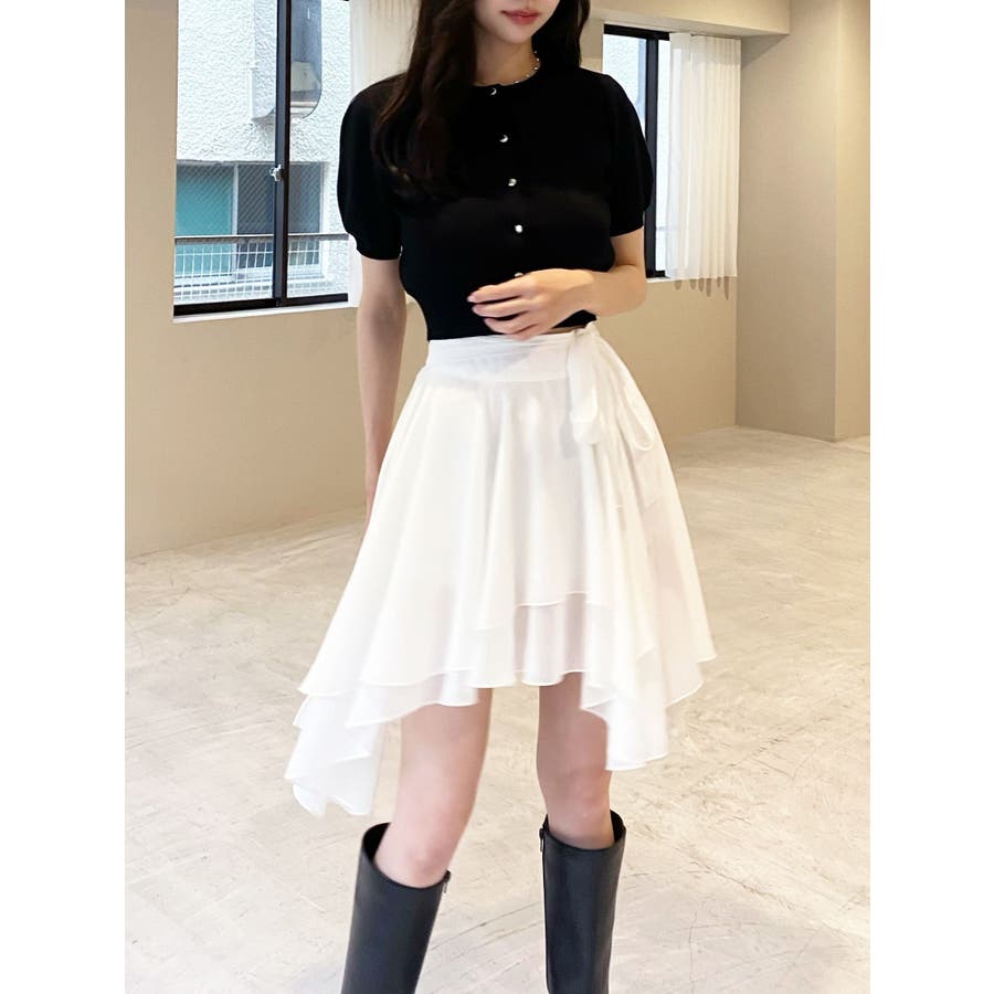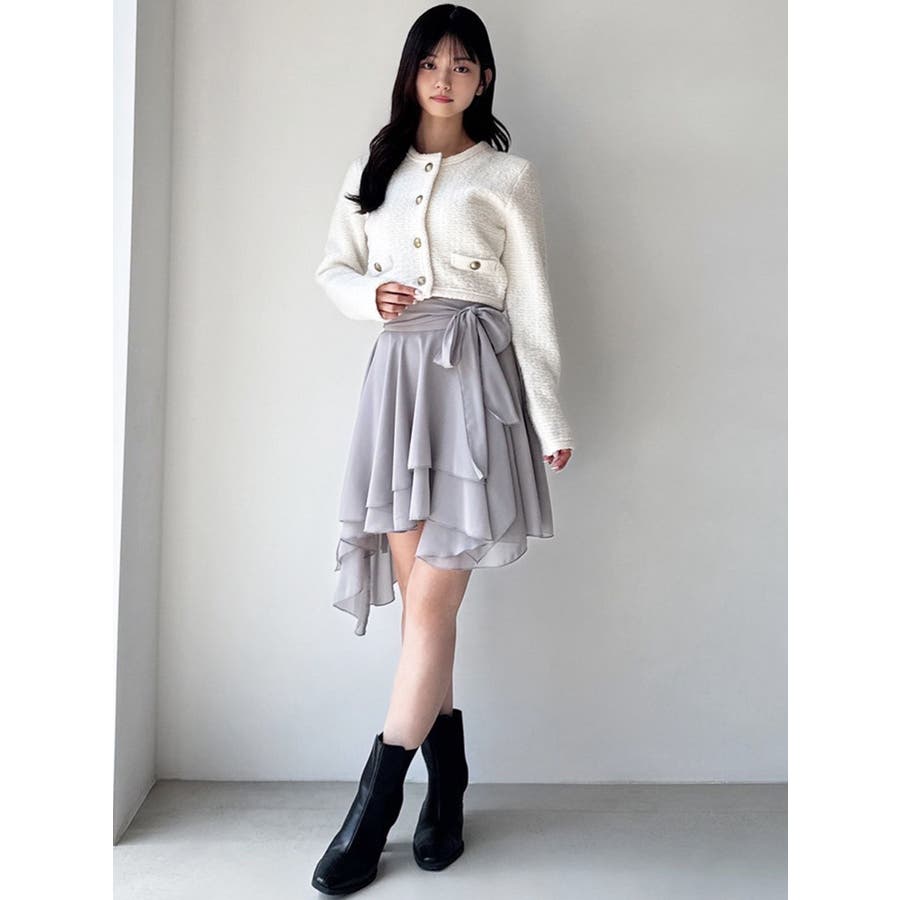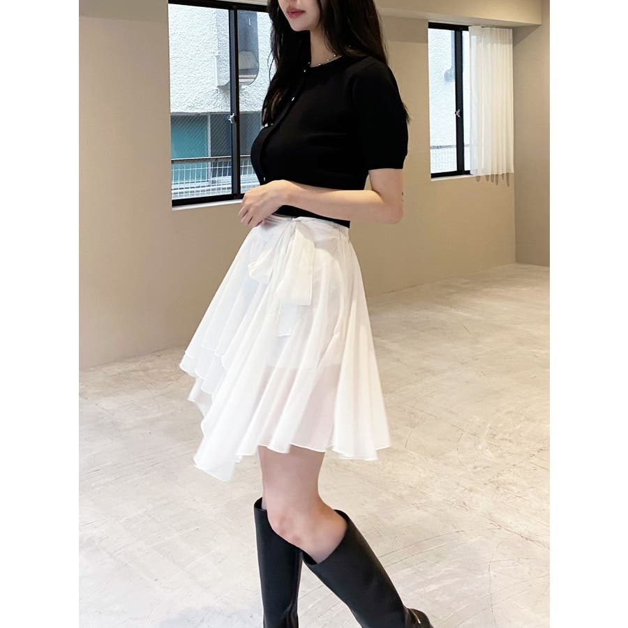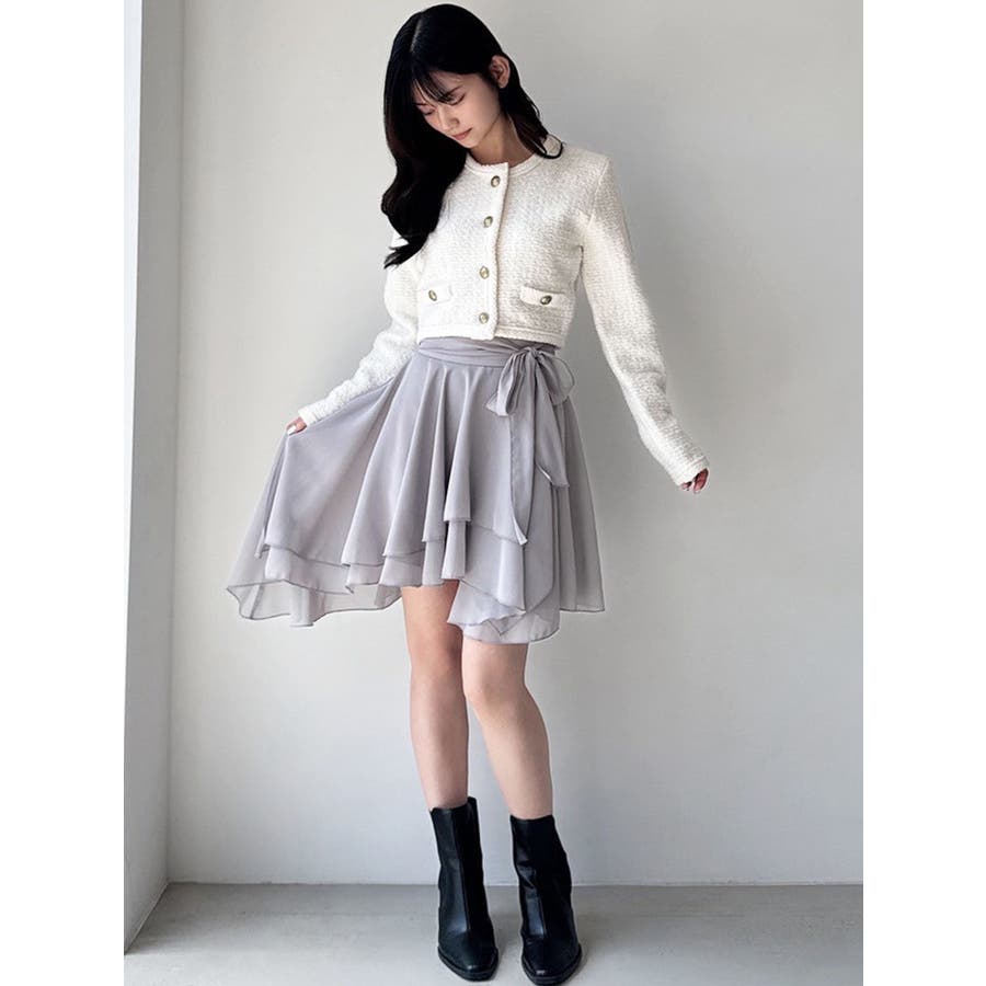 トレンドデザインのミニスカート▽デザイン▽シフォンジョーゼットを使用し、柔らかい動きのあるミニスカートに仕上げました。裾はランダムな丈で動きのあるデザインに。ランダムヘムデザインが美脚効果を高めます。ハイウエストでウエスト部分にリボンを付け、サイズ調節もできて可愛さもプラス!▽カラー▽白・黒・ライトグレーの3色展開。▽スタイリング▽ハイウエストなのでトップスをインしたスタイリングでウエストのリボンがアクセントのコーデに。アウトスタイリングでルーズなニットやオーバースウェットを合わせランダムヘムを裾から少し出すのが今年らしいトレンドコーデに◎軽い生地感なので真冬以外ロングシーズン活躍します♪※着用画像はフラッシュの加減で実際の製品と色味等が異なる場合がございますので、生地のズームアップ画像をご確認ください。※ご利用の端末画面の設定により実際の商品と色味が異なる場合がございます。【商品特徴】透け感:あり伸縮性:なし生地の厚さ:薄手サイズ感:普通裏地:ありポケット:なし