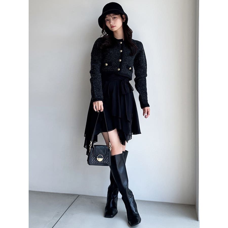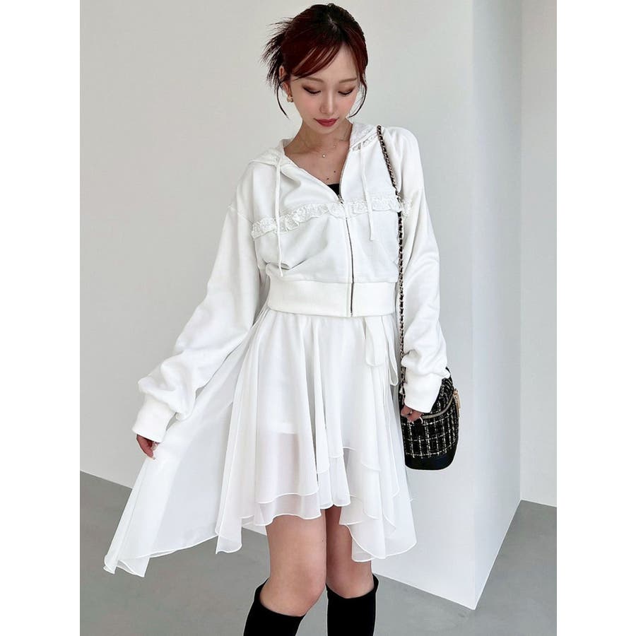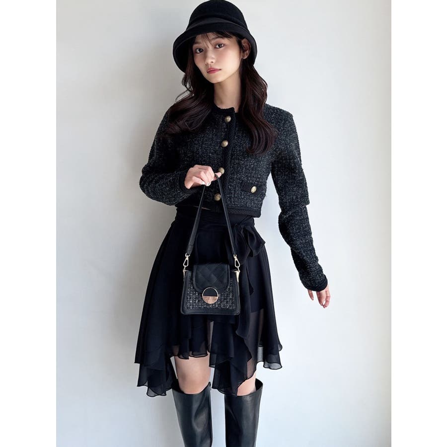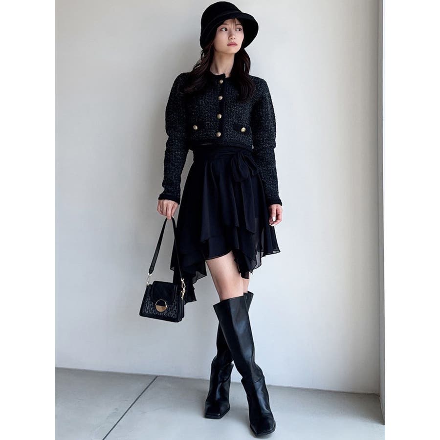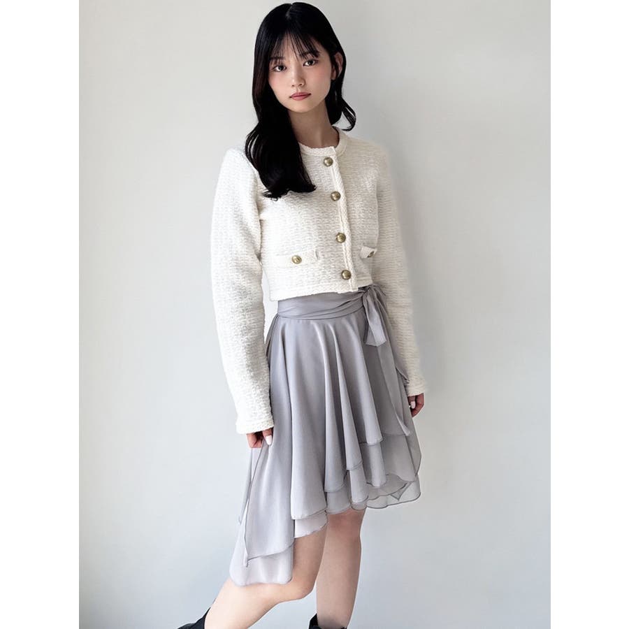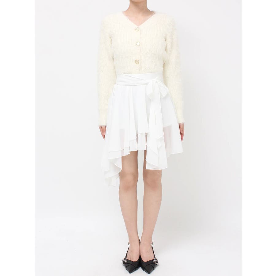 トレンドデザインのミニスカート▽デザイン▽シフォンジョーゼットを使用し、柔らかい動きのあるミニスカートに仕上げました。裾はランダムな丈で動きのあるデザインに。ランダムヘムデザインが美脚効果を高めます。ハイウエストでウエスト部分にリボンを付け、サイズ調節もできて可愛さもプラス!▽カラー▽白・黒・ライトグレーの3色展開。▽スタイリング▽ハイウエストなのでトップスをインしたスタイリングでウエストのリボンがアクセントのコーデに。アウトスタイリングでルーズなニットやオーバースウェットを合わせランダムヘムを裾から少し出すのが今年らしいトレンドコーデに◎軽い生地感なので真冬以外ロングシーズン活躍します♪※着用画像はフラッシュの加減で実際の製品と色味等が異なる場合がございますので、生地のズームアップ画像をご確認ください。※ご利用の端末画面の設定により実際の商品と色味が異なる場合がございます。【商品特徴】透け感:あり伸縮性:なし生地の厚さ:薄手サイズ感:普通裏地:ありポケット:なし