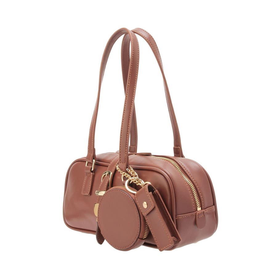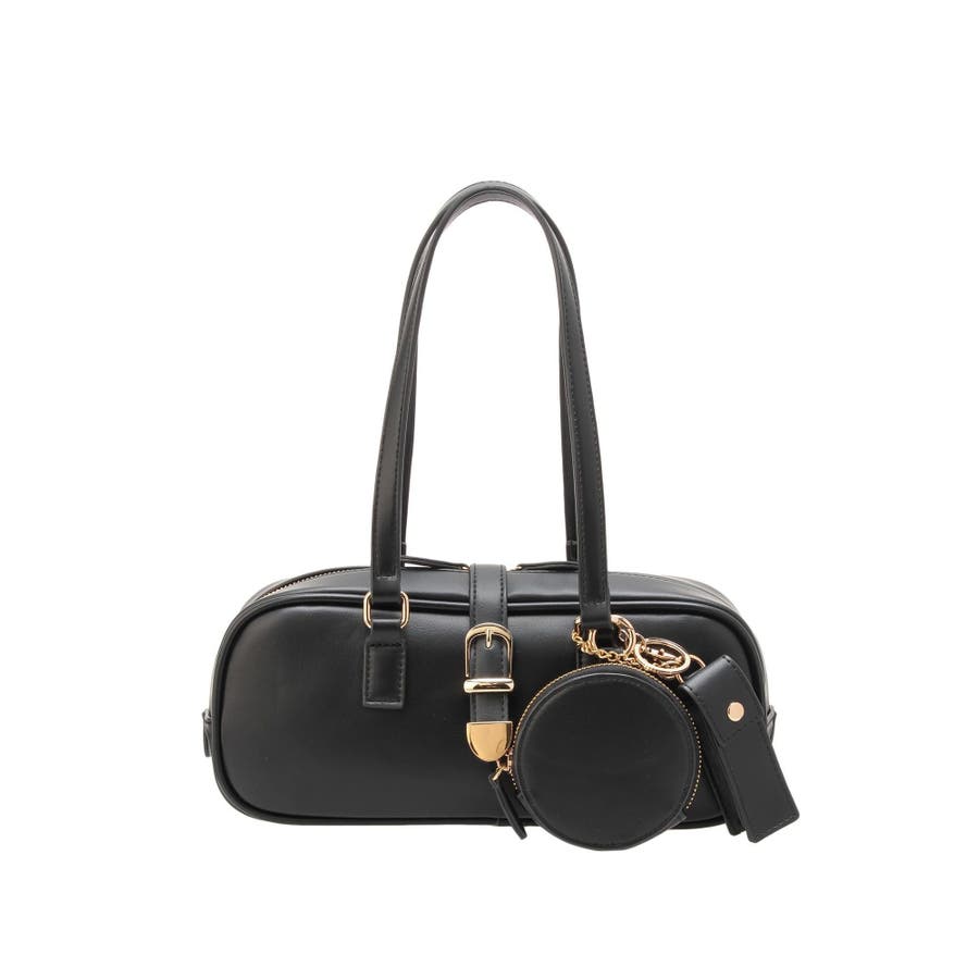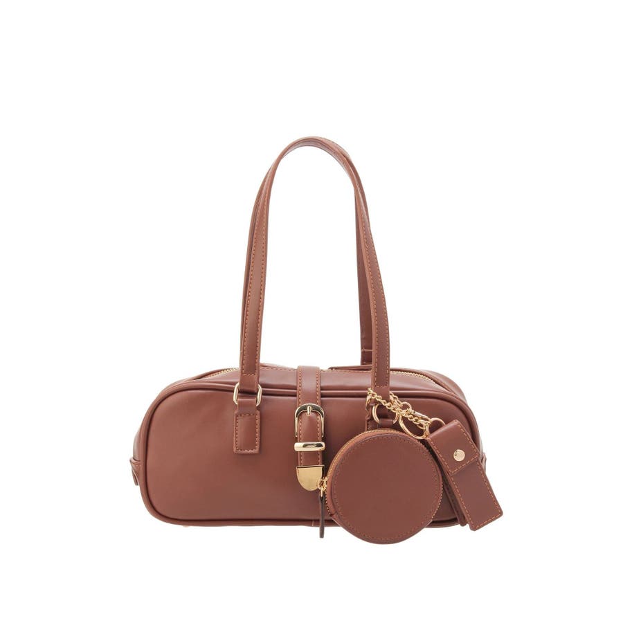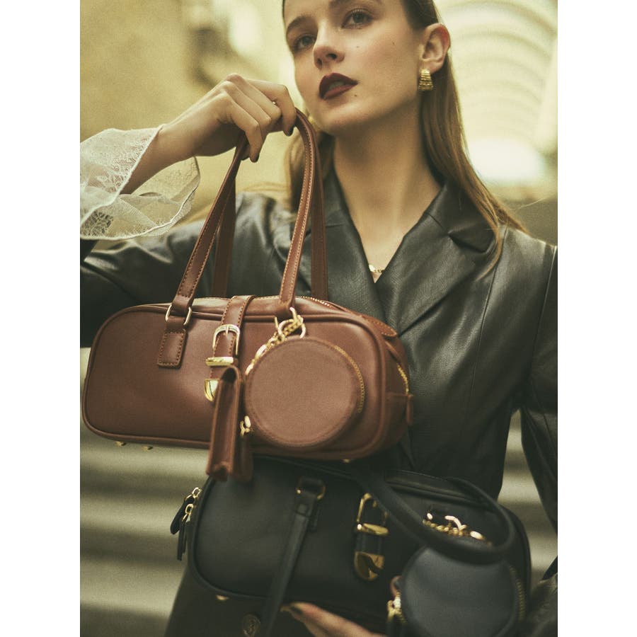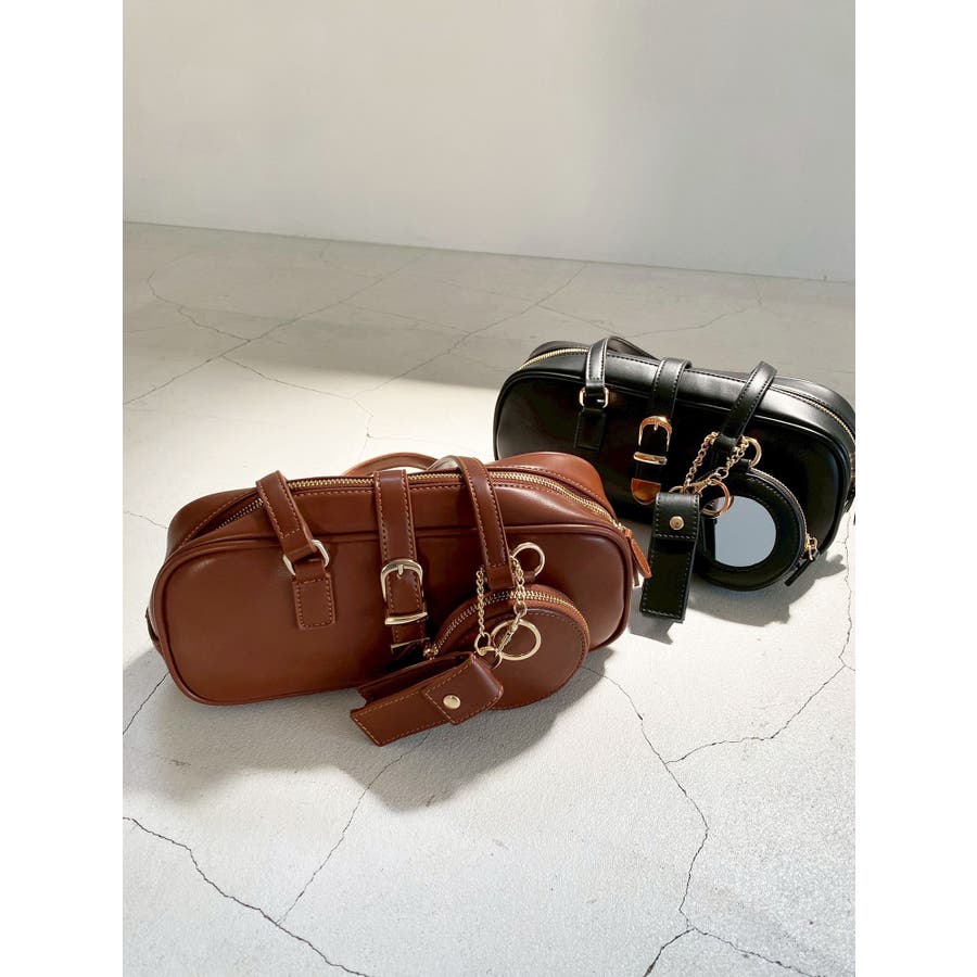 トレンドの横長のバッグがRESEXXY(リゼクシー)から登場▽デザイン▽500mlのペットボトルがすっぽり入り、内ポケットも2つ付け小物もたっぷり入る収納性抜群のバッグです。チャームには鏡付きの丸型ポーチとリップケース、お持ちのストラップも付けられる丸カン付き!チャームは取り外し可能なのでお好きな組み合わせでアレンジ可能♪▽カラー▽黒・ブラウンの2色展開。