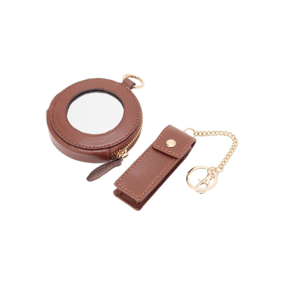 F: 持ち手[本体]53cm/たて[本体]14[丸型ポーチ]9[リップケース]9.5cm/よこ[本体]29[丸型ポーチ]9[リップケース]3cm/マチ[本体]7.5[丸型ポーチ]1.7[リップケース]1.7cm/計量約520g