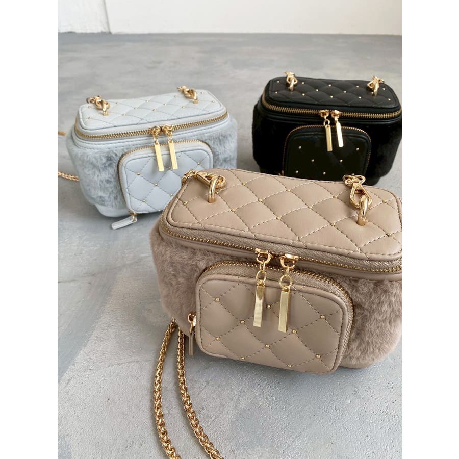 機能性UP!ふわふわバニティーバッグが登場!▽デザイン▽ファー素材のバニティバッグで、持つだけでシーズンムードが高まるアイテム。前回のバニティバッグから前面にポケットが付き、更に使いやすくなりました。蓋部分はミラー付きで、このバッグ一つでいつものお出かけもオシャレに決まるアイテムです。コロンとしたフォルムでこれからのシーズンにピッタリ◎▽カラー▽黒・青・ベージュの3色展開。青とベージュは新色で、コーデの差し色としても♪