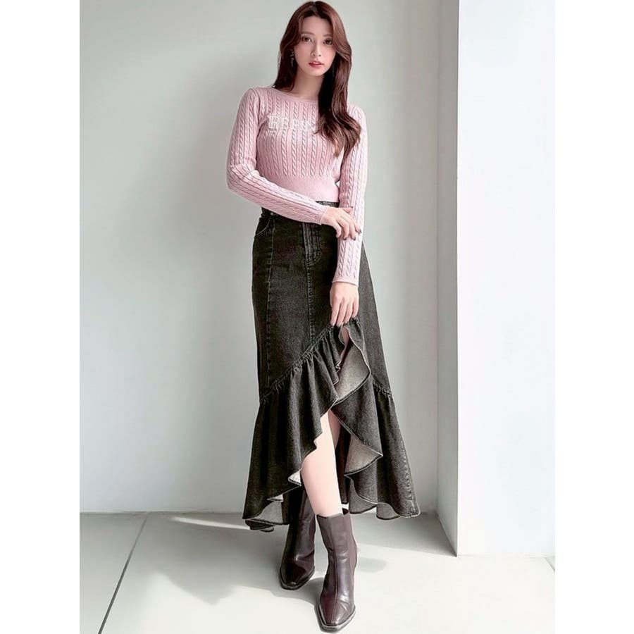 トレンドルックにピッタリのデニムスカート▽デザイン▽カジュアルな素材ながら、デザインやシルエットで女性らしさUP!ラッフルデザインが動きを出し、華やかさをプラス。動くたびにスリットから脚が見え、ブーツを合わせても軽やかな印象に。マーメイドシルエットが360度どこから見てもメリハリあるシルエットに◎▽カラー▽黒・アイスブルーの2色展開。▽スタイリング▽ハイウエストなのでブラウスからTシャツ・ニットまでどんなトップスにも万能にマッチします。デザイン性のあるスカートでコーデの主役に。※着用画像はフラッシュの加減で実際の製品と色味等が異なる場合がございますので、生地のズームアップ画像をご確認ください。※ご利用の端末画面の設定により実際の商品と色味が異なる場合がございます。【商品特徴】透け感:なし伸縮性:なし生地の厚さ:普通サイズ感:普通裏地:なしポケット:あり(前/後)