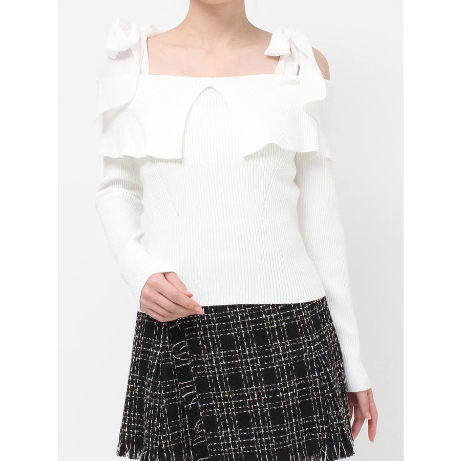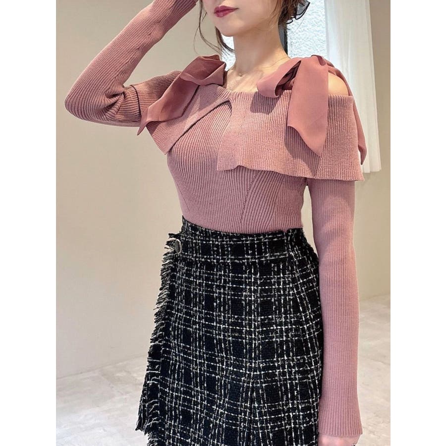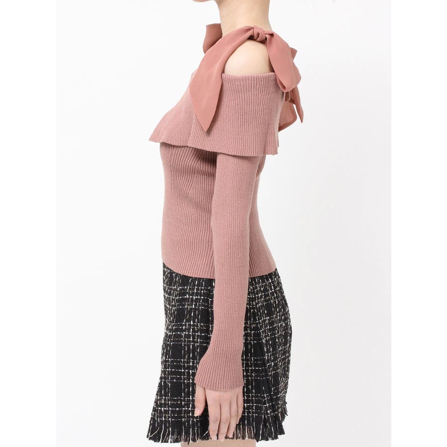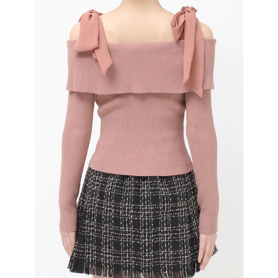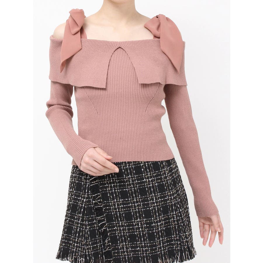 昨年も人気だったリボンニットが登場!▽デザイン▽ボリュームのあるシアー素材のショルダーリボンとオフショルニットのドッキングが可愛らしいトップス。ショルダーリボンは自分の好きな位置で結ぶことができます♪ビックカラーのオフショルでトレンドを取り入れ、肌見せもできて女性らしさUP◎▽カラー▽白・チャコールグレー・ピンクの3色展開。チャコールグレーはシアーとニットをバイカラーにしました。▽スタイリング▽スカートコーデ、パンツコーデどちらにもマッチする万能な1枚。ハイウエストボトムにインすることで上半身をコンパクトに見せバランスの取れたスタイリングになります。※着用画像はフラッシュの加減で実際の製品と色味等が異なる場合がございますので、生地のズームアップ画像をご確認ください。※ご利用の端末画面の設定により実際の商品と色味が異なる場合がございます。【商品特徴】透け感:なし伸縮性:あり生地の厚さ:普通サイズ感:普通裏地:なしポケット:なし