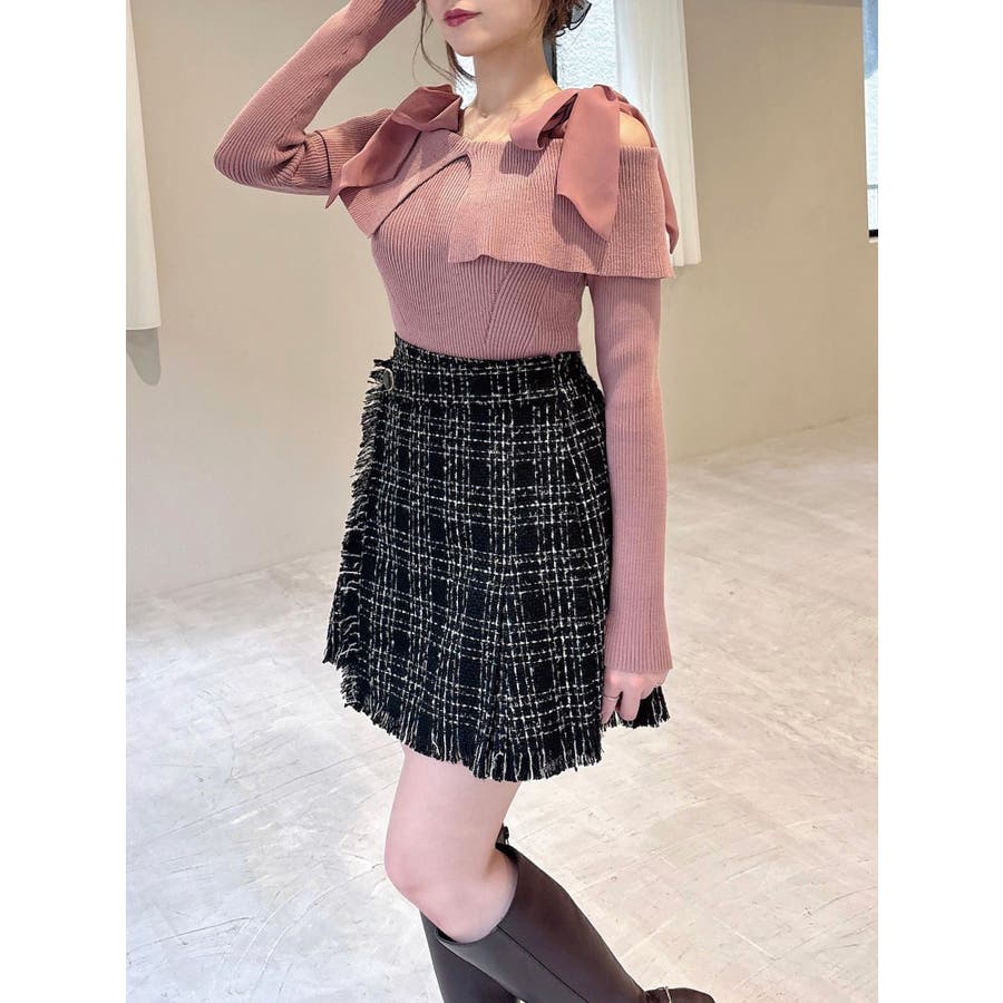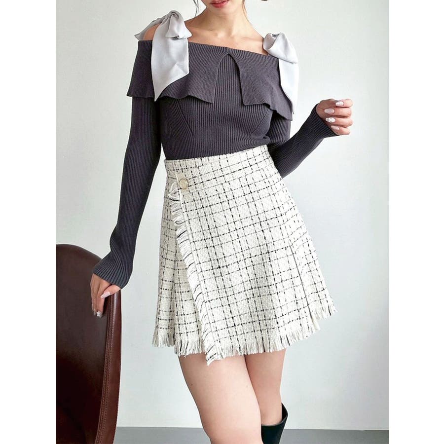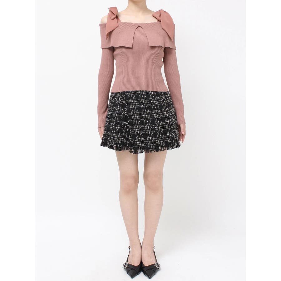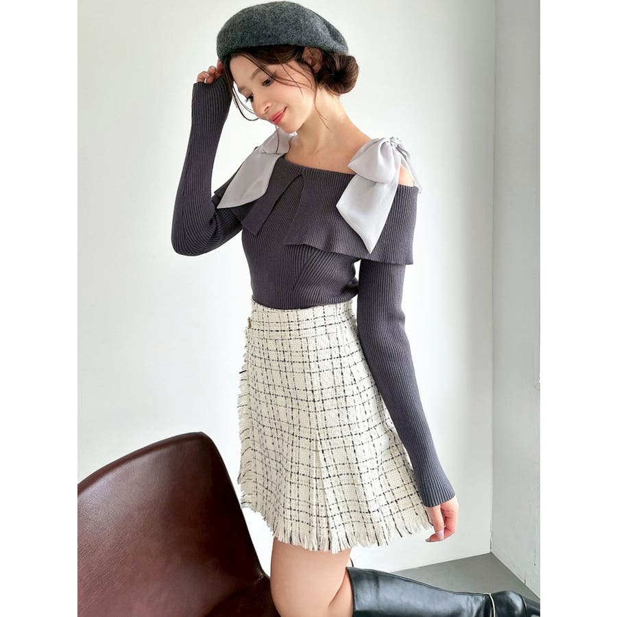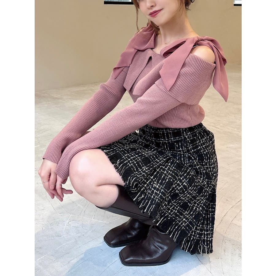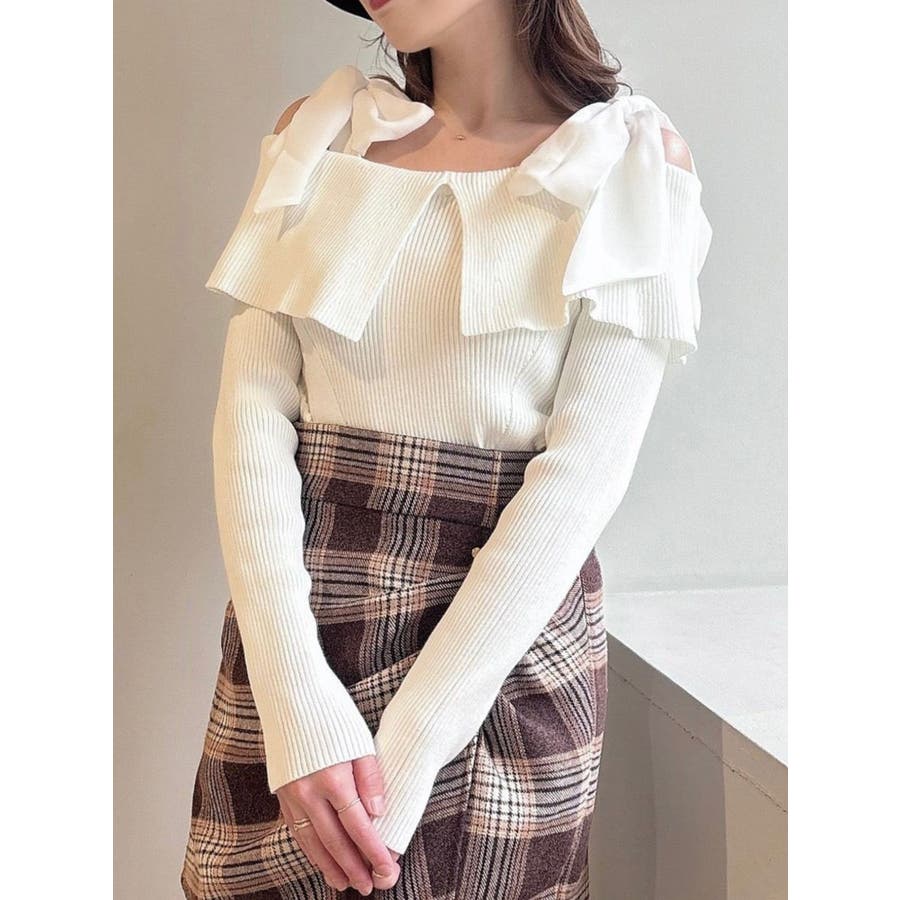 昨年も人気だったリボンニットが登場!▽デザイン▽ボリュームのあるシアー素材のショルダーリボンとオフショルニットのドッキングが可愛らしいトップス。ショルダーリボンは自分の好きな位置で結ぶことができます♪ビックカラーのオフショルでトレンドを取り入れ、肌見せもできて女性らしさUP◎▽カラー▽白・チャコールグレー・ピンクの3色展開。チャコールグレーはシアーとニットをバイカラーにしました。▽スタイリング▽スカートコーデ、パンツコーデどちらにもマッチする万能な1枚。ハイウエストボトムにインすることで上半身をコンパクトに見せバランスの取れたスタイリングになります。※着用画像はフラッシュの加減で実際の製品と色味等が異なる場合がございますので、生地のズームアップ画像をご確認ください。※ご利用の端末画面の設定により実際の商品と色味が異なる場合がございます。【商品特徴】透け感:なし伸縮性:あり生地の厚さ:普通サイズ感:普通裏地:なしポケット:なし
