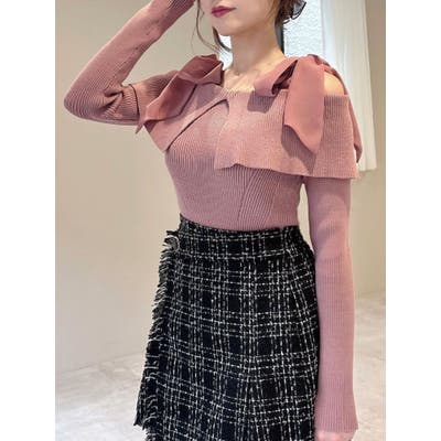 ボリュームリボンニットトップス