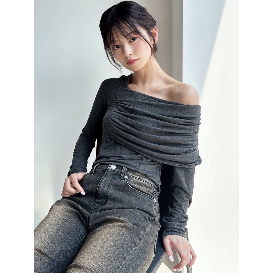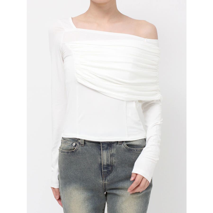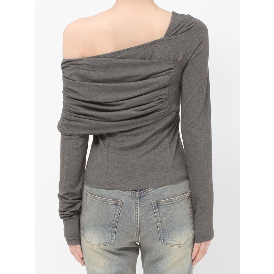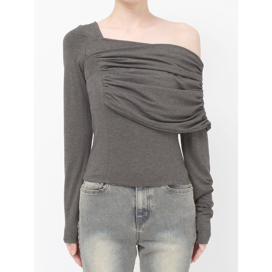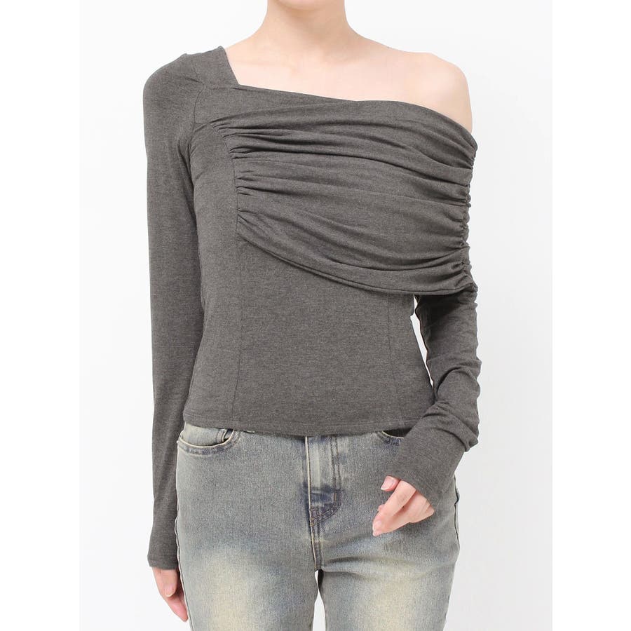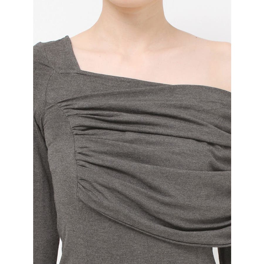 大人キレイ目スタイルにマストのトップス▽デザイン▽肌なじみが良く柔らかいカットソー素材のトップス。伸縮性にも優れ、身体にフィットし美しいシルエットに。オフショルダーのディテールとアシンメトリーデザインがエッジの効いた雰囲気になりキレイ目スタイルにピッタリ。薄手のカット素材なので秋口からロングシーズン着用できます。▽カラー▽白・黒・チャコールグレーの3色展開。▽スタイリング▽フレアスカートなどフェミニンなアイテムはもちろん、デニムパンツなどカジュアルアイテムとの合わせもおすすめです。薄手なトップスなので秋口や春先には1枚で、肌寒くなってきたら薄手のアウターのインナーとしても着用していただけます。※着用画像はフラッシュの加減で実際の製品と色味等が異なる場合がございますので、生地のズームアップ画像をご確認ください。※ご利用の端末画面の設定により実際の商品と色味が異なる場合がございます。【商品特徴】透け感(ホワイトのみ):あり透け感(その他カラー):なし伸縮性:あり生地の厚さ:薄手サイズ感: 普通裏地:なしポケット:なし