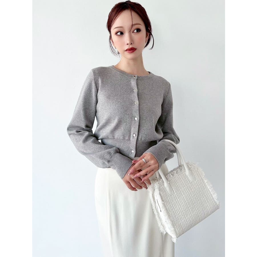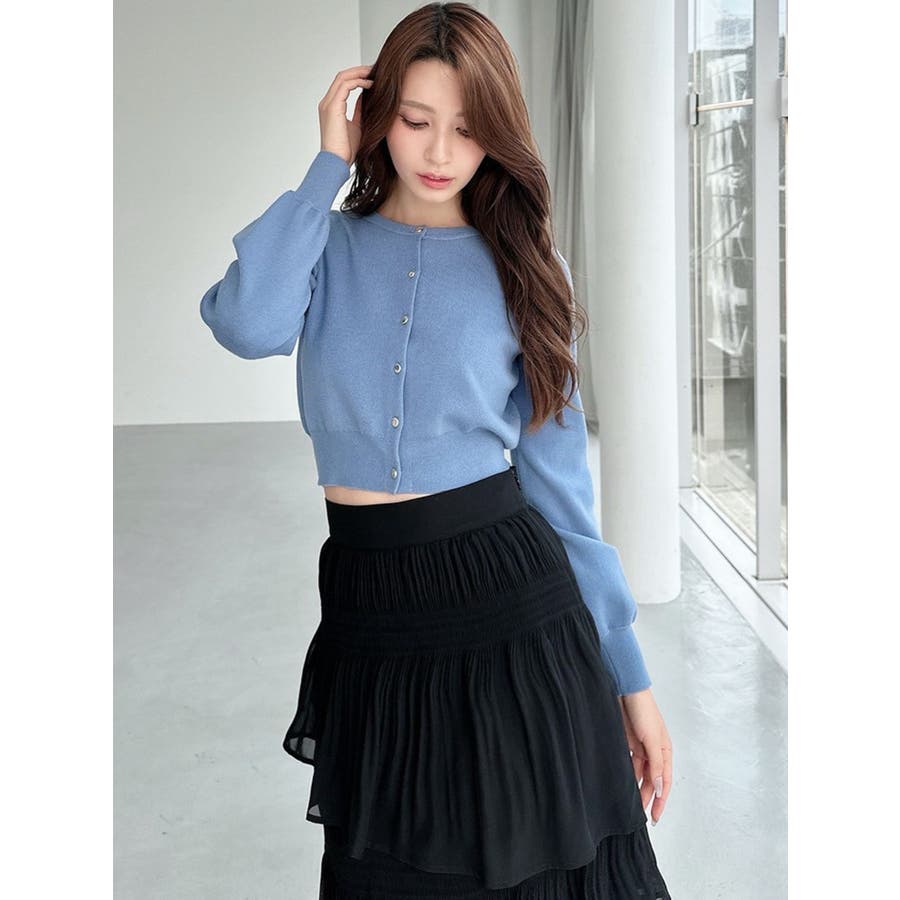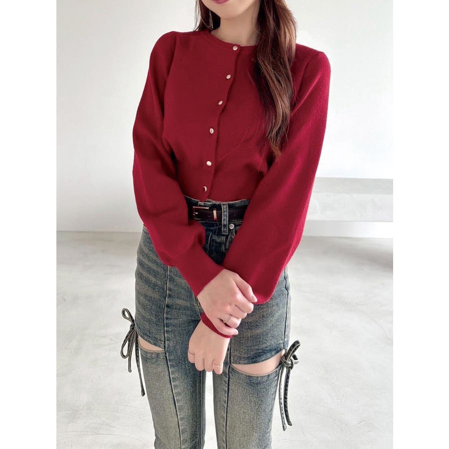 定番人気のカーディガンが秋も再登場!▽デザイン▽定番人気で1枚持っていると重宝するニットカーディガン。丁度良い厚みで肌寒い日にサラッと羽織るのにピッタリな1着。クルーネックとクロップド丈でどんなアイテムにも合わせやすく一気にトレンド感のあるスタイリングに仕上がります。フロントのボタンは小さめなゴールドボタンを付け上品さを出しました。裾はリブ切り替えにしたことでウエストラインはすっきりと、コンパクトなシルエットに仕上がるのがポイント◎▽カラー▽定番人気の黒・赤・ミックスと、今季は新色でグレー・青が登場!▽スタイリング▽トップスとしてもカーディガンとしても着用できる万能ニット。クロップド丈なのでハイウエストボトム合わせがおすすめ!キレイ目にもカジュアルにも着回しできるカーディガンです。普段使いはもちろん、オフィスコーデにもおすすめ♪※着用画像はフラッシュの加減で実際の製品と色味等が異なる場合がございますので、生地のズームアップ画像をご確認ください。※ご利用の端末画面の設定により実際の商品と色味が異なる場合がございます。【商品特徴】透け感:なし伸縮性:あり生地の厚さ:普通サイズ感:普通裏地:なしポケット:なし