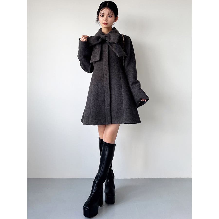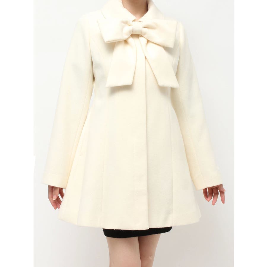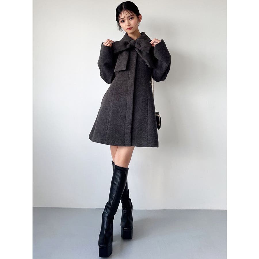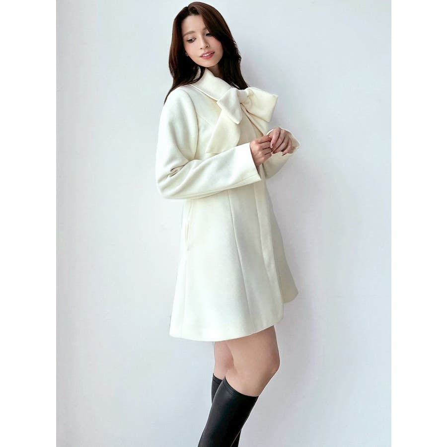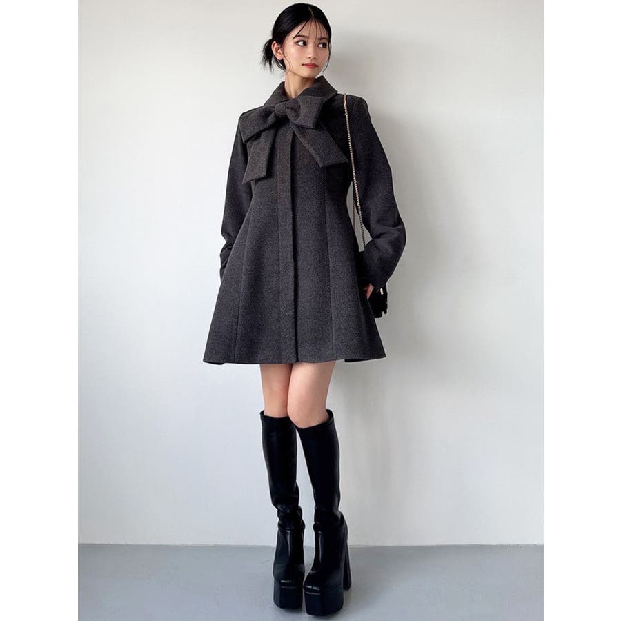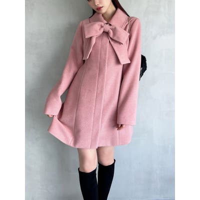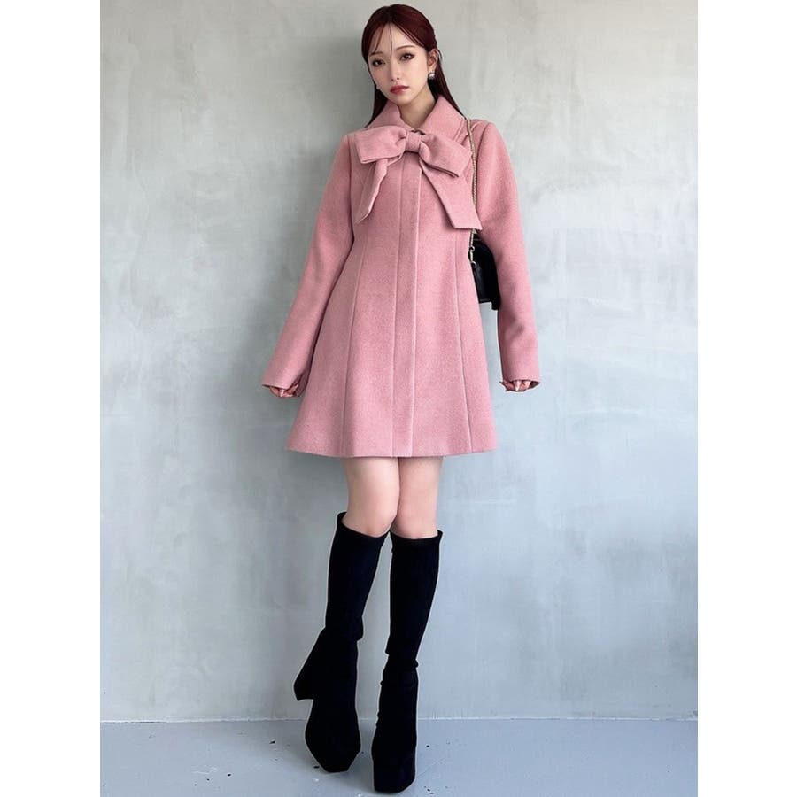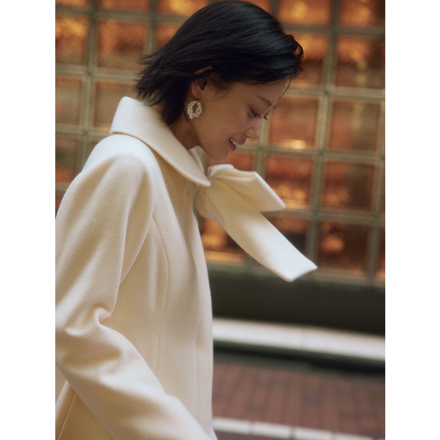 フロントのビッグリボンが目を惹くコート▽デザイン▽首元のビッグリボンで女性らしさUP♪他にないデザインで周りと差がつくキレイ目コートが登場。リボンはボタンで取り外し可能になっているので付けても外しても着用できる2WAY仕様に♪首元はしっかり閉じるので防寒も◎ミディ丈のコートでスタイリングをコンパクトにまとめます。前を閉じるだけでウエストラインが綺麗に出て、フレアミニワンピースのようなシルエットで着用できます。▽カラー▽白・チャコールグレー・ピンクの3色展開。▽スタイリング▽ミニ丈のワンピースやボトムを合わせてワンピース風に着るのがおすすめ◎リボンを取ればシンプルなコートなのでトレンドに左右されず長く着用いただけます。