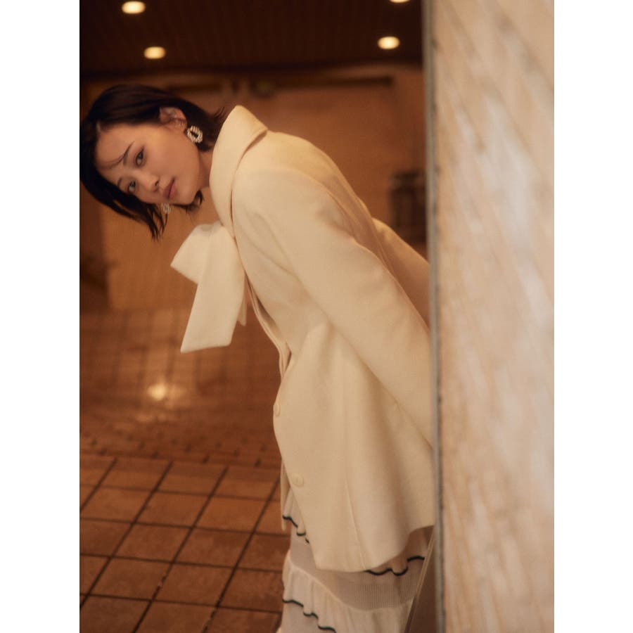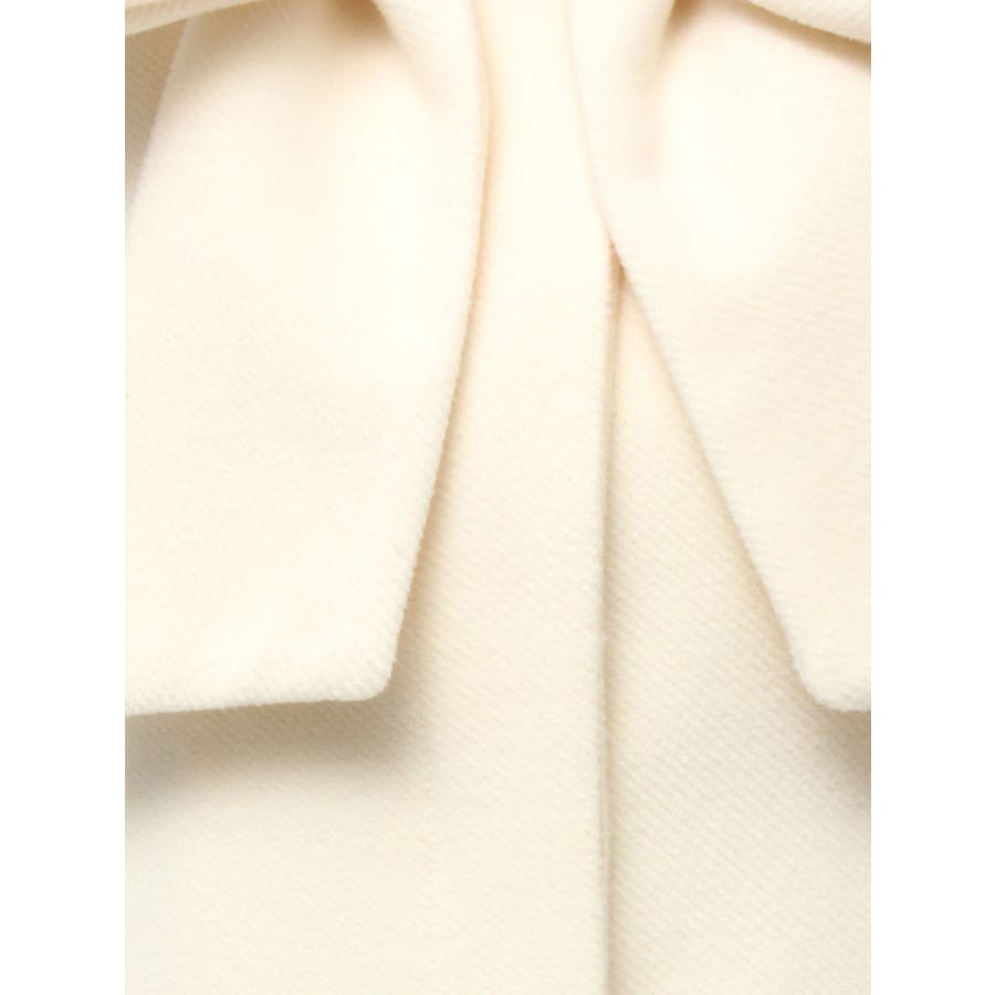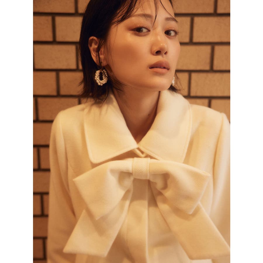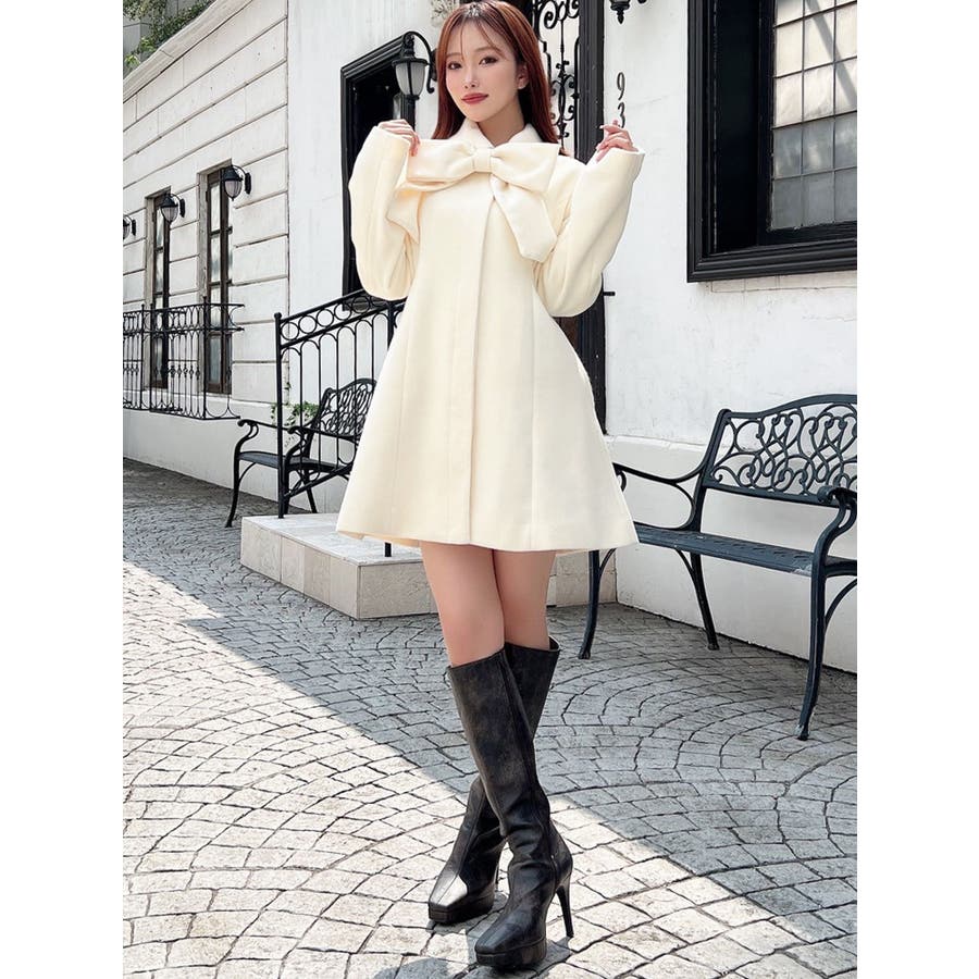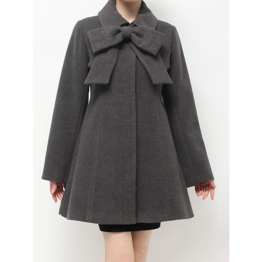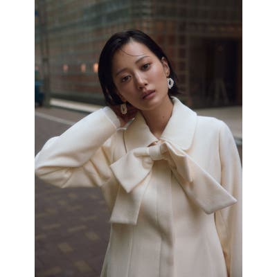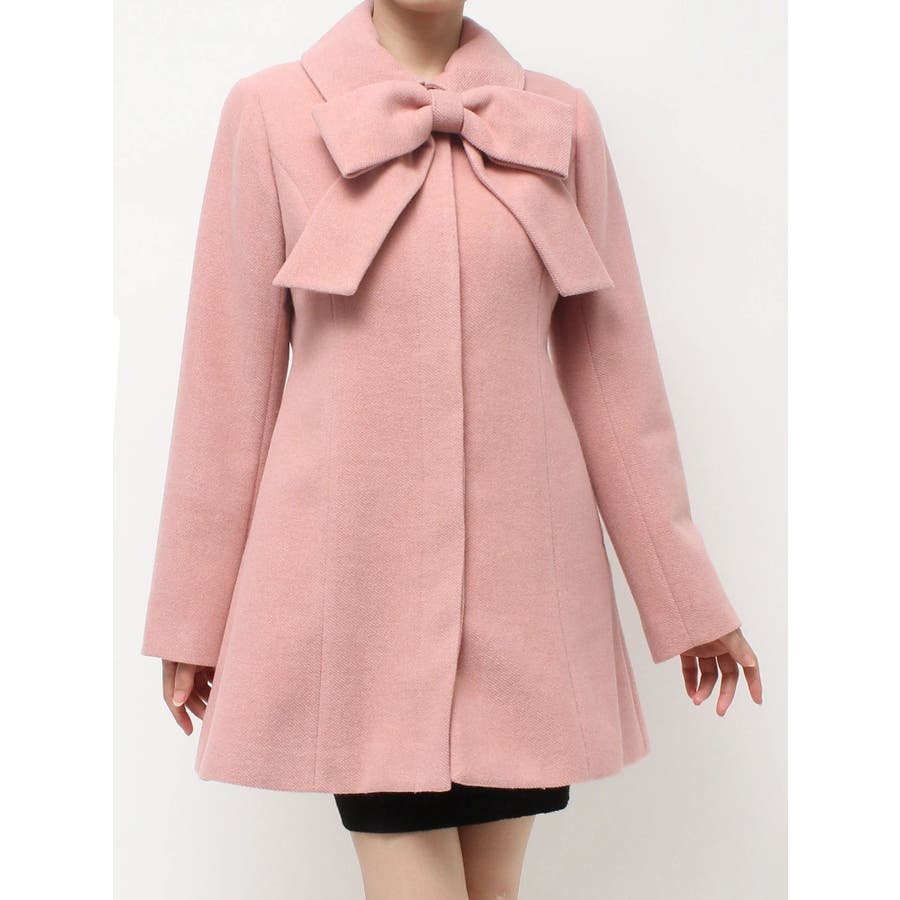 フロントのビッグリボンが目を惹くコート▽デザイン▽首元のビッグリボンで女性らしさUP♪他にないデザインで周りと差がつくキレイ目コートが登場。リボンはボタンで取り外し可能になっているので付けても外しても着用できる2WAY仕様に♪首元はしっかり閉じるので防寒も◎ミディ丈のコートでスタイリングをコンパクトにまとめます。前を閉じるだけでウエストラインが綺麗に出て、フレアミニワンピースのようなシルエットで着用できます。▽カラー▽白・チャコールグレー・ピンクの3色展開。▽スタイリング▽ミニ丈のワンピースやボトムを合わせてワンピース風に着るのがおすすめ◎リボンを取ればシンプルなコートなのでトレンドに左右されず長く着用いただけます。
