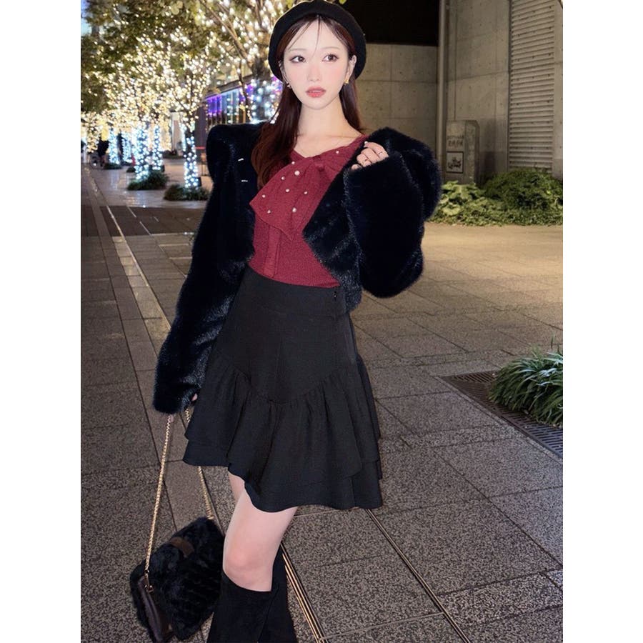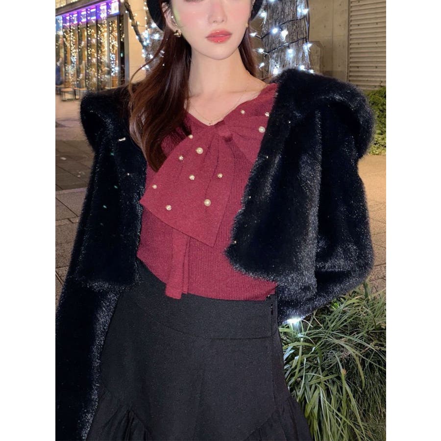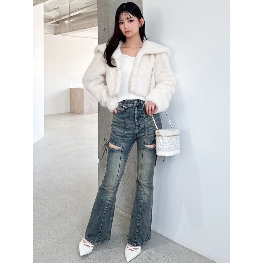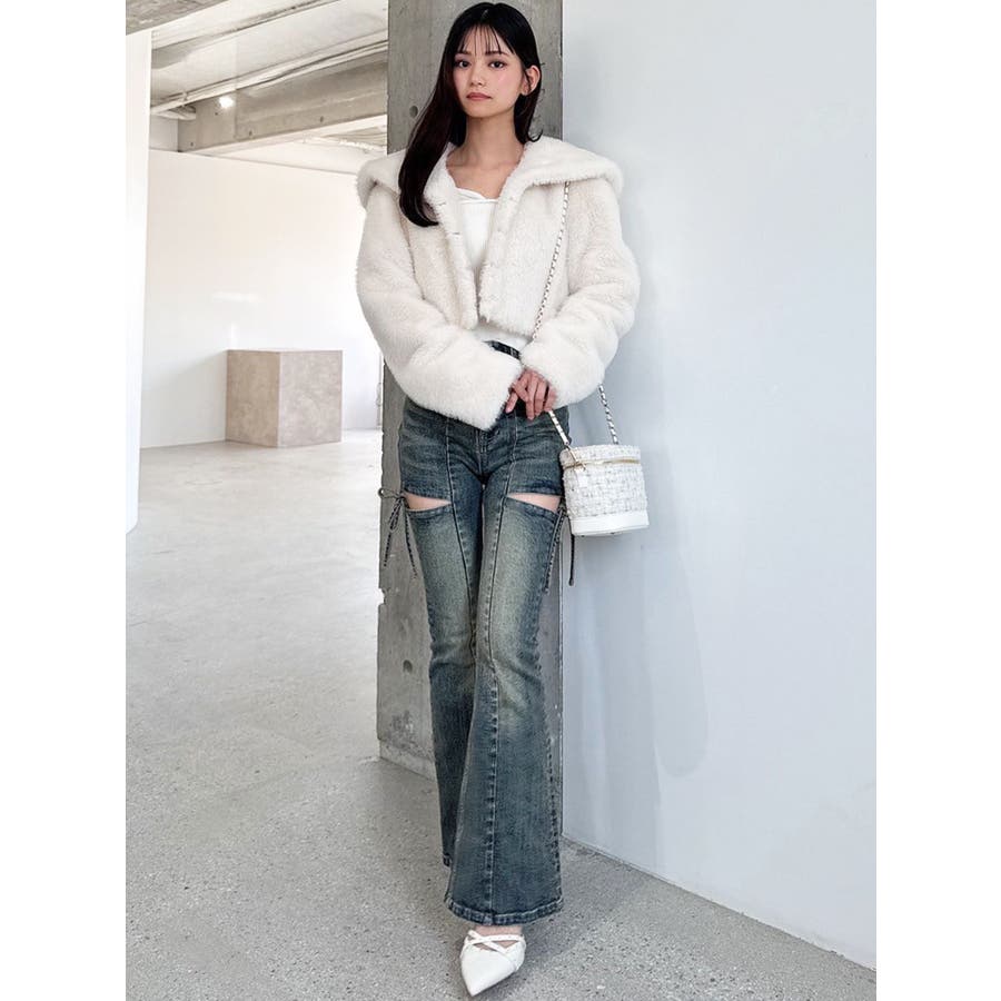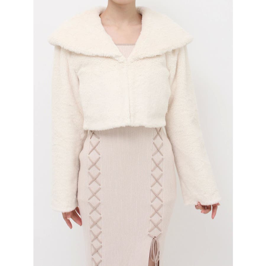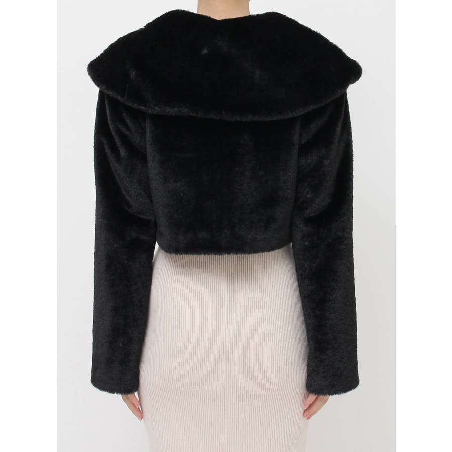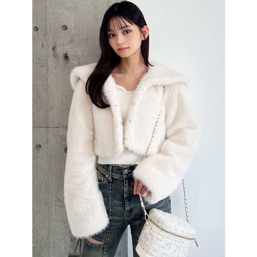 高級感のあるフェイクファーブルゾン▽デザイン▽柔らかい風合いのフェイクファーを使用したファーブルゾン。セーラー衿で顔周りにボリュームが出て華やかな印象に見せてくれます♪クロップド丈にしたので羽織るだけでスタイルアップ効果抜群。サラッと羽織るだけで高見えするアウターです。▽カラー▽白・黒の2色展開。▽スタイリング▽コンパクトな着丈なのでワンピースからトップス×ボトムスまでどんなスタイリングにもマッチします。トレンドに左右されないデザインで長くお使いいただけます。※着用画像はフラッシュの加減で実際の製品と色味等が異なる場合がございますので、生地のズームアップ画像をご確認ください。※ご利用の端末画面の設定により実際の商品と色味が異なる場合がございます。【商品特徴】透け感:なし伸縮性:なし生地の厚さ:普通サイズ感:普通裏地:ありポケット:あり(前)