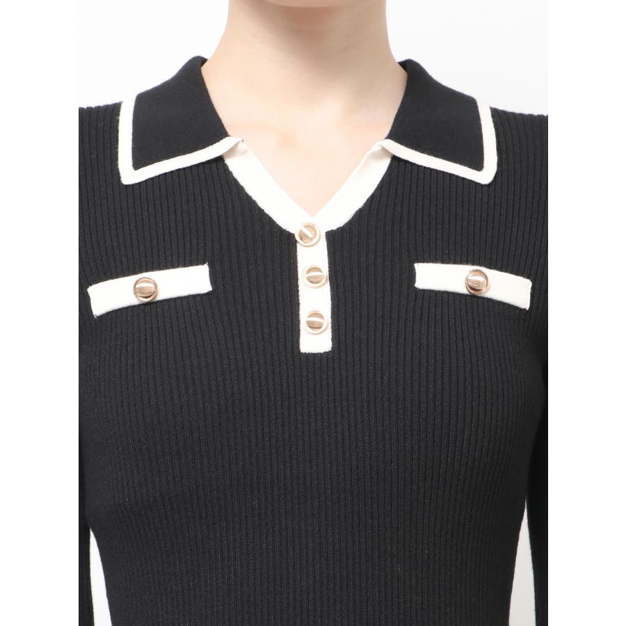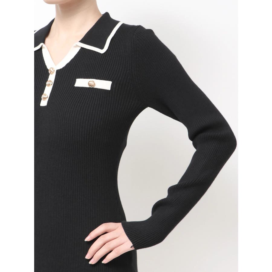 バイカラーニットポロワンピース