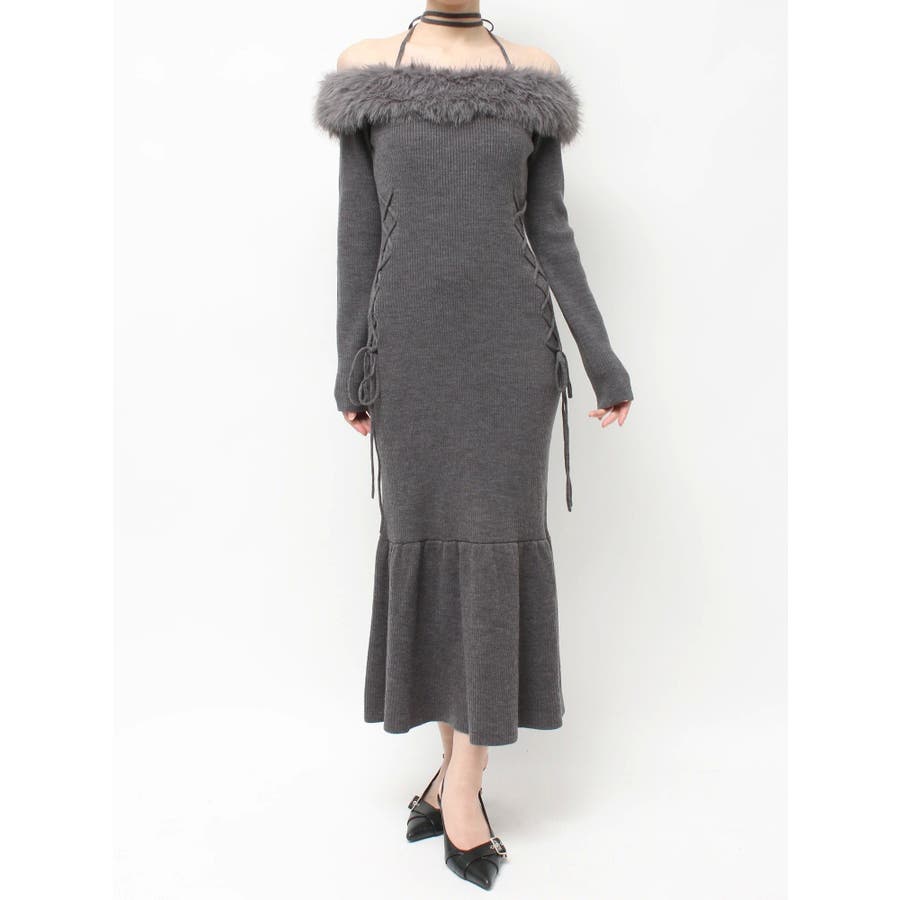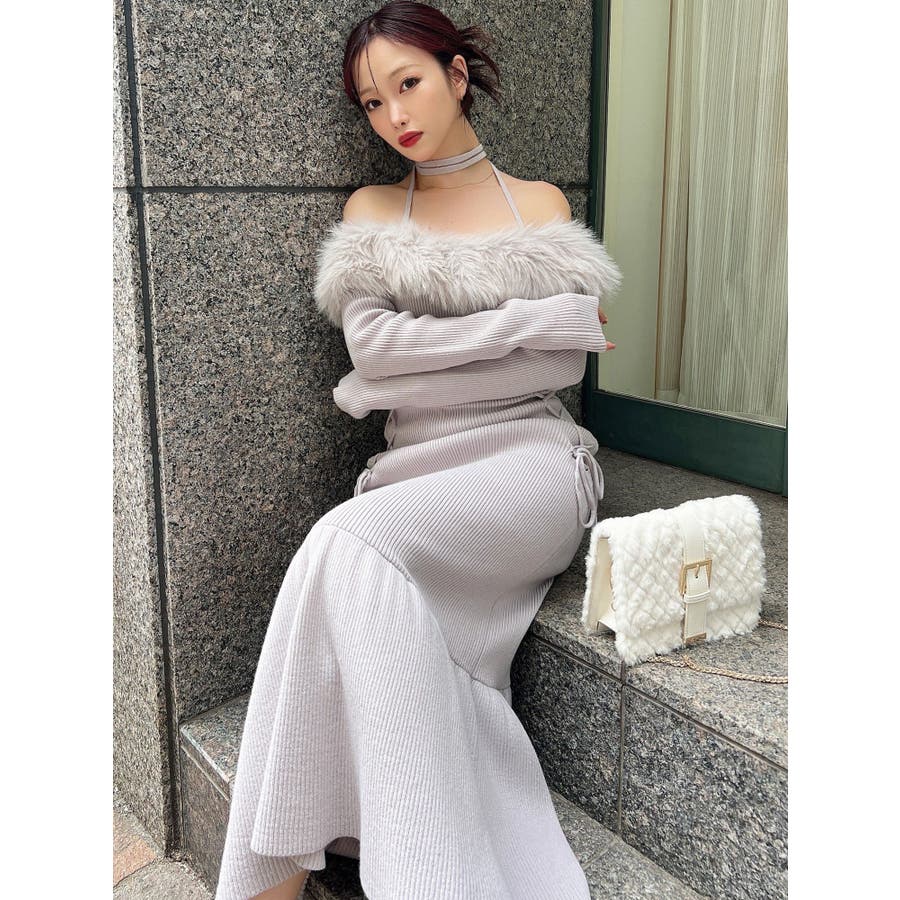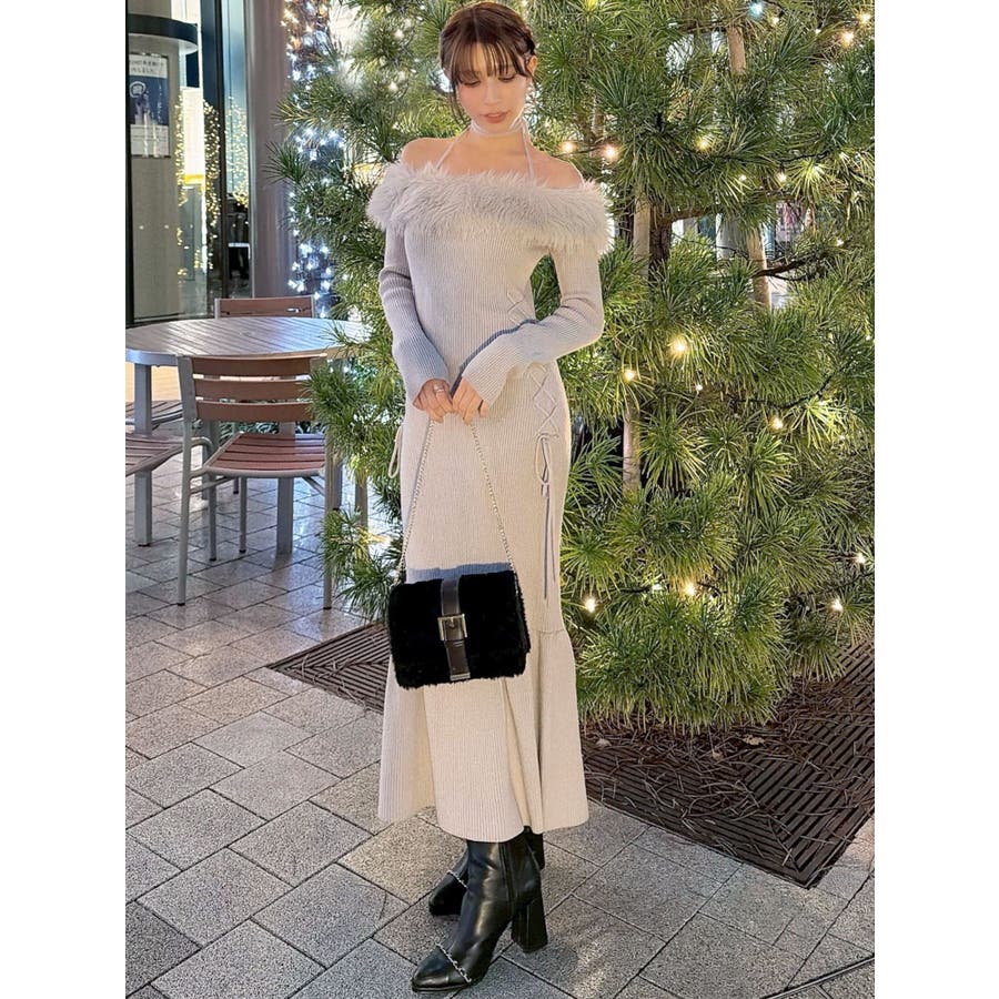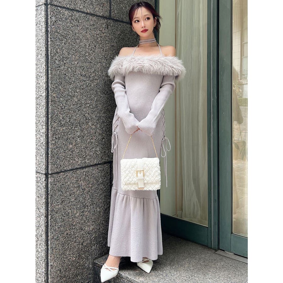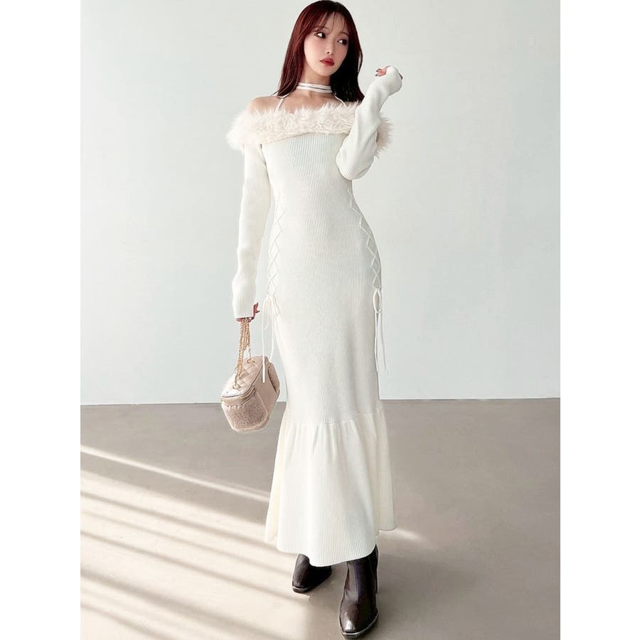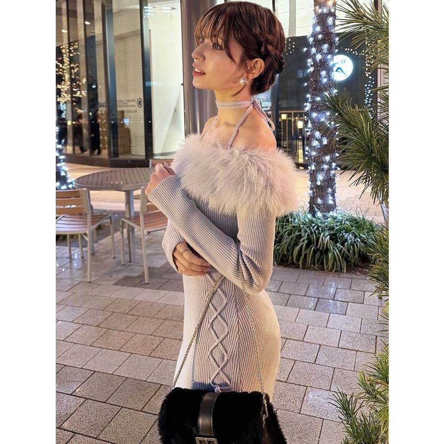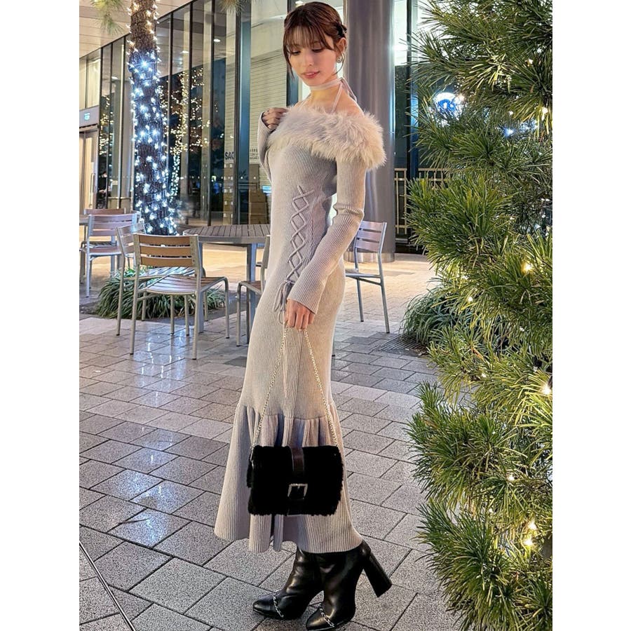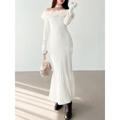 フェイクファートリムニットワンピース