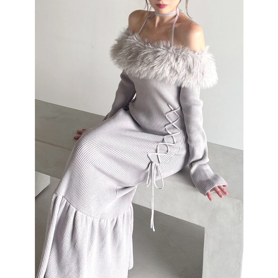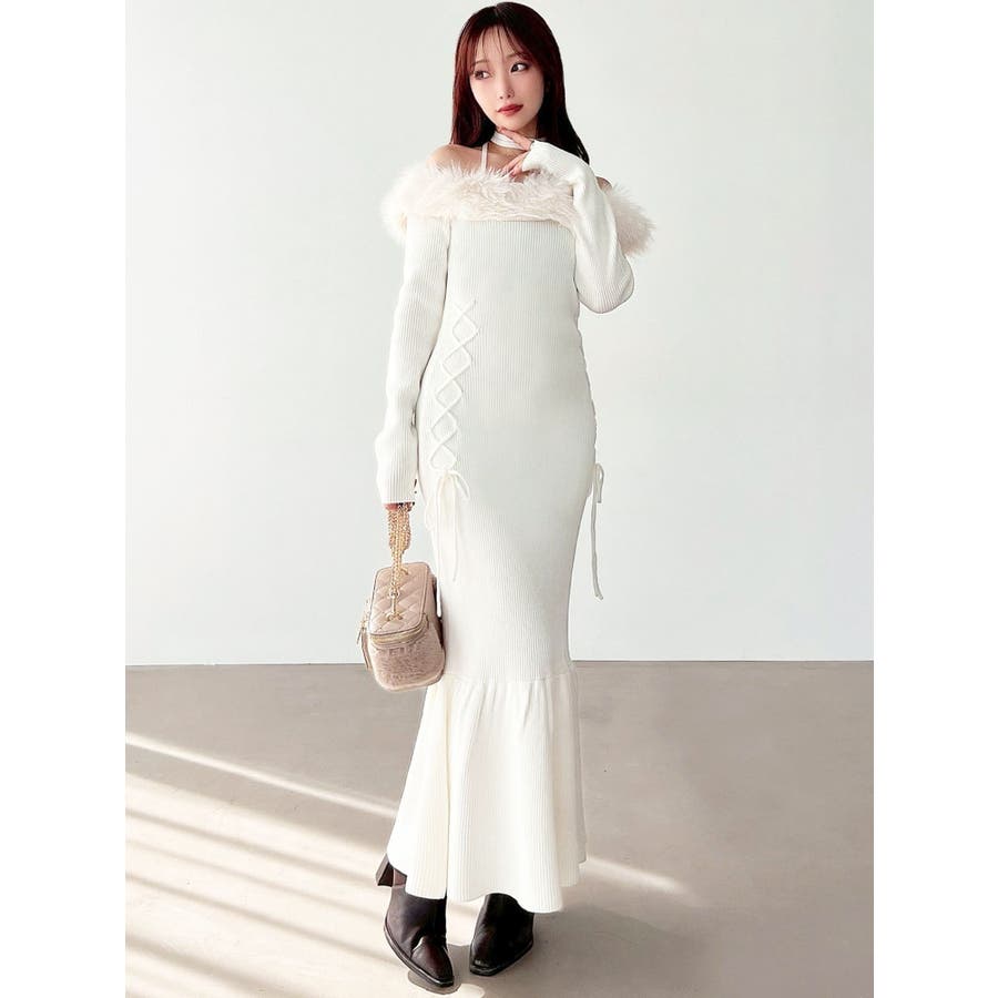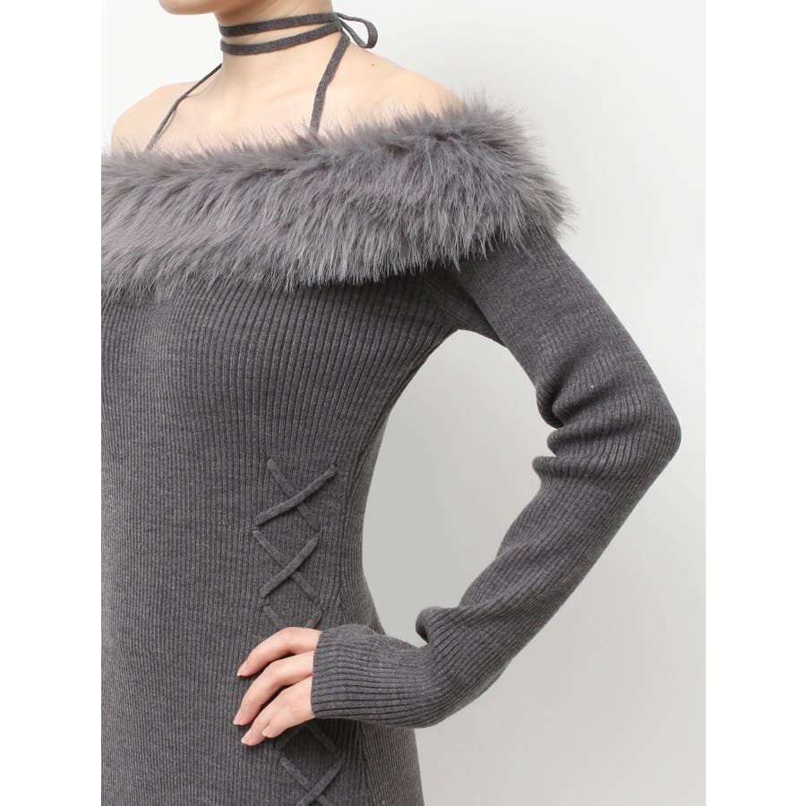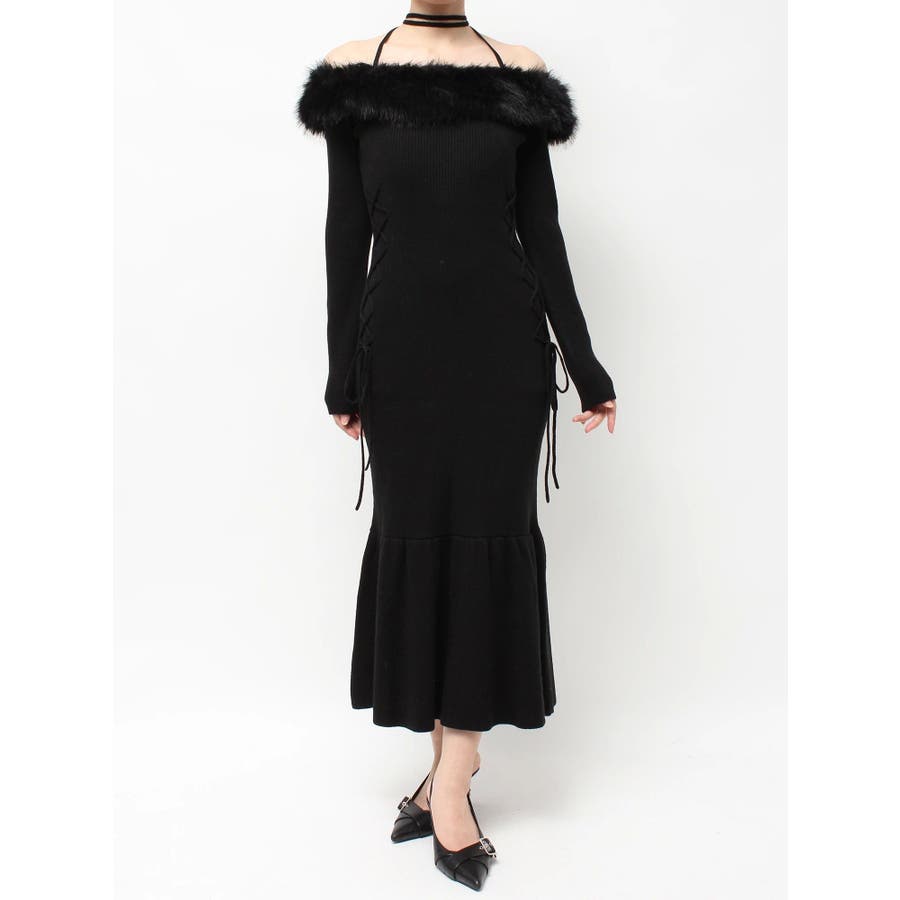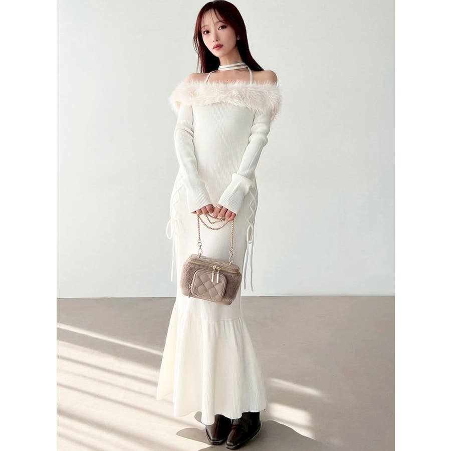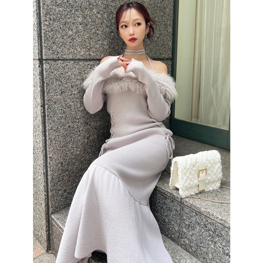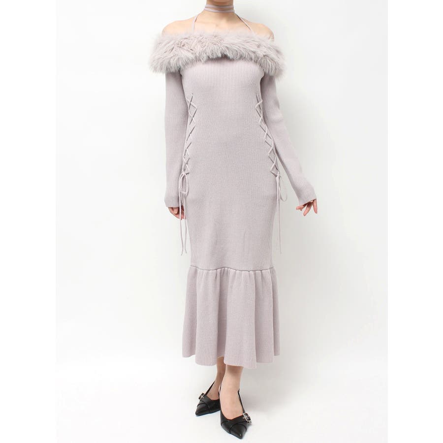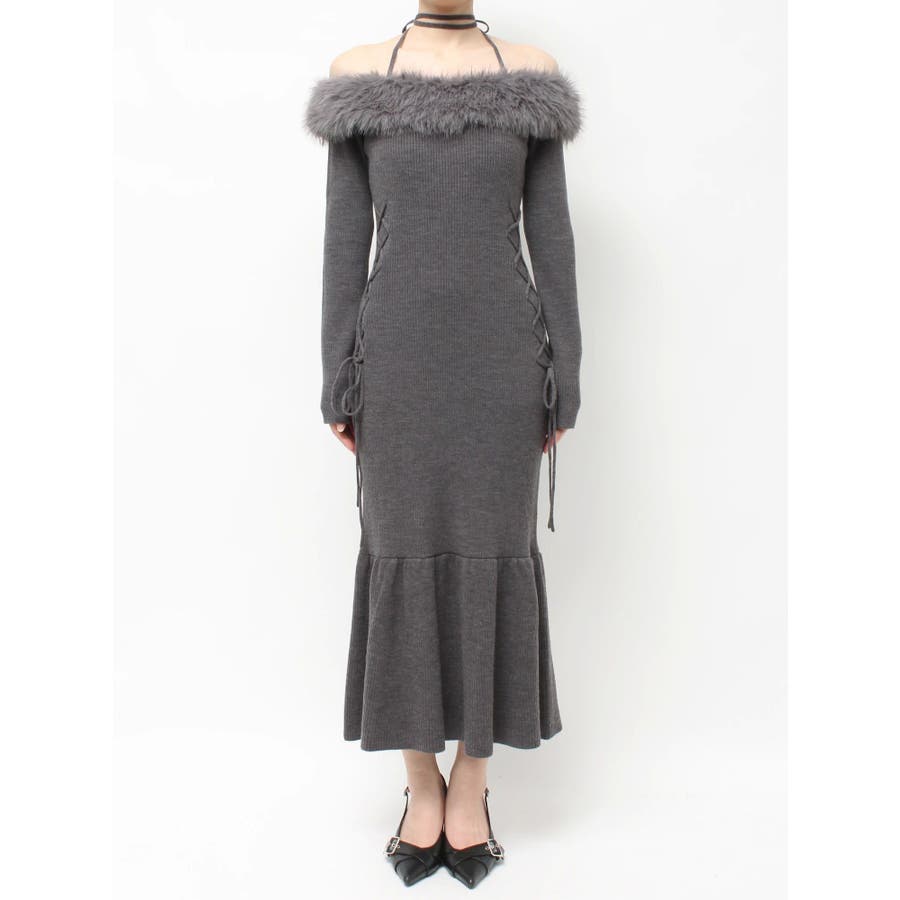 フェイクファートリムニットワンピース