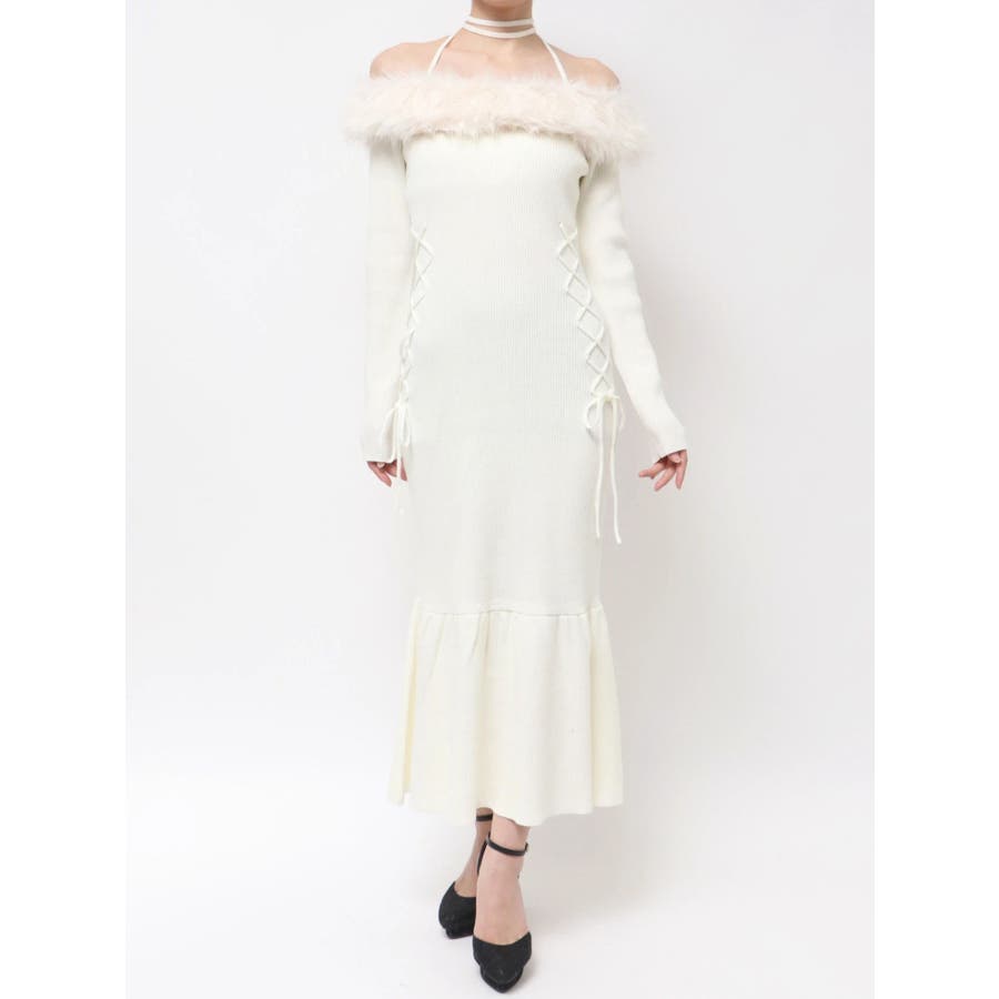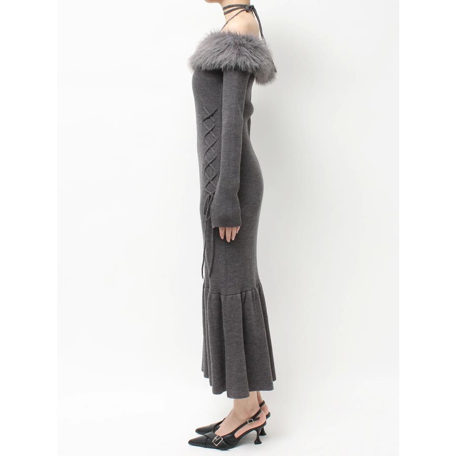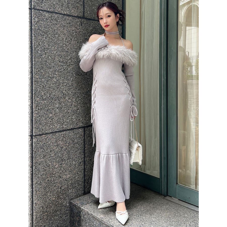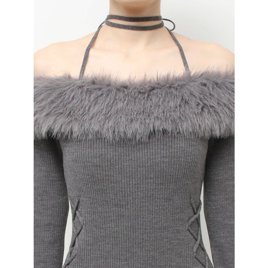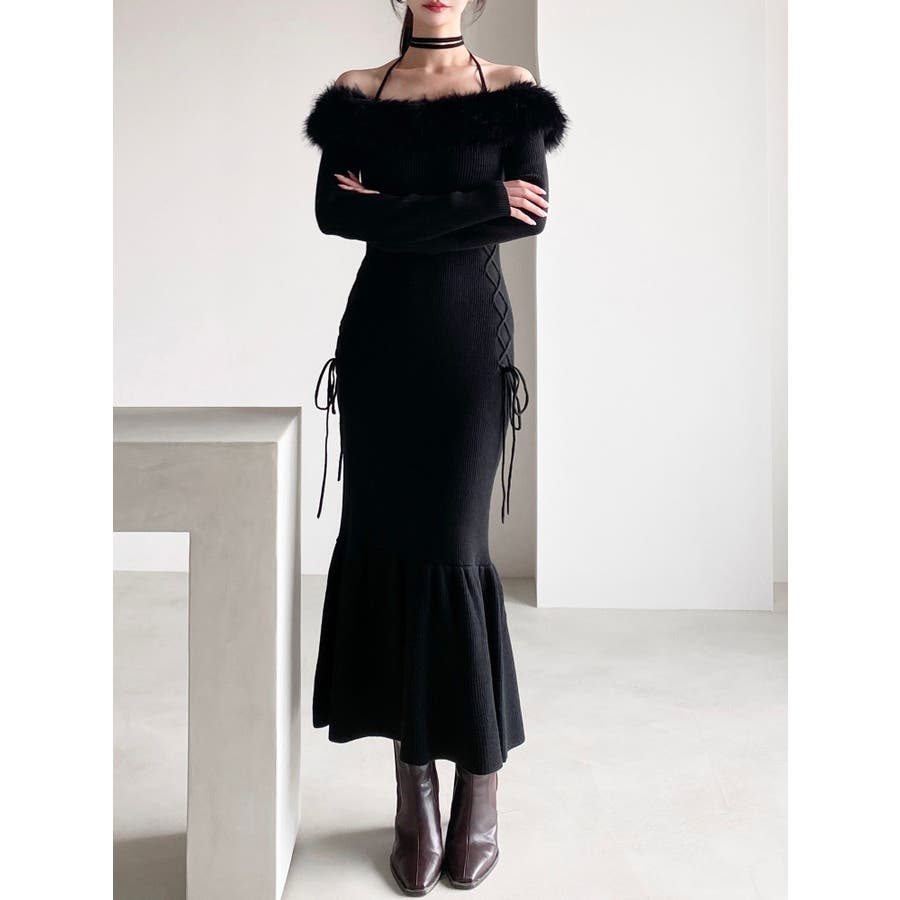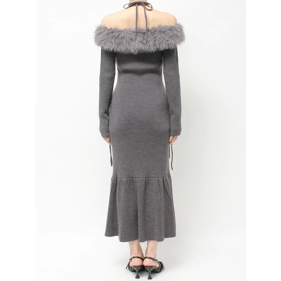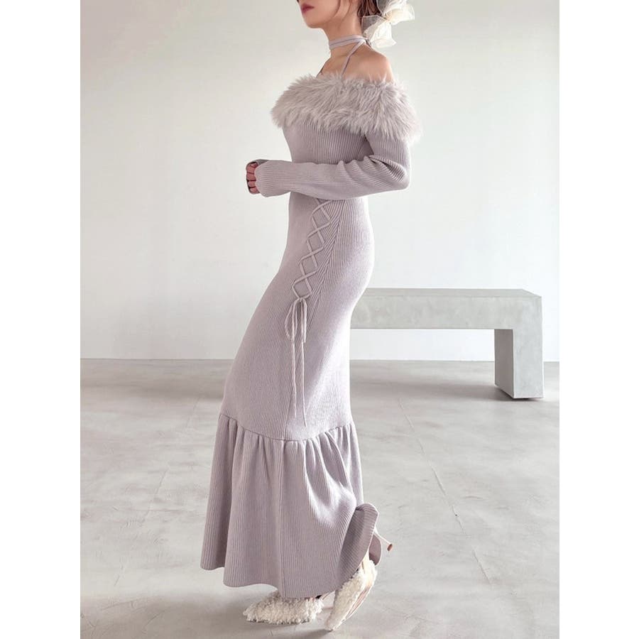 フェイクファートリムニットワンピース