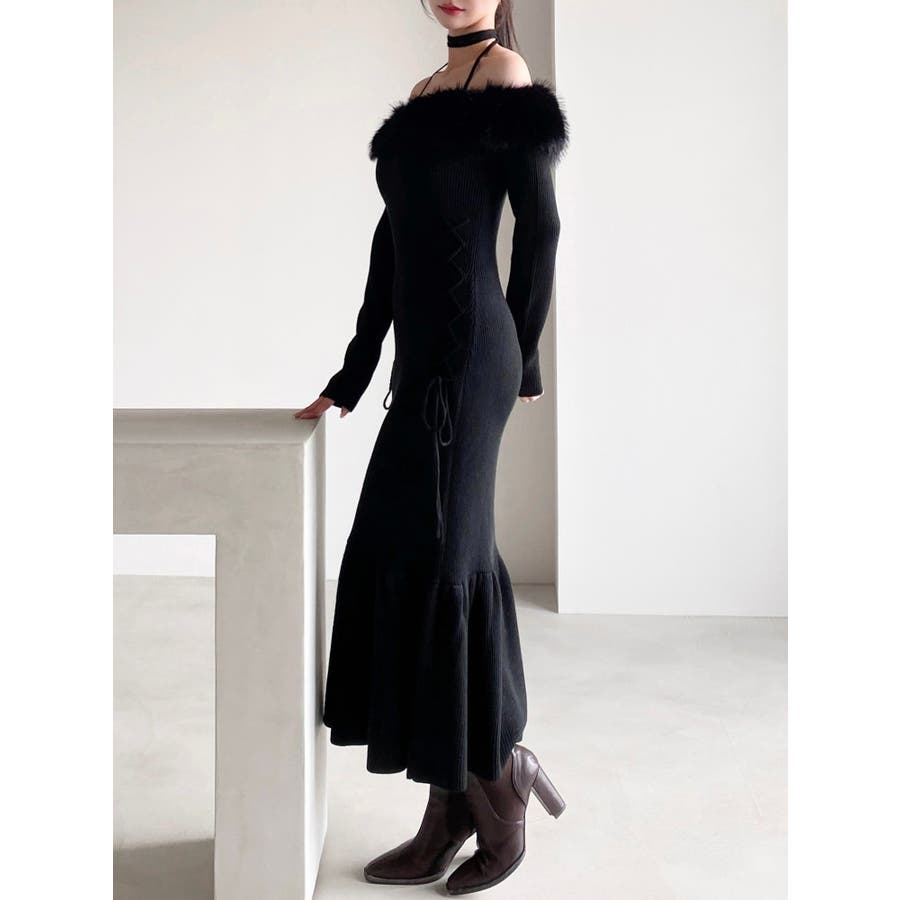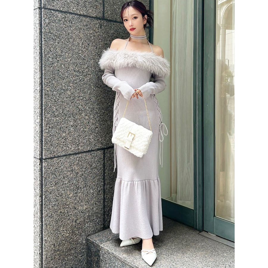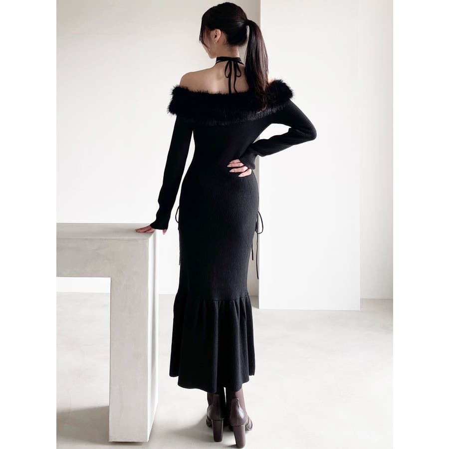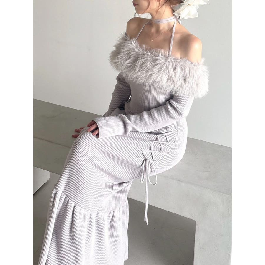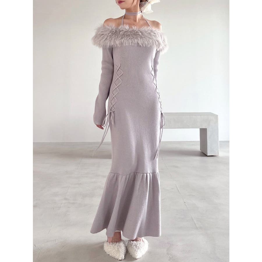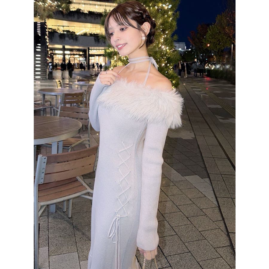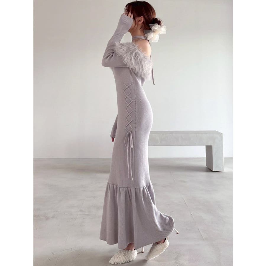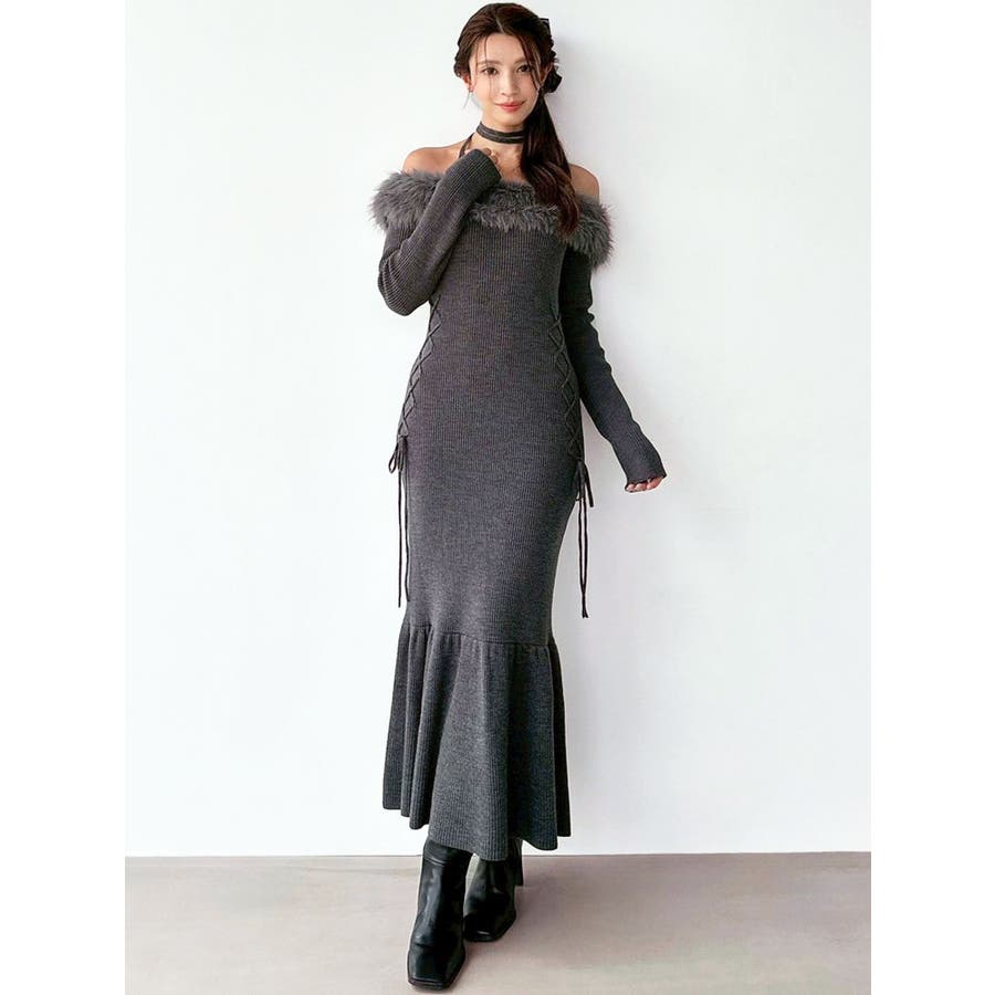 フェイクファートリムニットワンピース