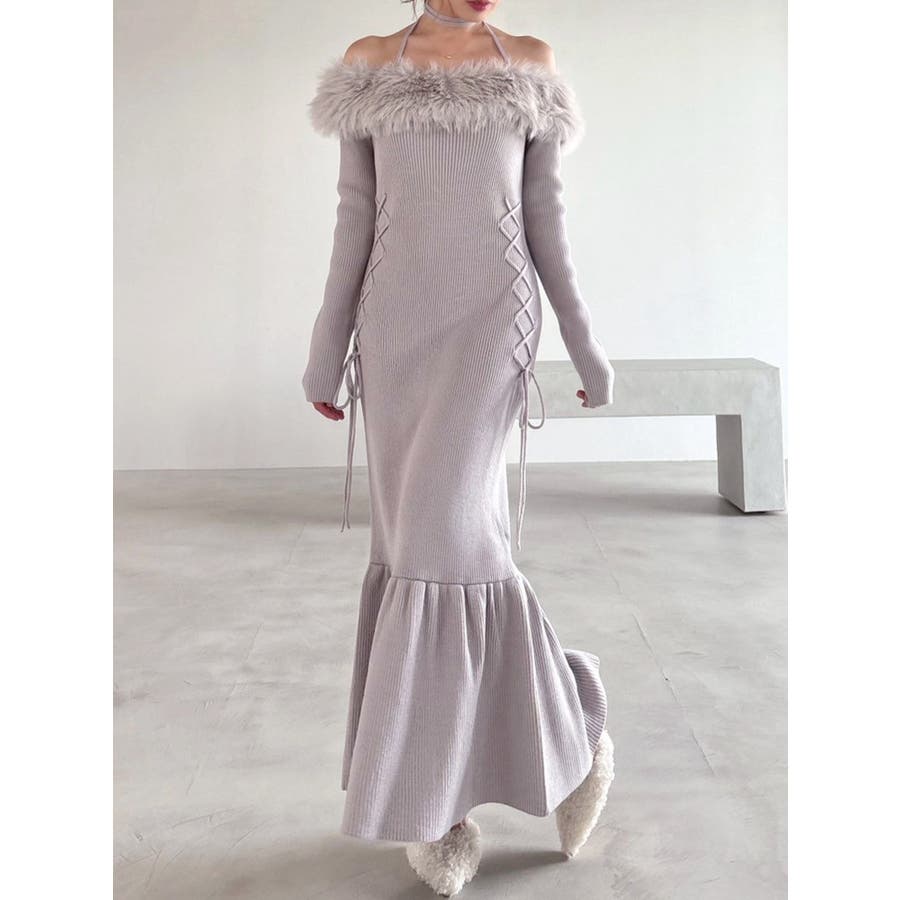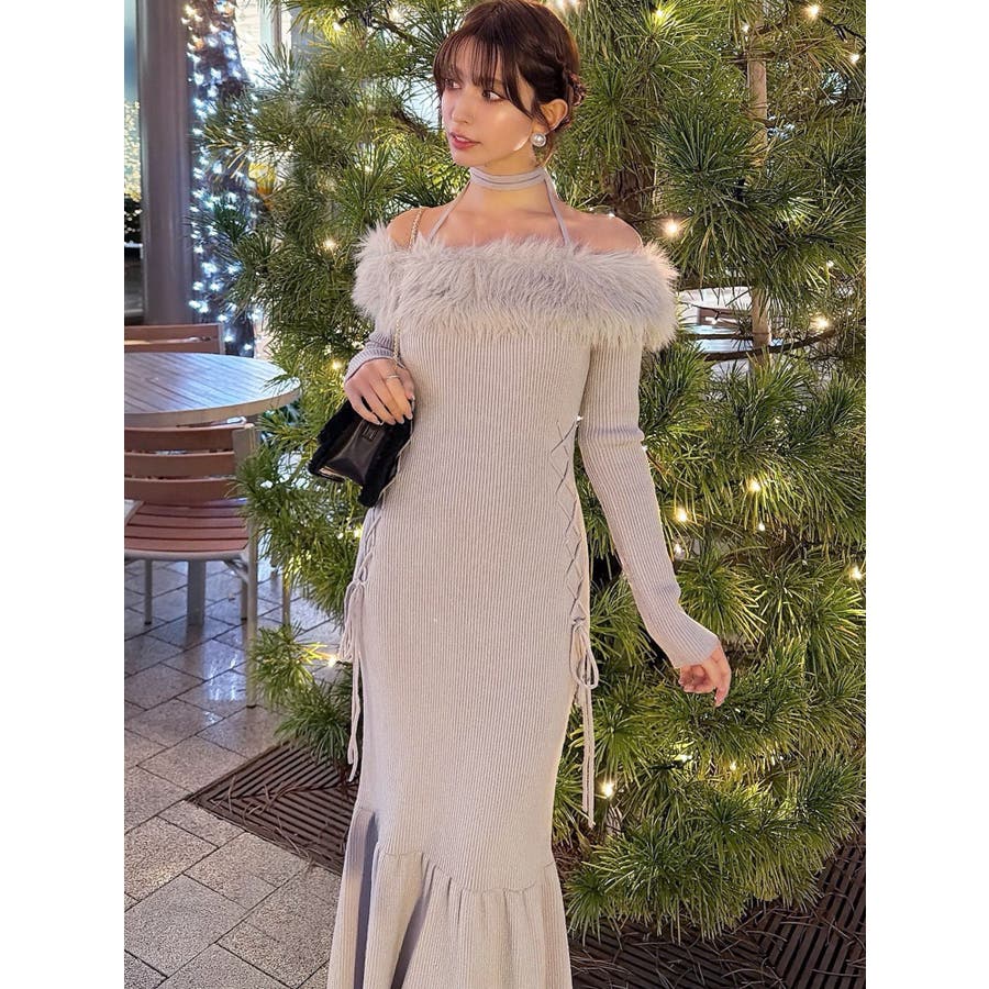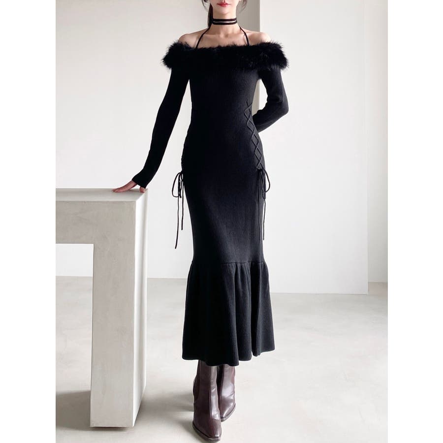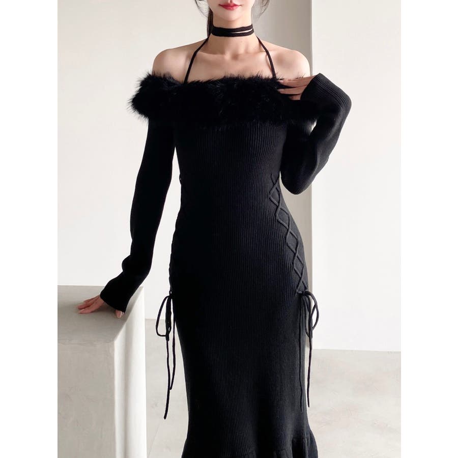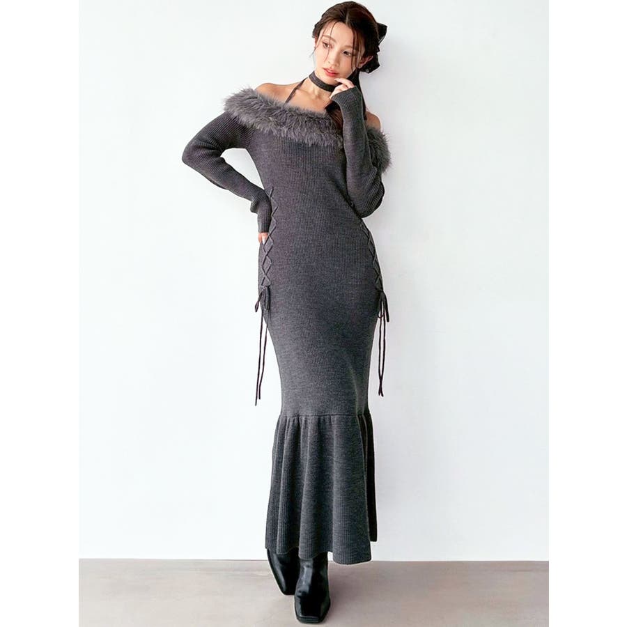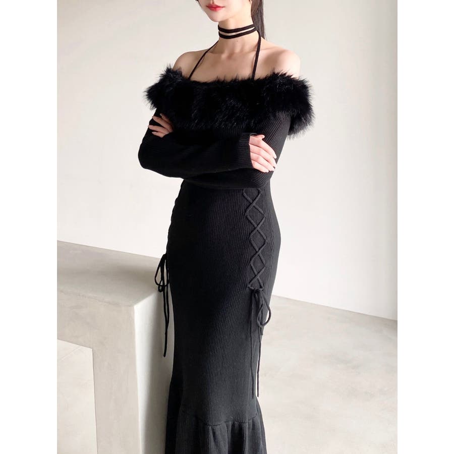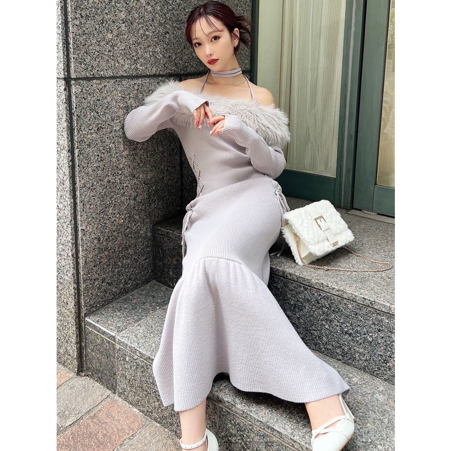 フェイクファートリムニットワンピース