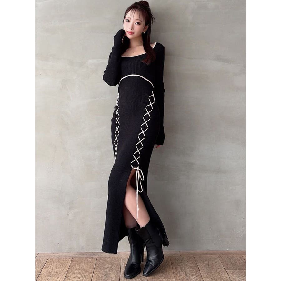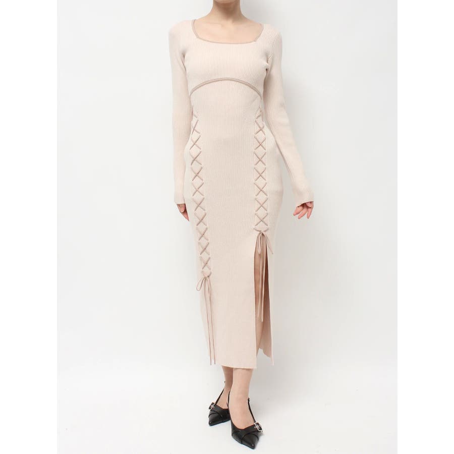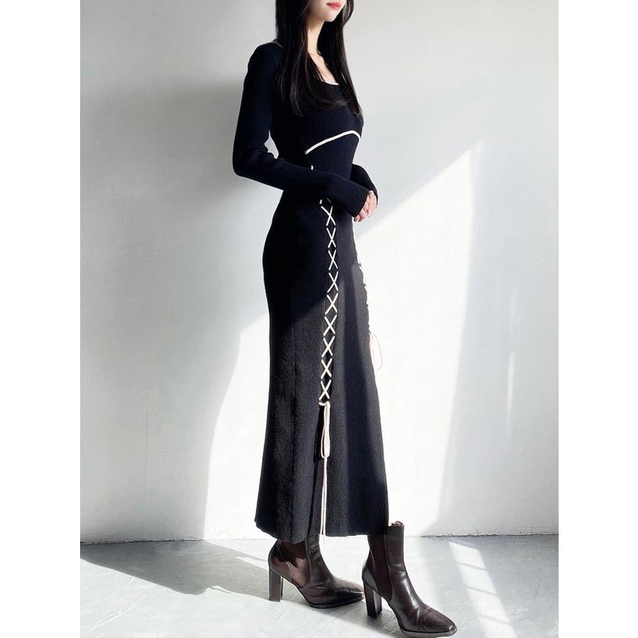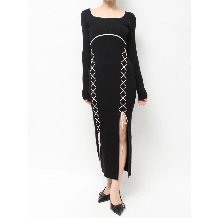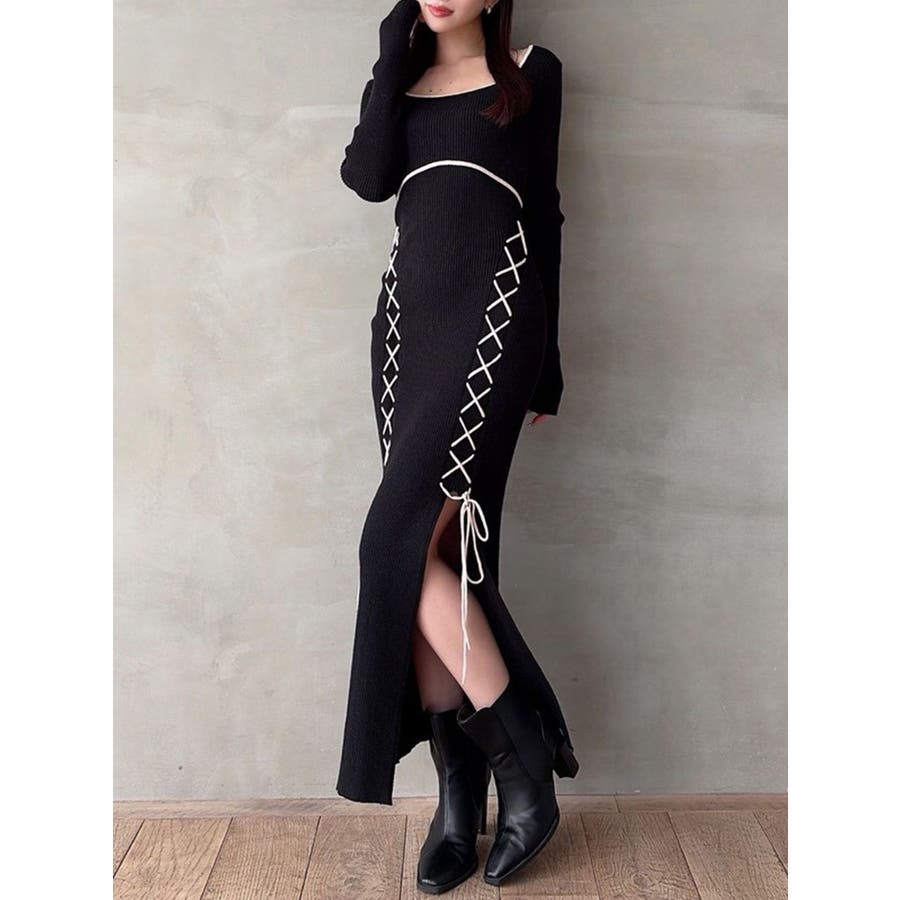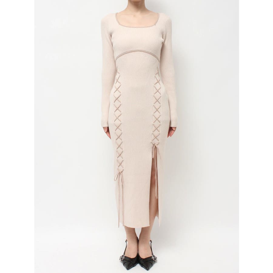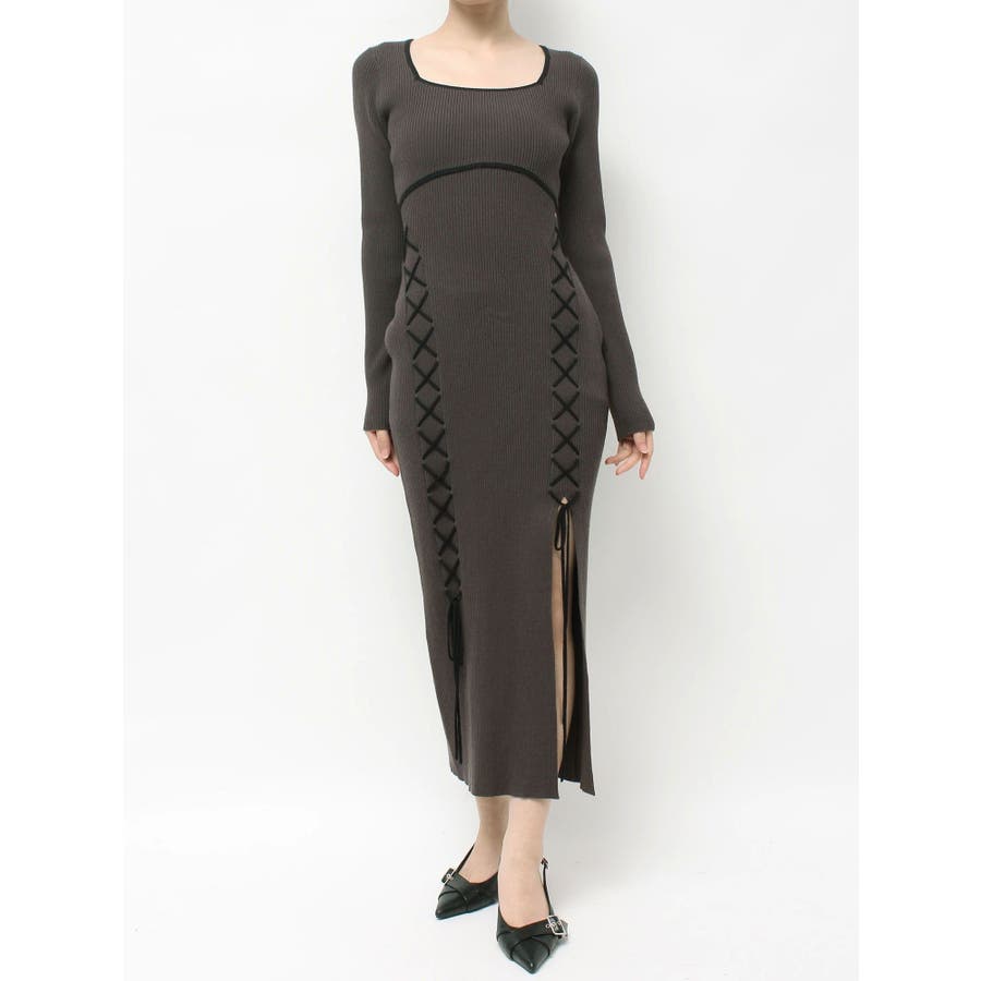 レースアップタイトニットワンピース