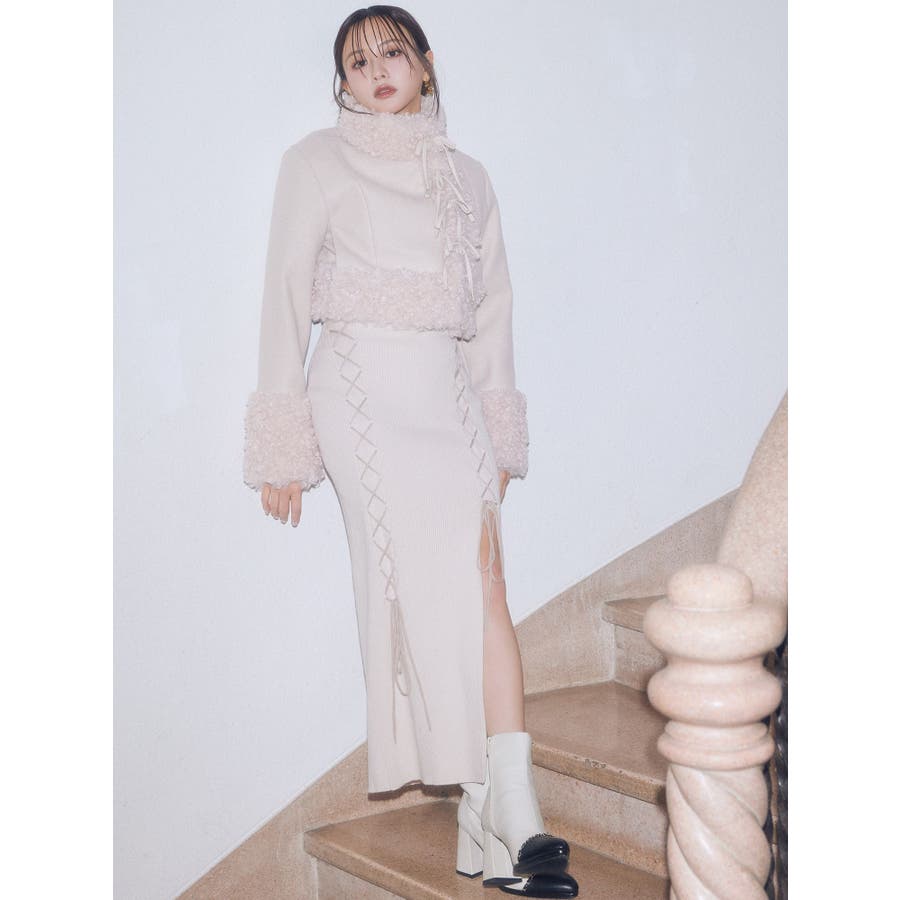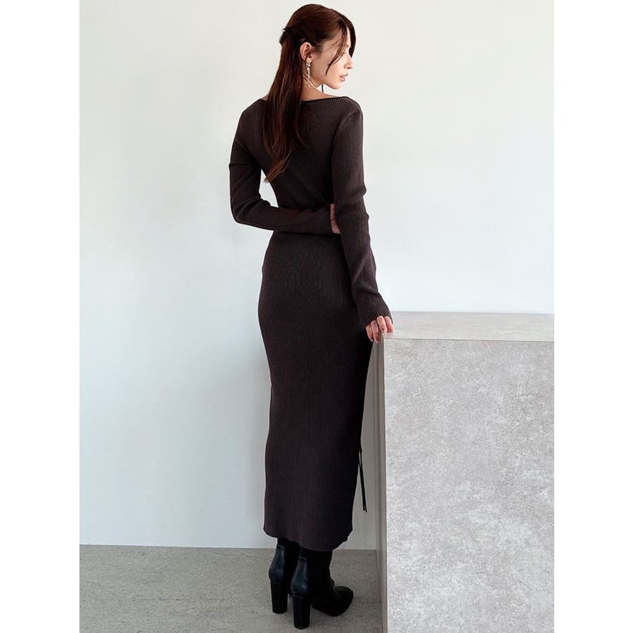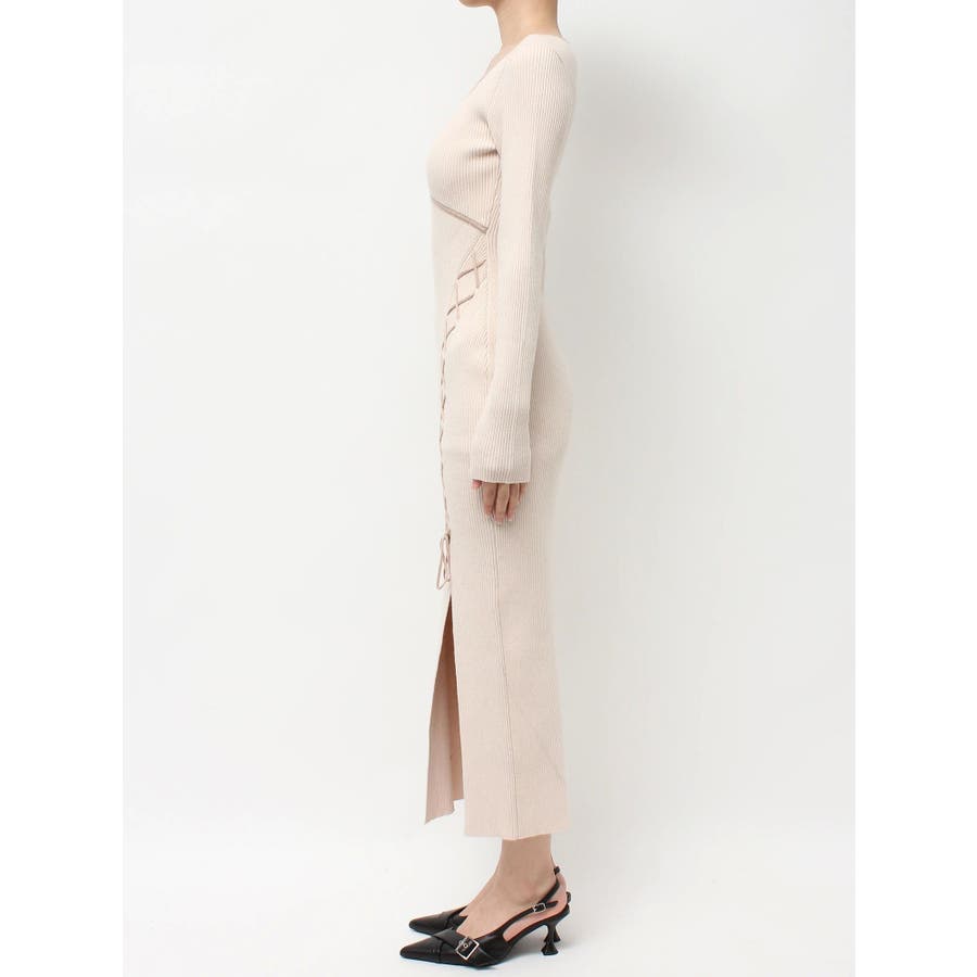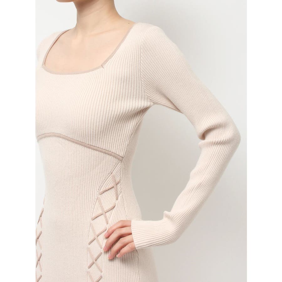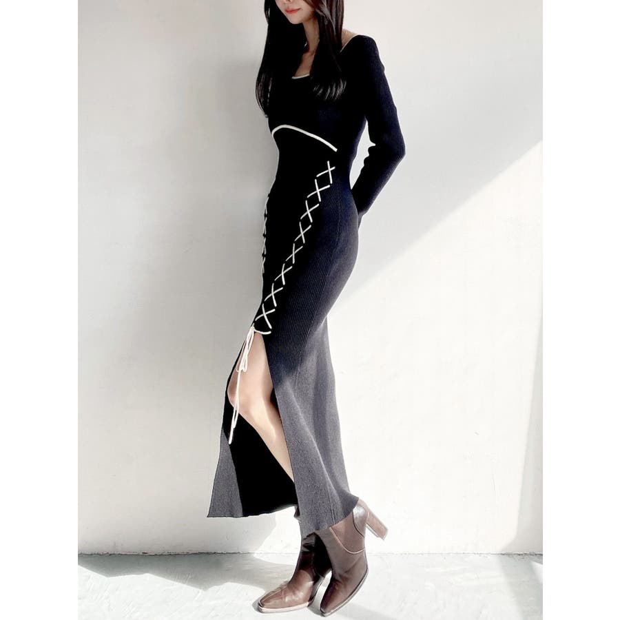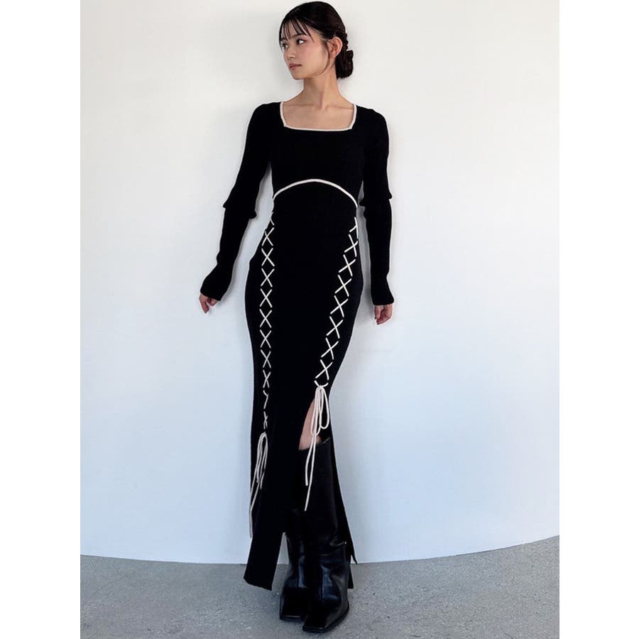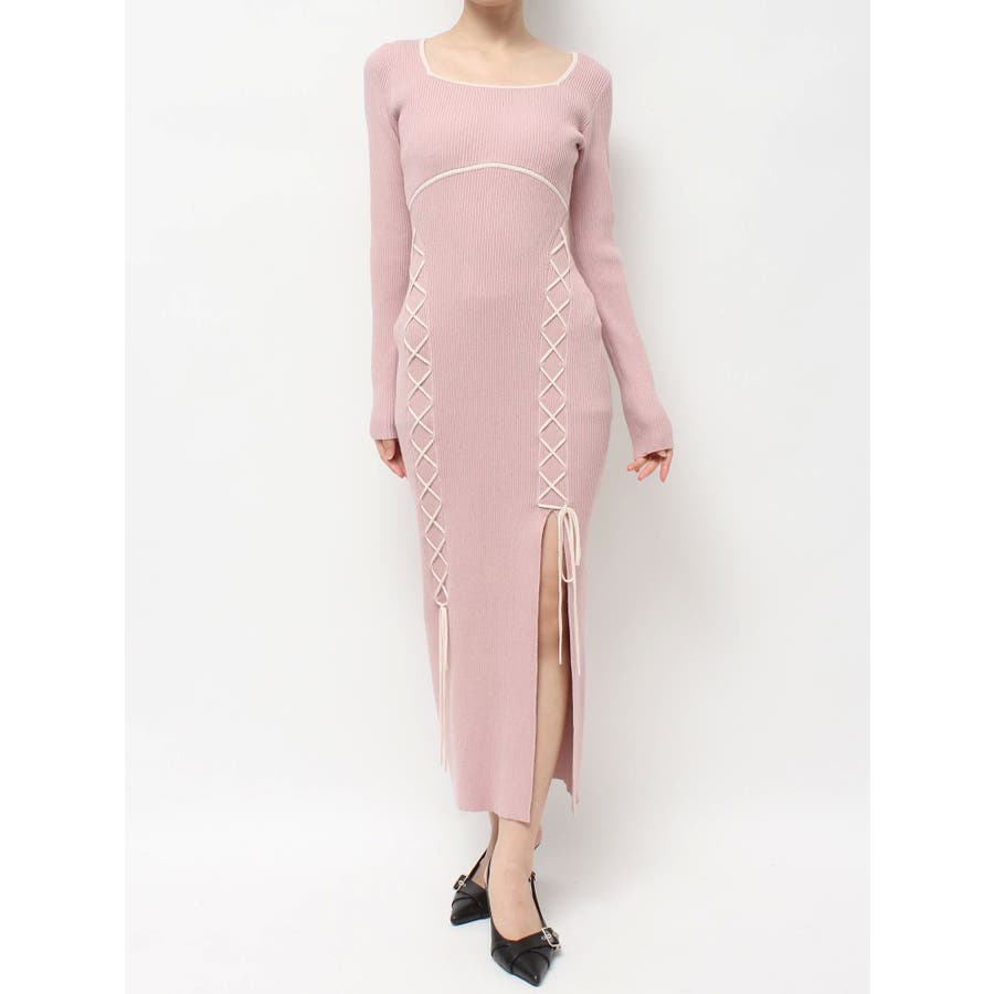 レースアップタイトニットワンピース
