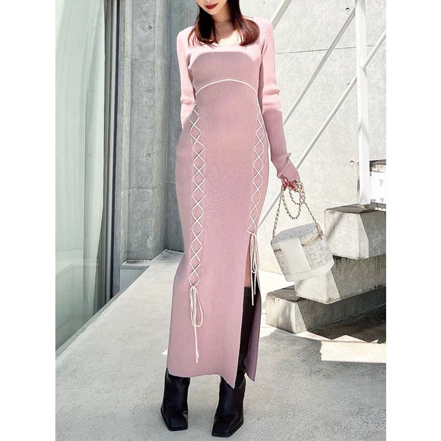 レースアップデザインが可愛いイチオシワンピース▽デザイン▽ウエストのカーブ切り替えでスタイルアップ効果のあるデザインに。ウエスト下からレースアップを施しデザイン性をプラスしました♪リブ編みのニットワンピなのでストレッチも抜群でタイトシルエットながらストレスフリーで着用できます♪デコルテはすっきりと開け抜け感をプラス。▽カラー▽白・黒・チャコールグレー・ピンクの4色展開。▽スタイリング▽1枚で女性らしいキレイ目コーデが完成。タイトシルエットなのでアウターも合わせやすく、デイリーからデートシーンまで活躍します。※着用画像はフラッシュの加減で実際の製品と色味等が異なる場合がございますので、生地のズームアップ画像をご確認ください。※ご利用の端末画面の設定により実際の商品と色味が異なる場合がございます。【商品特徴】透け感:なし伸縮性:あり生地の厚さ:普通サイズ感:細身裏地:なしポケット:なしファスナー:なし