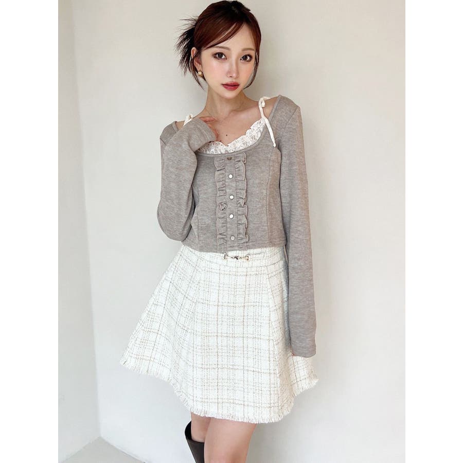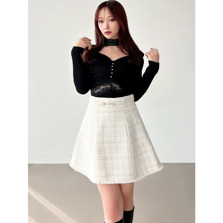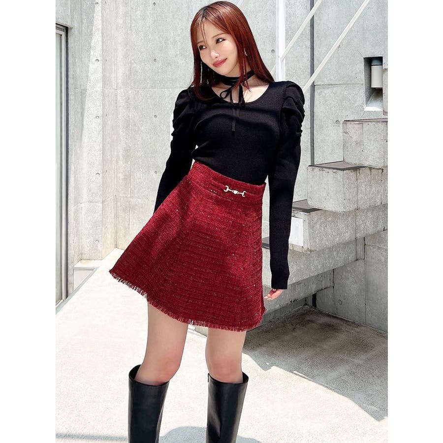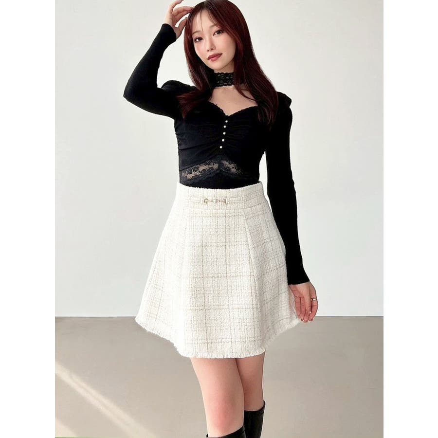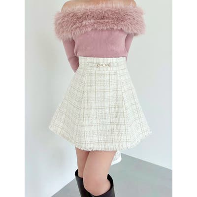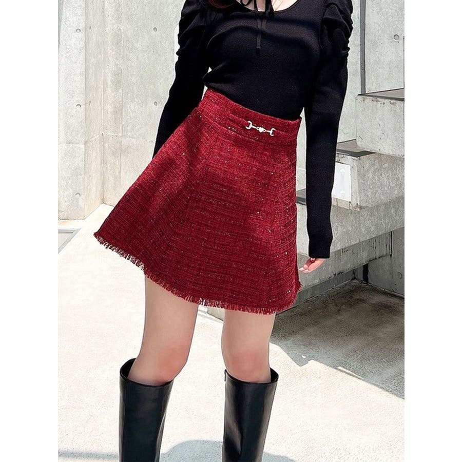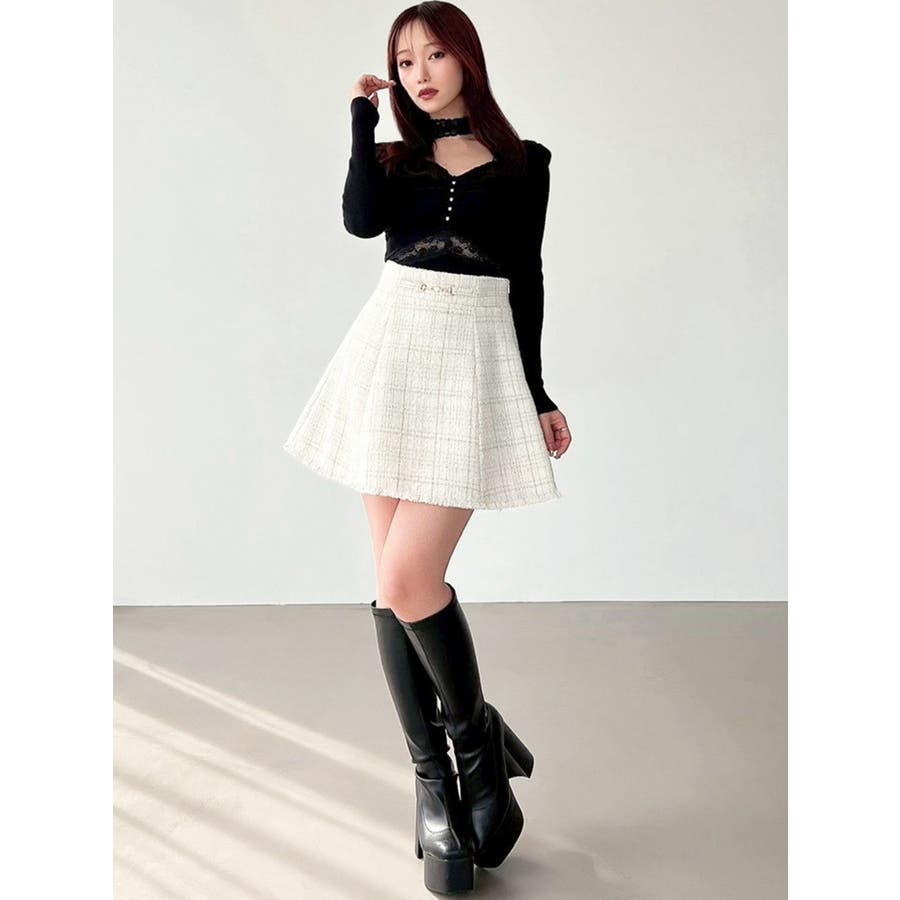 フリンジツイードミニスカート【セットアップ着用可能】