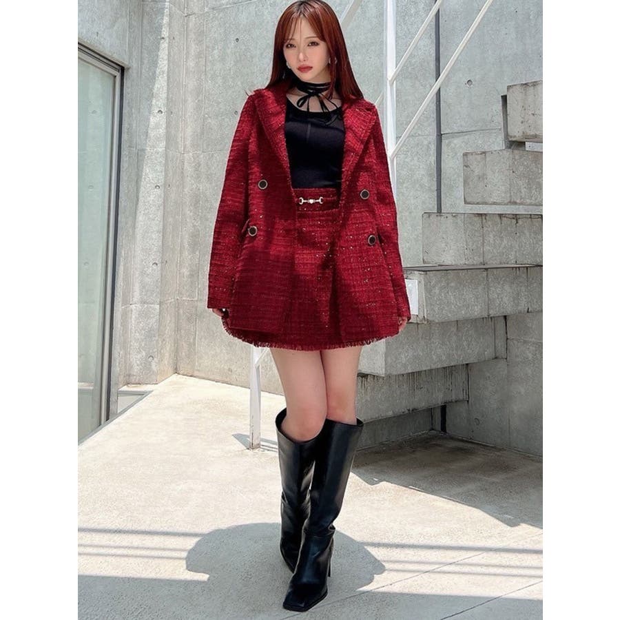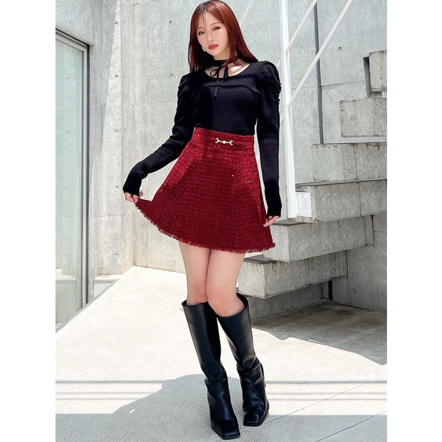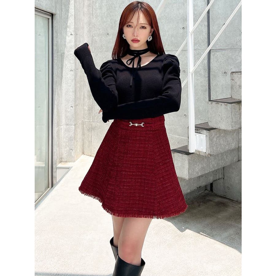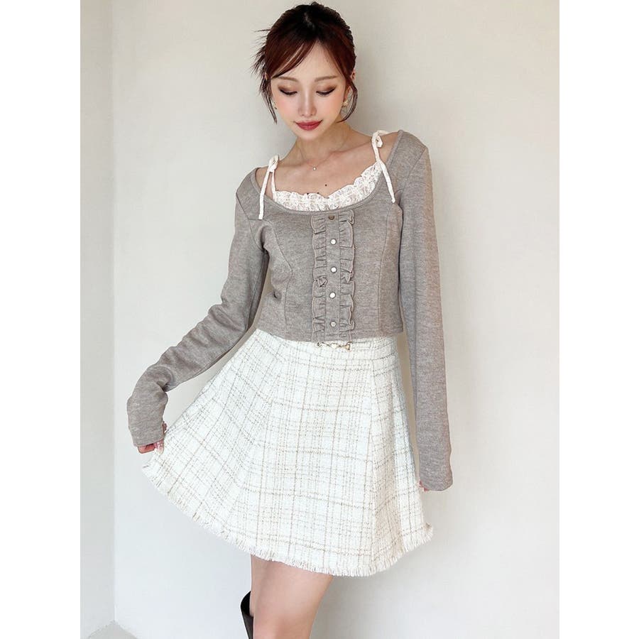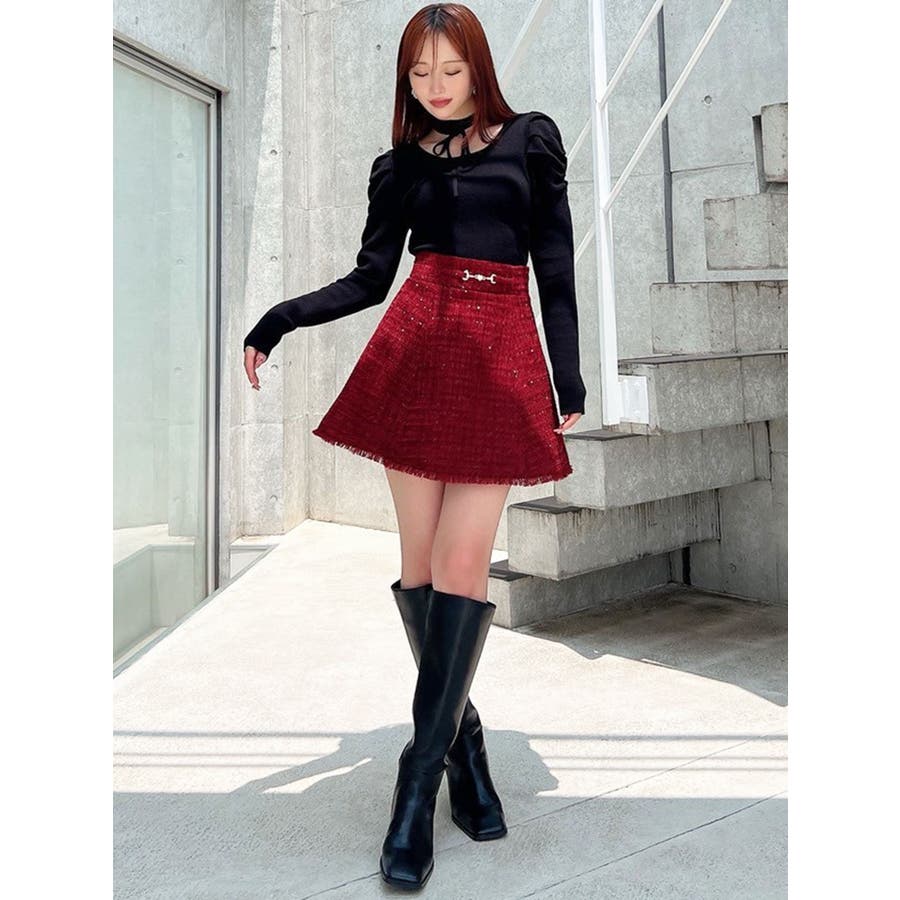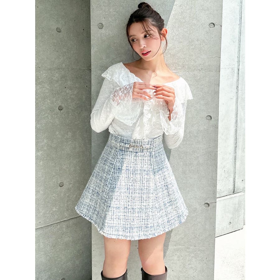 フリンジツイードミニスカート【セットアップ着用可能】
