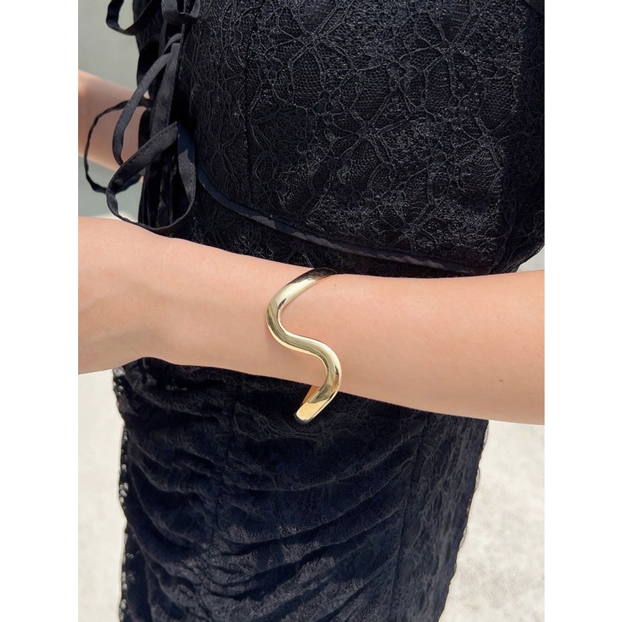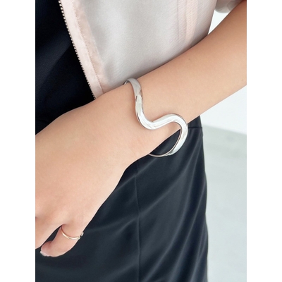 うねりが綺麗な光沢を見せるメタルバングルが登場です。なめらかに曲がったニュアンスウェーブでシンプルながらも存在感◎長袖の上から着用してもコーディネートのアクセントになるバングルは一つ持っておいて損なしです♪
