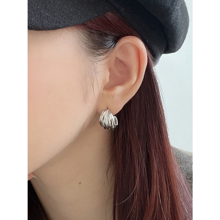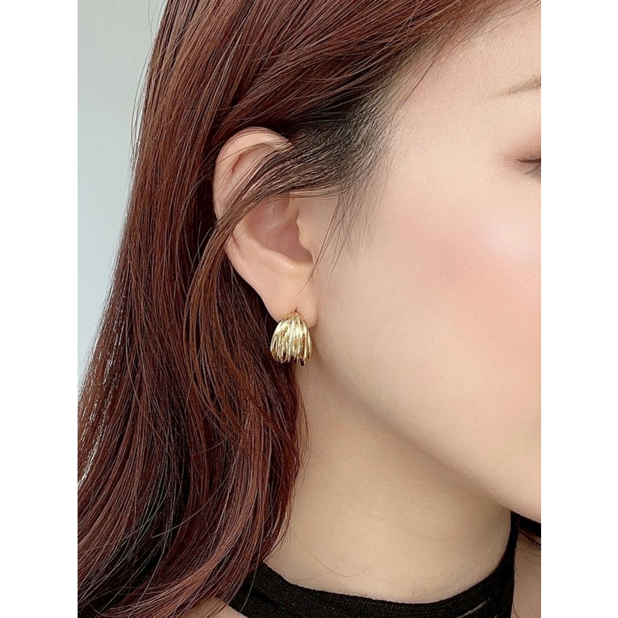 シャープな印象のニュアンスフープピアス。シンプルながらも大人っぽいデザインでクールな雰囲気をもち、顔周りのワンポイントとなってくれます。シンプルなデザインの為、様々なコーデに合わせやすく使いやすいアイテムです。