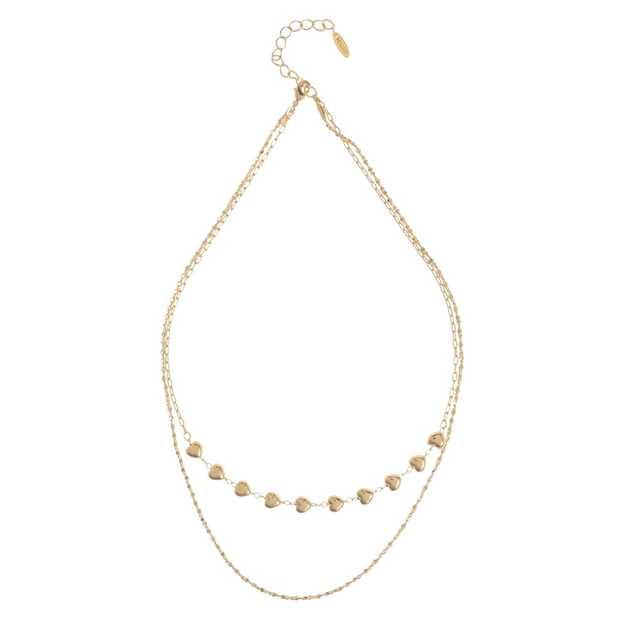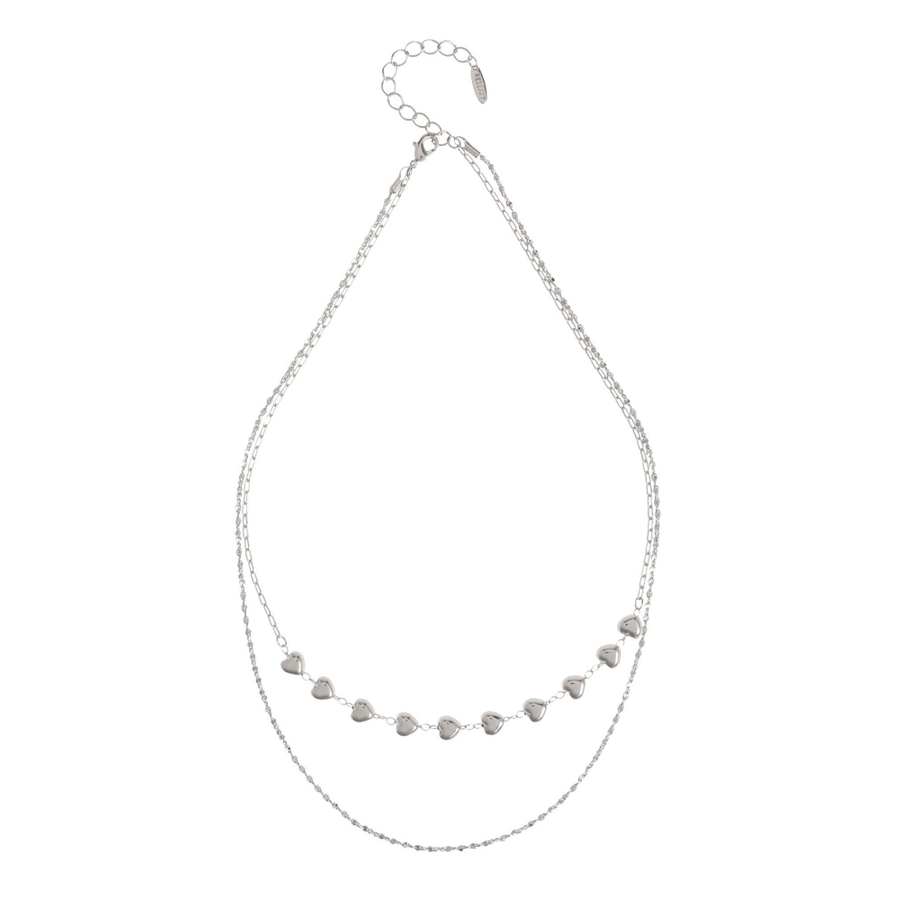 シンプルなチェーンとハート型のストーンが連なったチェーンネックレス。シンプルながらもハートモチーフのストーンが可愛くデコルテラインを華やかな印象にしてくれます。カジュアルコーデやオケージョンにも使用できるアイテムです♪
