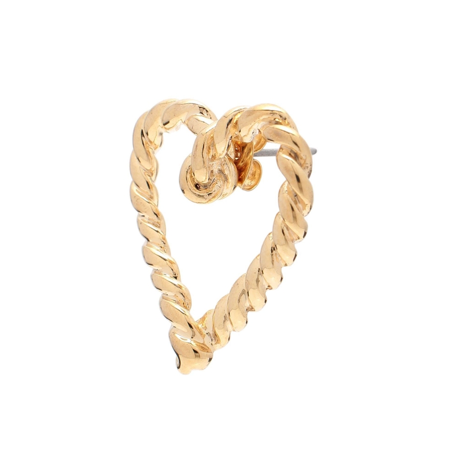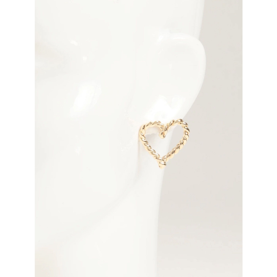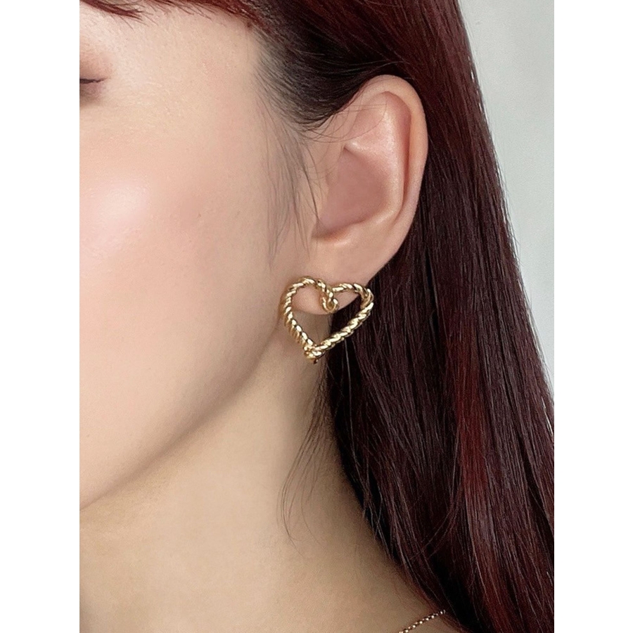 世代問わず人気のハートモチーフをトレンドのツイストデザインでモダンな印象にアップデートしたピアス。シンプルでありながらも存在感のあるデザインで顔回りを華やかにしてくれます。映える絶妙なサイズ感は、イヤーアイテムのレイヤードもお楽しみいただけます。上品さとカジュアルさを兼ね備え、日常使いから特別な日のコーデにもさらっと取り入れやすく、日々のオシャレが楽しくなるアイテムです♪